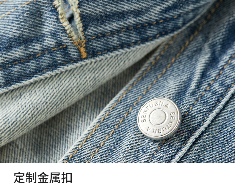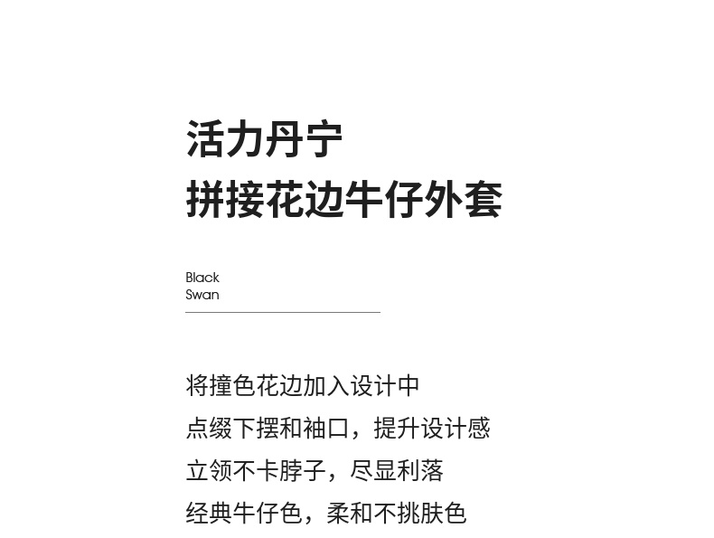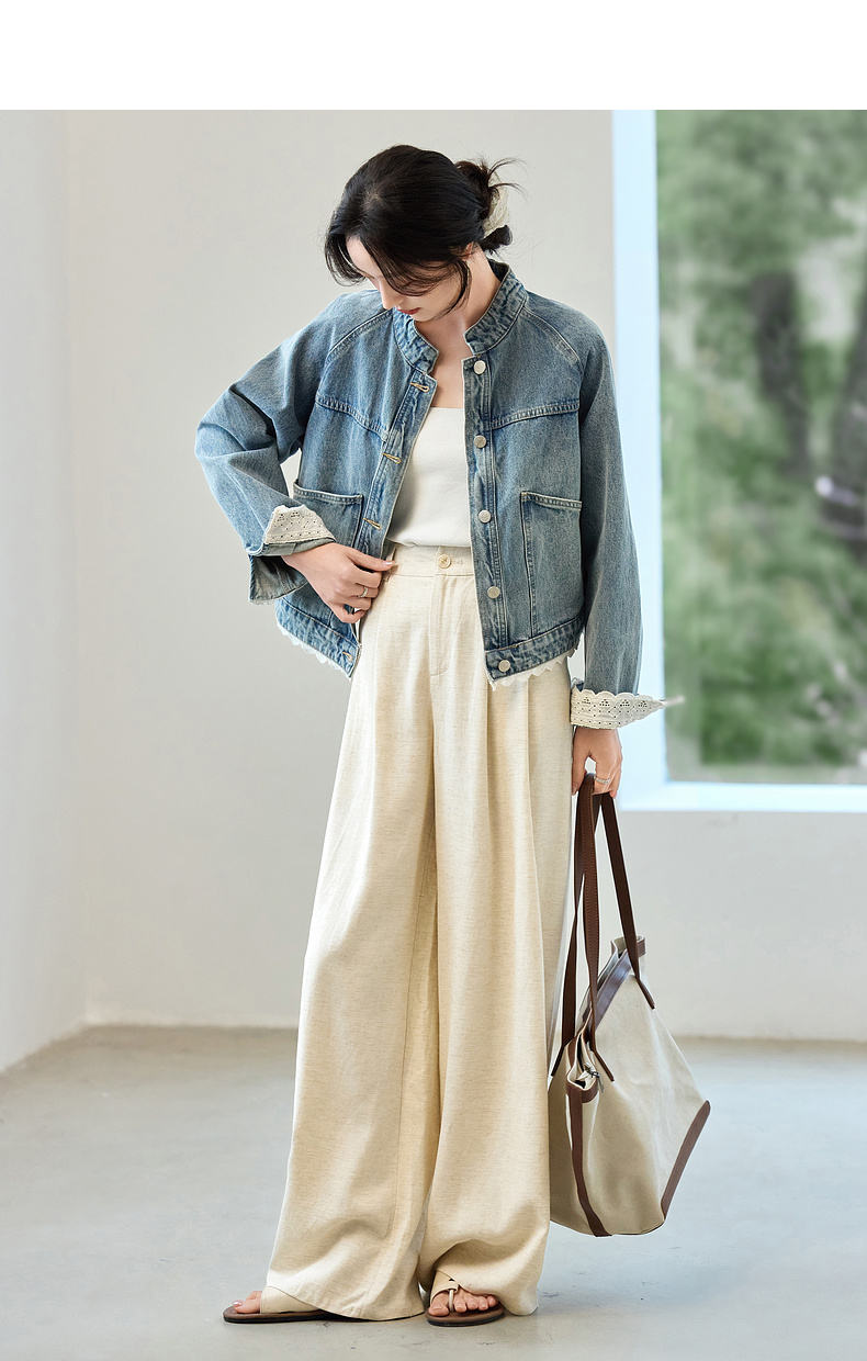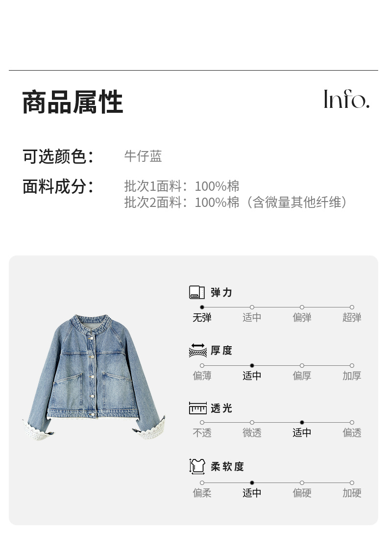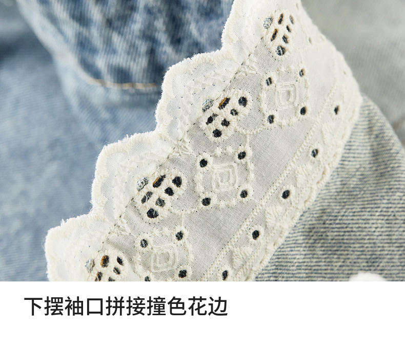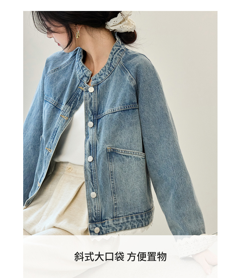 【内购】【拼接撞色花边】轻复古简约通勤立领插肩袖宽松显瘦纯棉牛仔外套-W51W80480