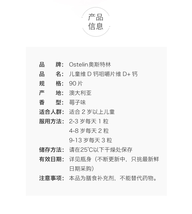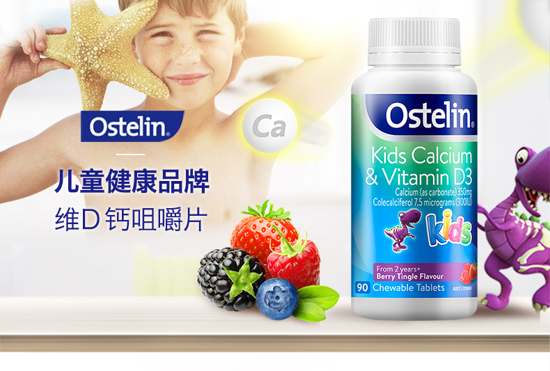 Ostelin奥斯特林儿童钙+维生素D咀嚼片90粒