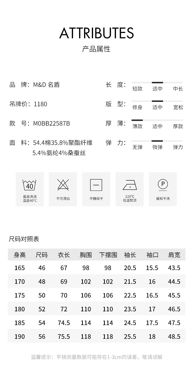 | 男装品牌: M&D/名盾 | 面料: 蚕丝 |