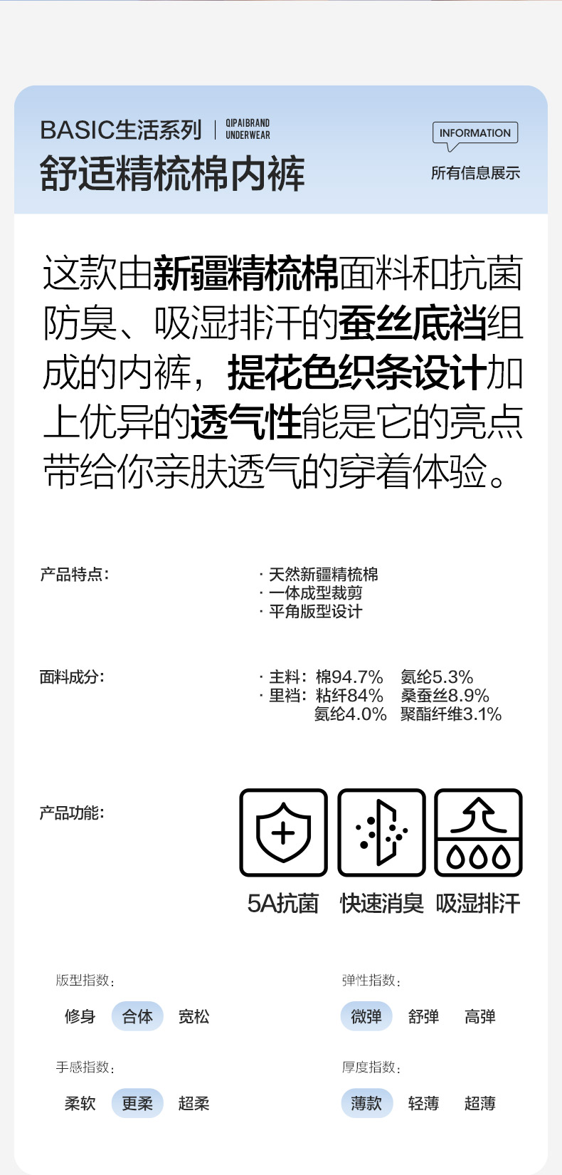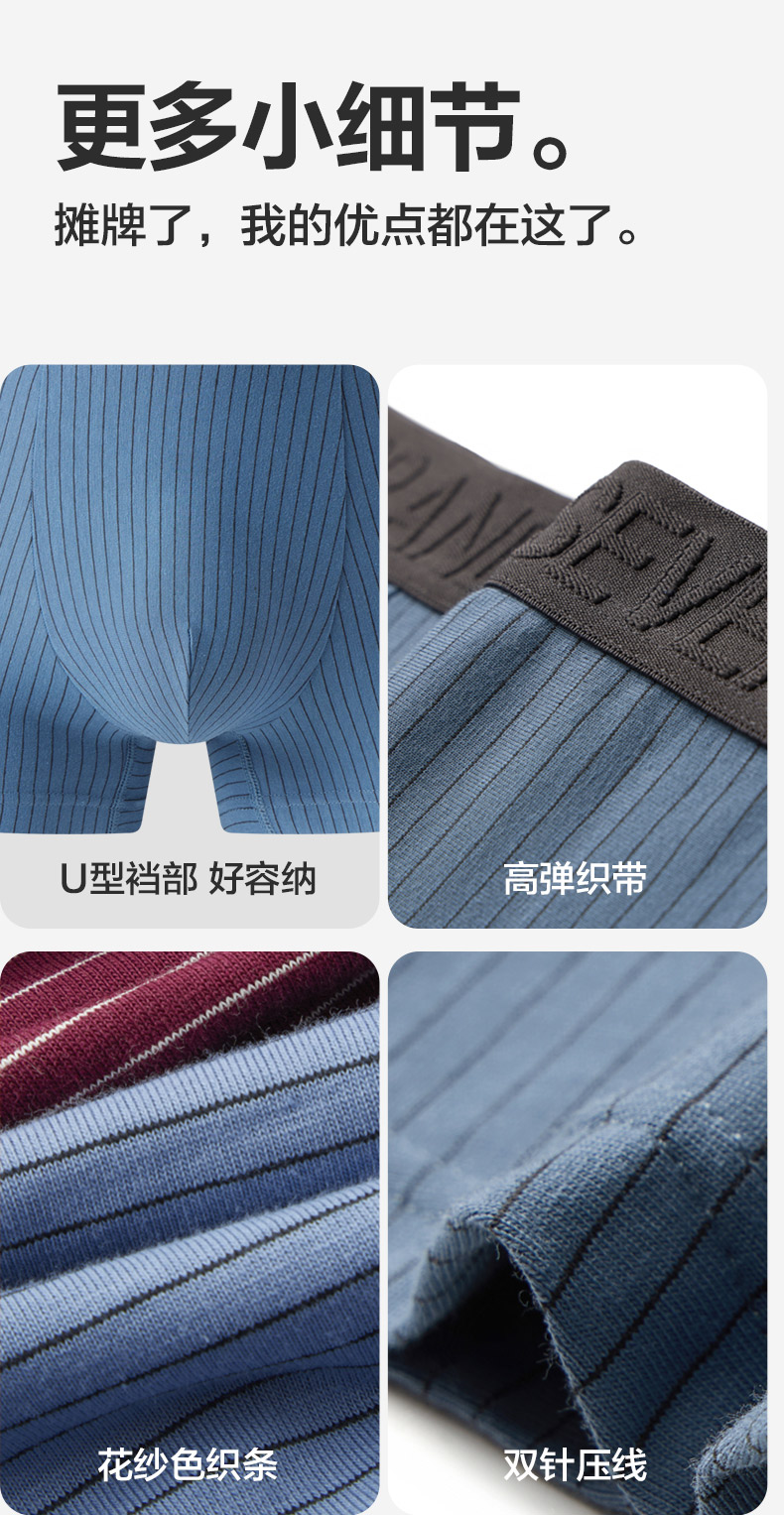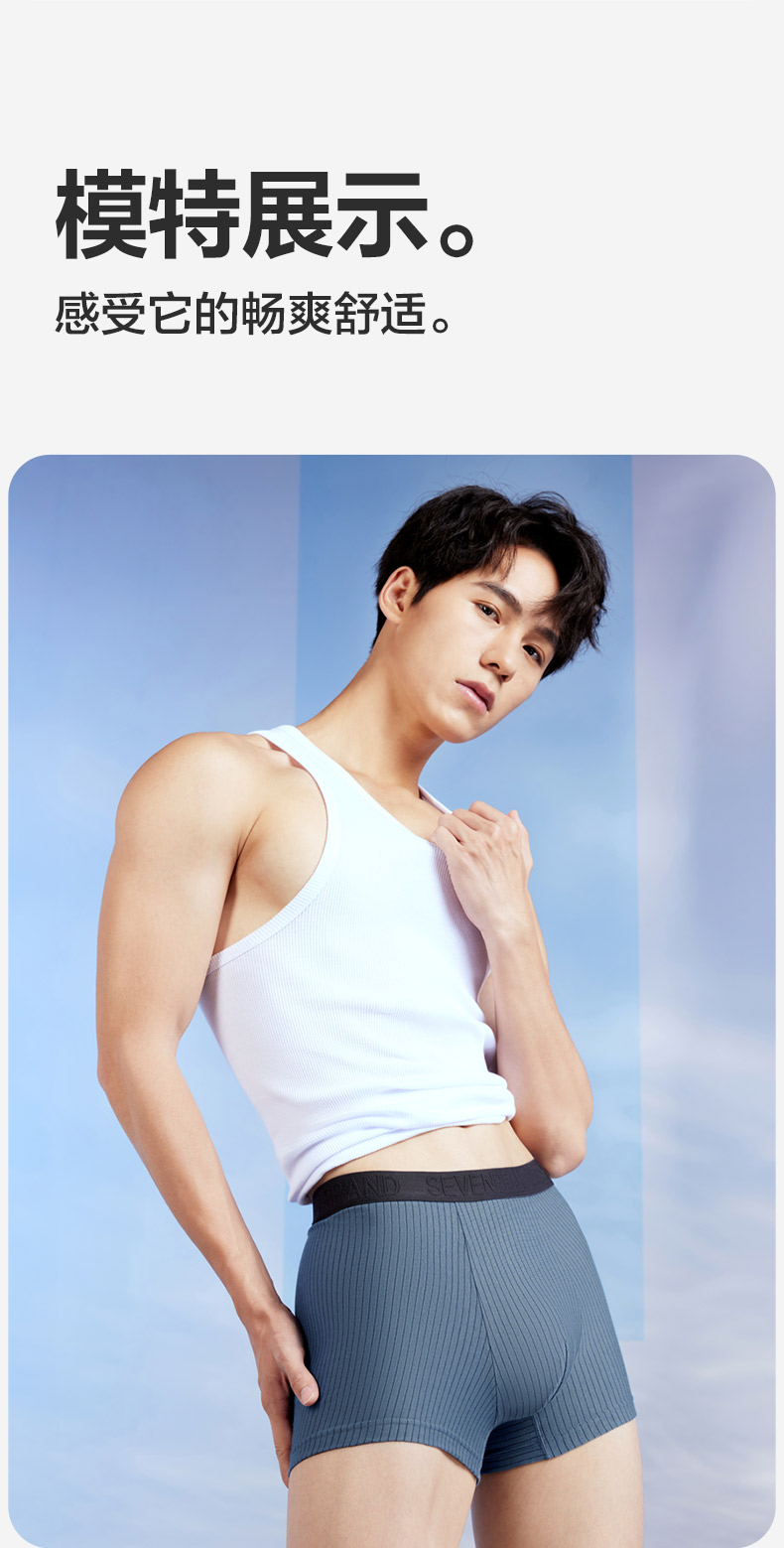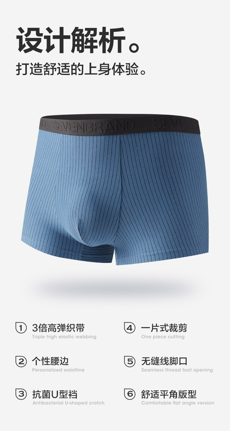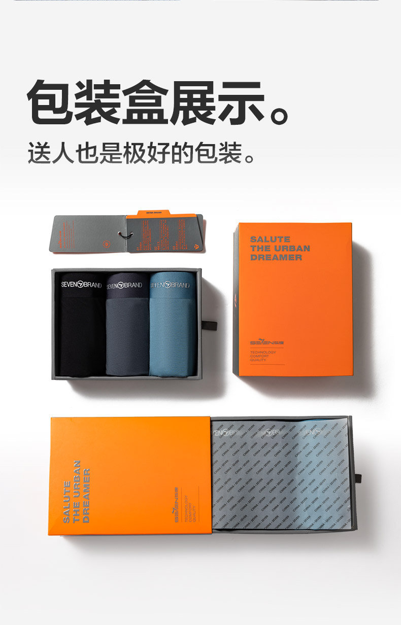 【礼盒3条装】柒牌柒牌男士新疆棉平角无痕内裤抗菌除臭吸汗透气舒适 126F70120