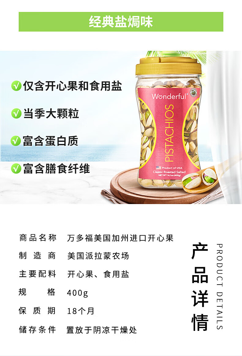 美国万多福盐焗味开心果400g/059154 高品质坚果当季大颗粒