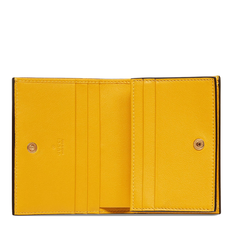 历经过去六年雕琢的品牌当代经典元素,糅合富有现代气息的设计细节,打造出一系列出众之作。这款黄色皮革卡包便是其中之一,采用经典GG图案搭配饰钉细节和精美印花压纹图案,彰显现代时尚风范。