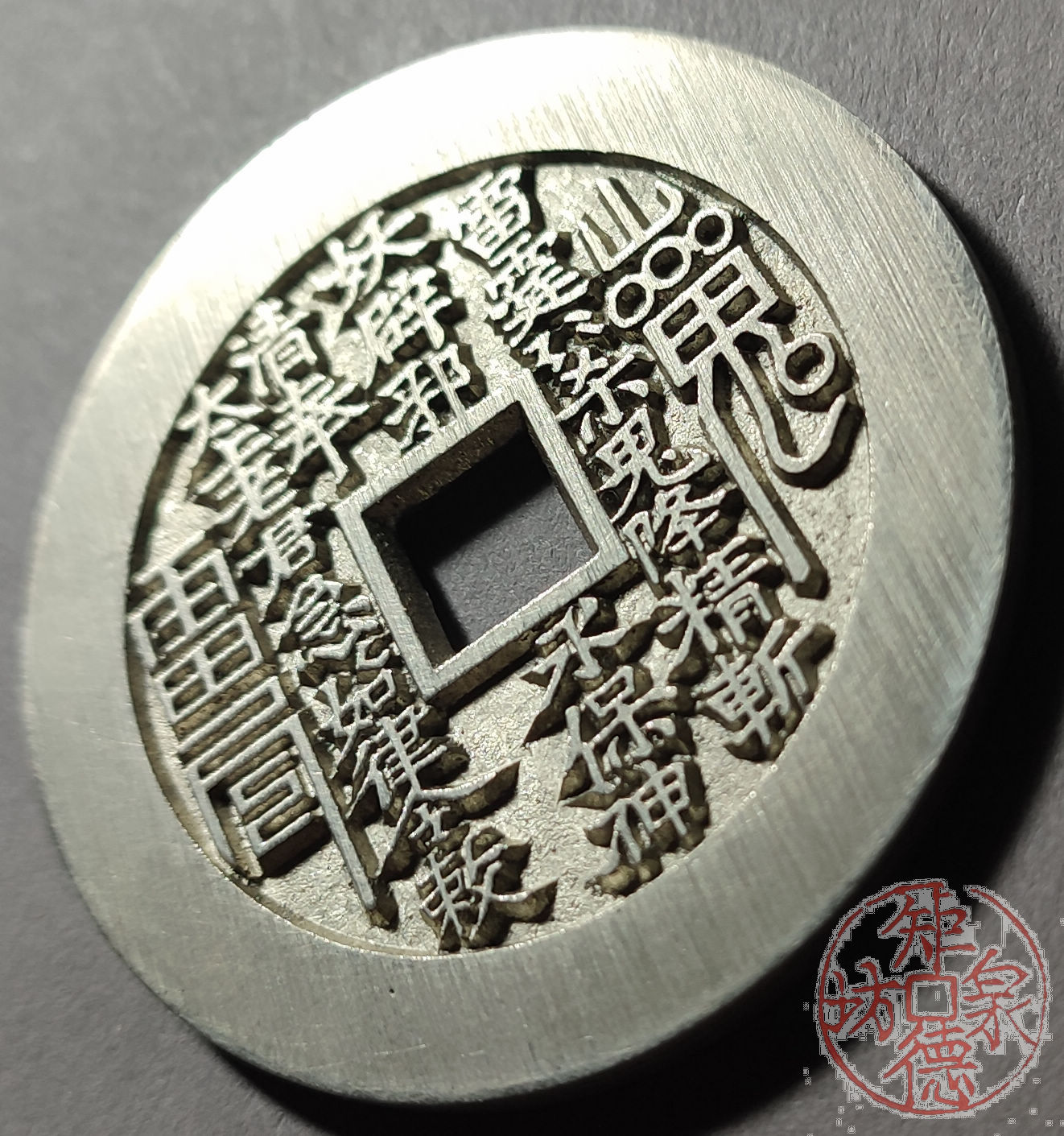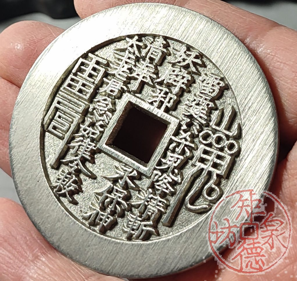 为了尽量还原古代钱币的文字神韵与时代铸造特征,每一枚都进行手工修刀、打磨。会有打磨痕迹、刻刀痕迹,铸造气孔或者微小沙眼,这正是手工与机器制作的区别,并非瑕疵。
