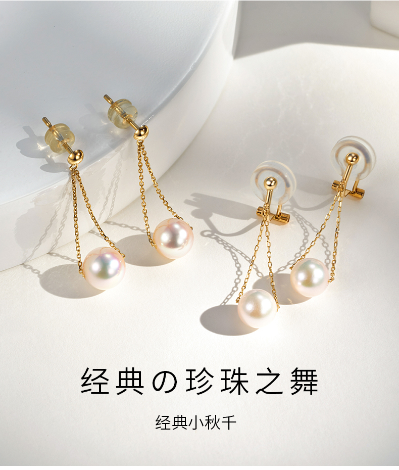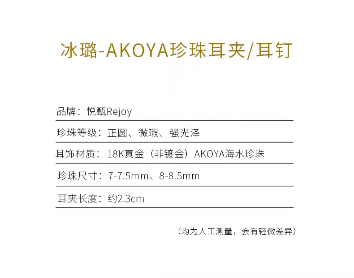 【天猫同款】悦甄 18K金akoya珍珠耳夹 冰璐