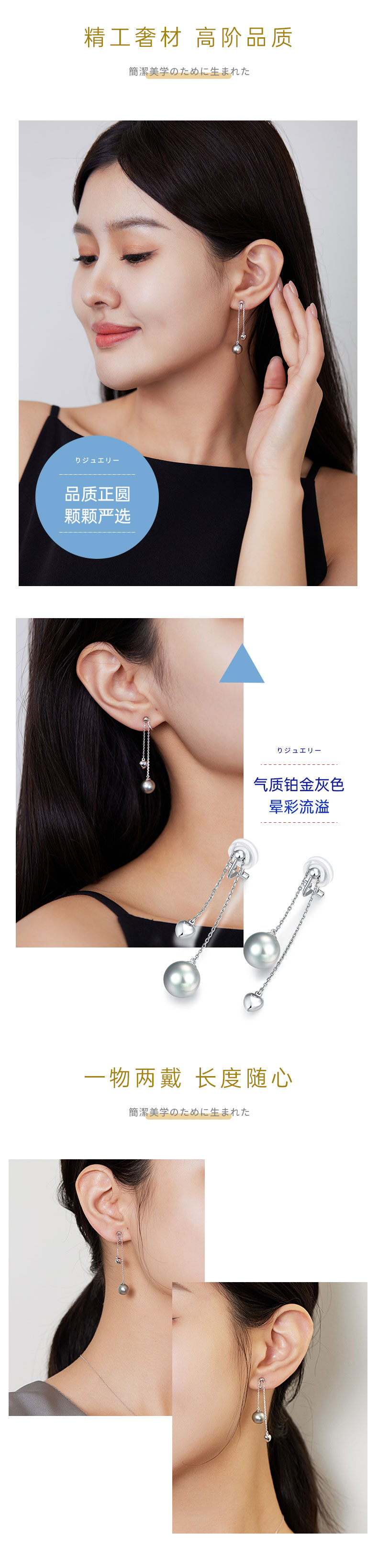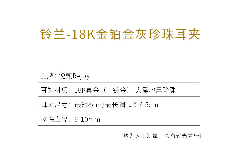【天猫同款】悦甄 18k金铂金灰珍珠耳夹 铃兰