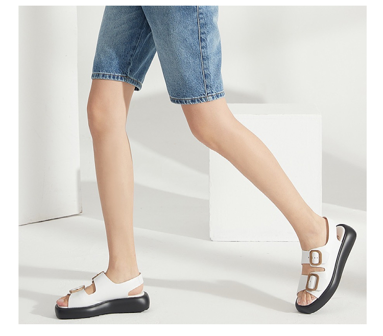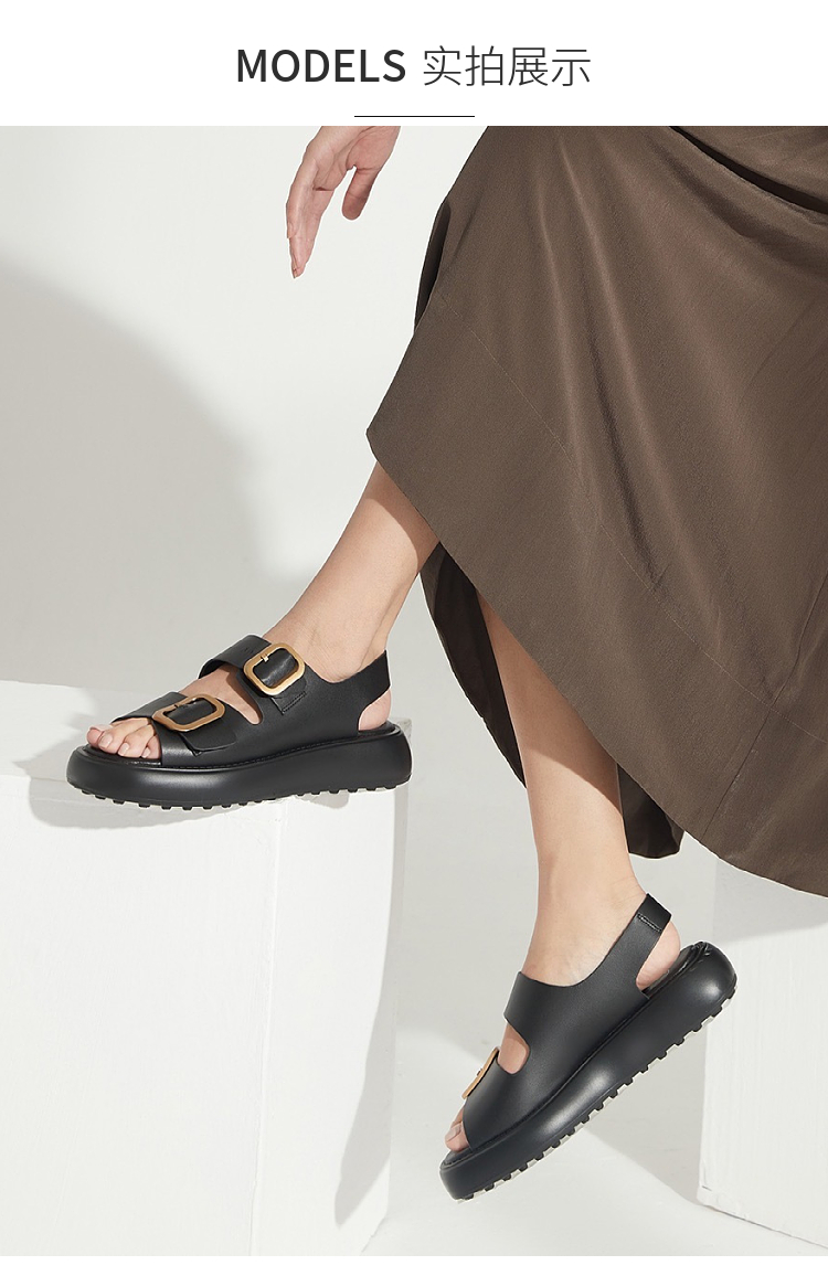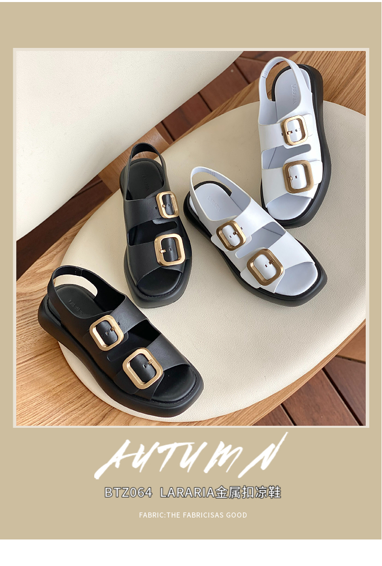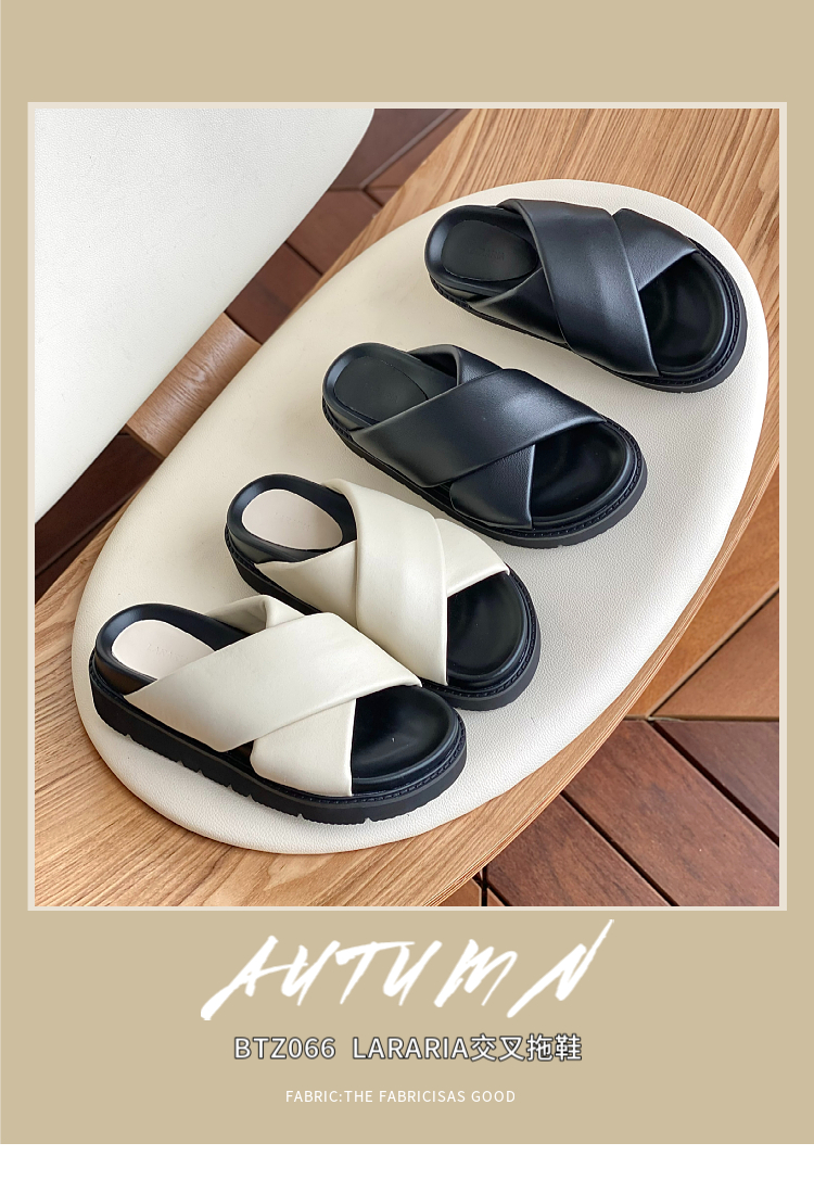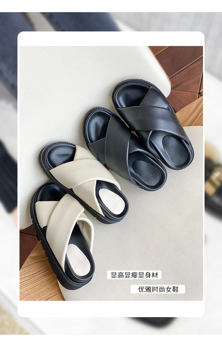 LARARIA羊皮交叉鞋面面包拖、金属扣凉鞋,松弛舒适精致慵懒,皮面材质搭配橡胶大底,拥有云朵包裹般的脚感,时尚吸睛自带复古气息,5.5cm鞋底隐形增高,鞋头3D防撞设计分散脚踝压力,轻便好穿又好搭