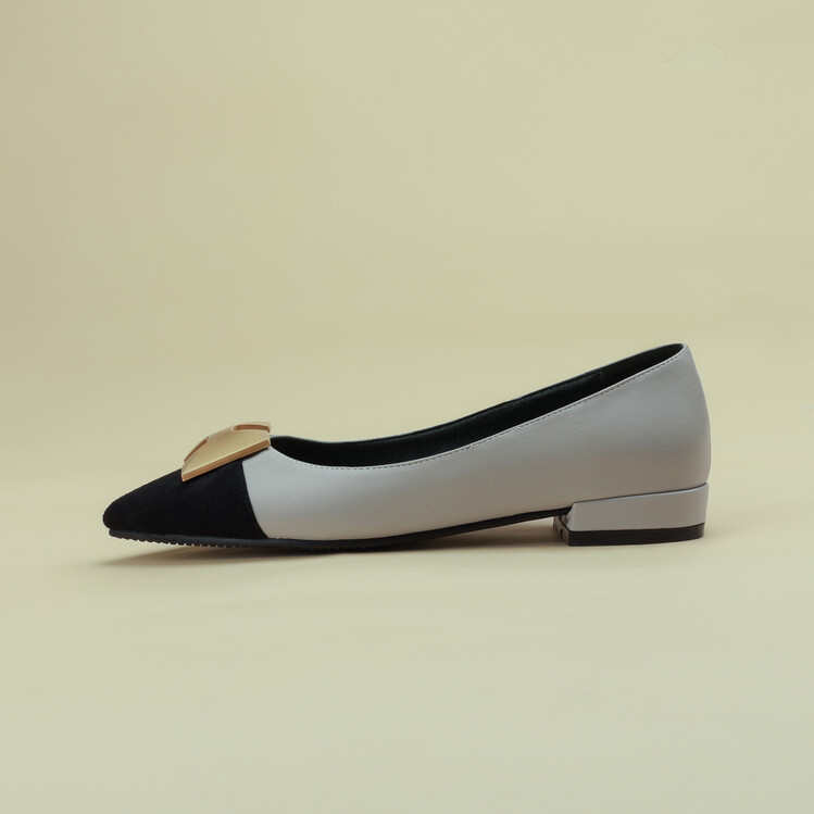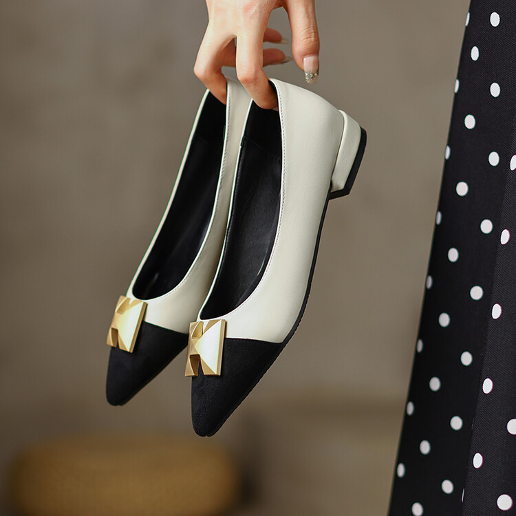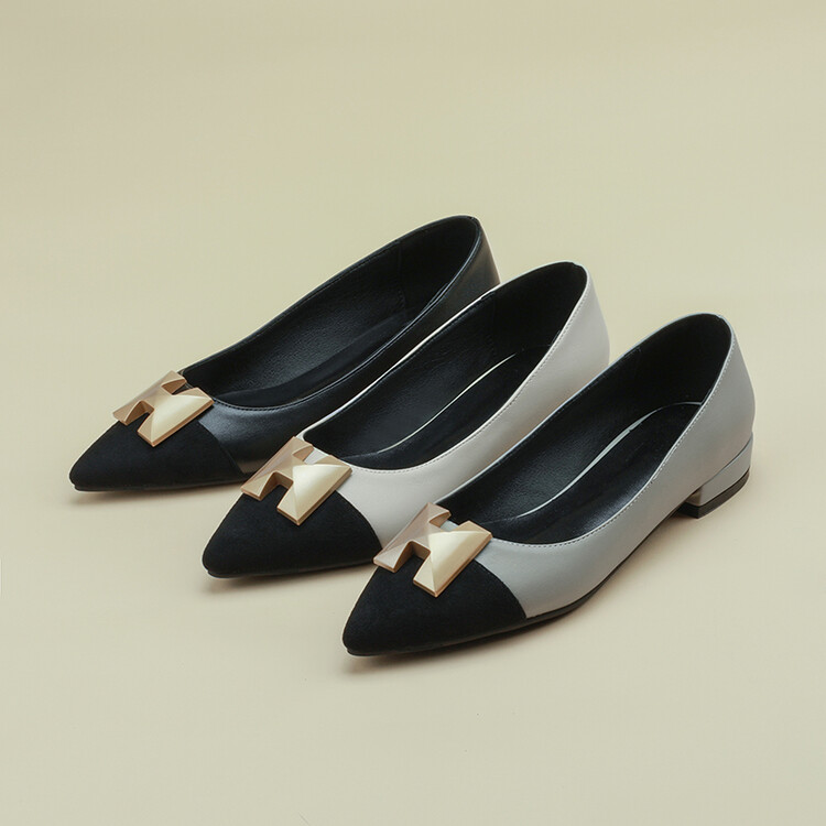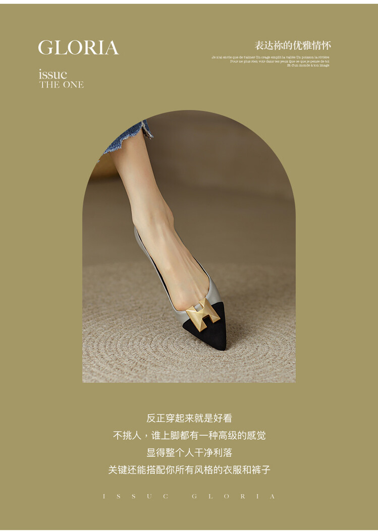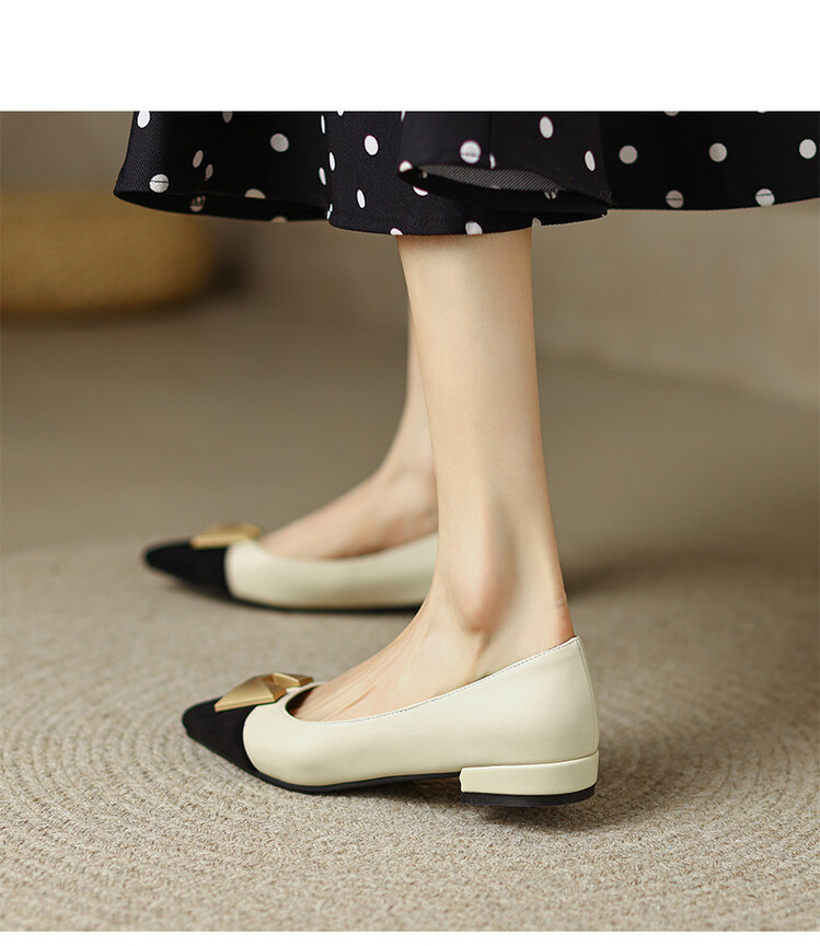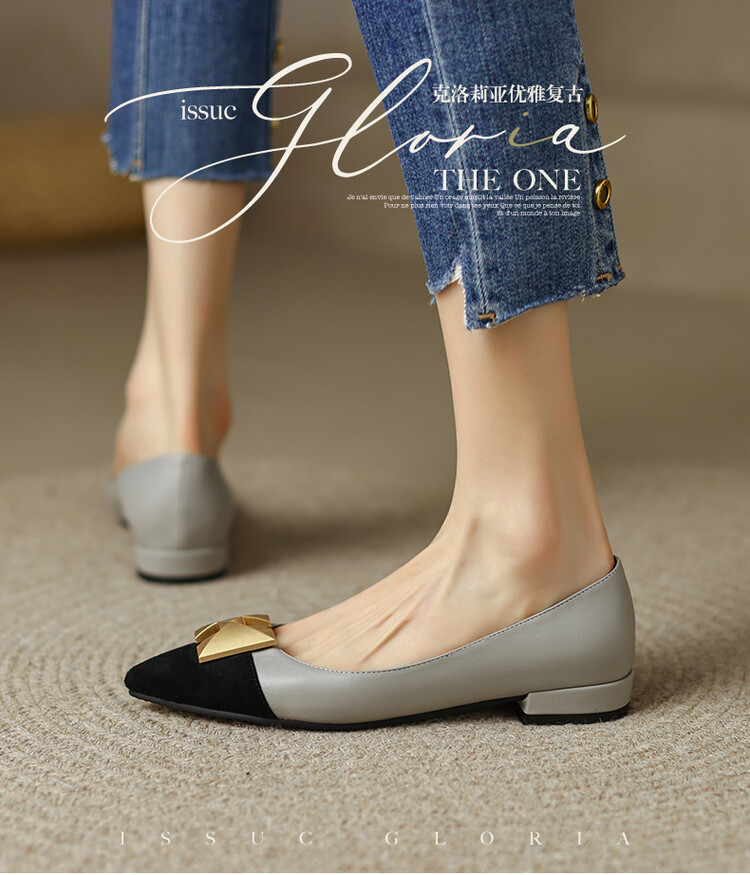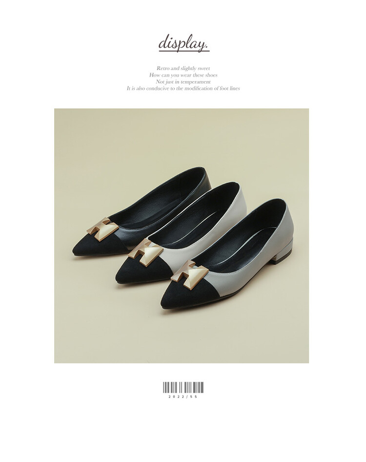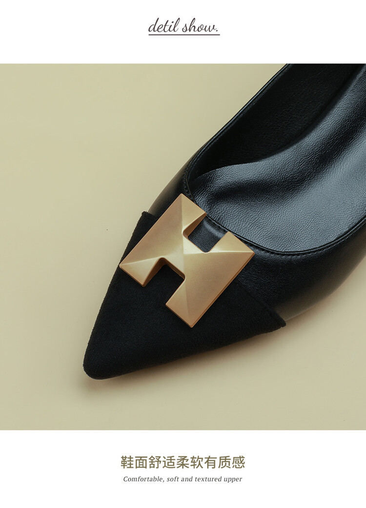 【预售5天】2024春季新款金属扣尖头单鞋女平跟浅口一脚蹬时尚单鞋MY&18185-8
