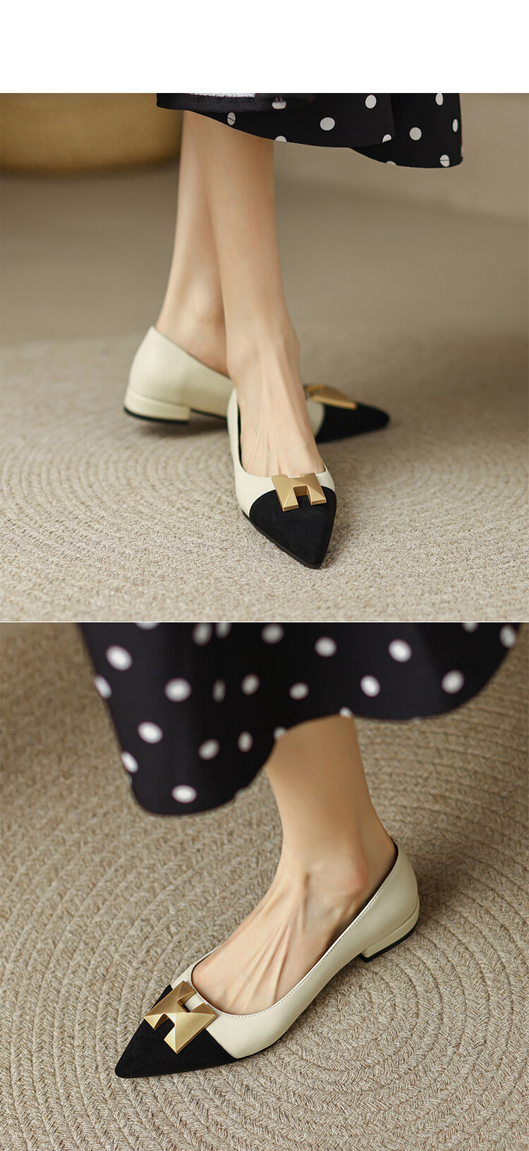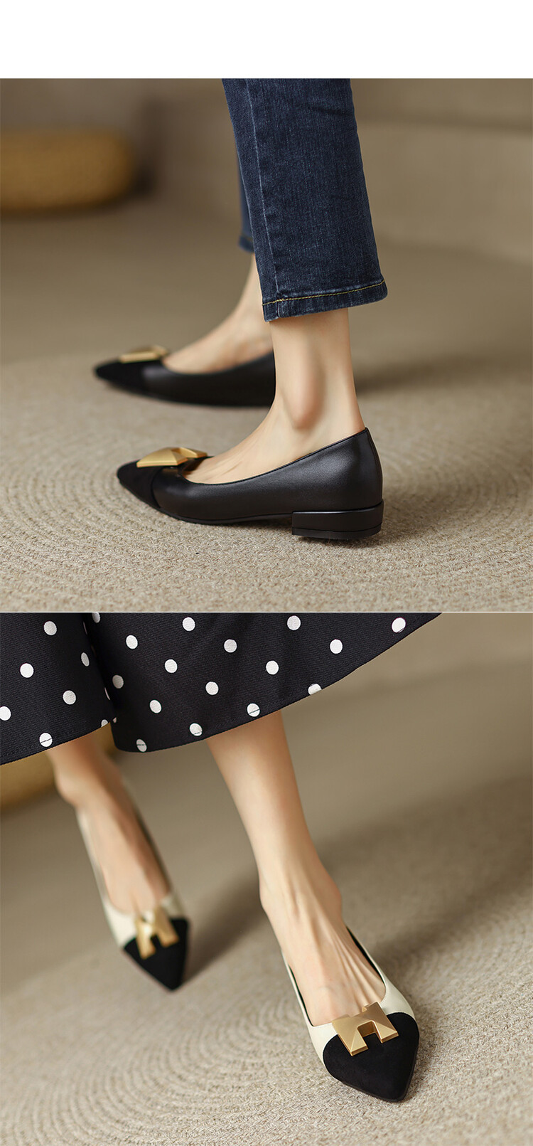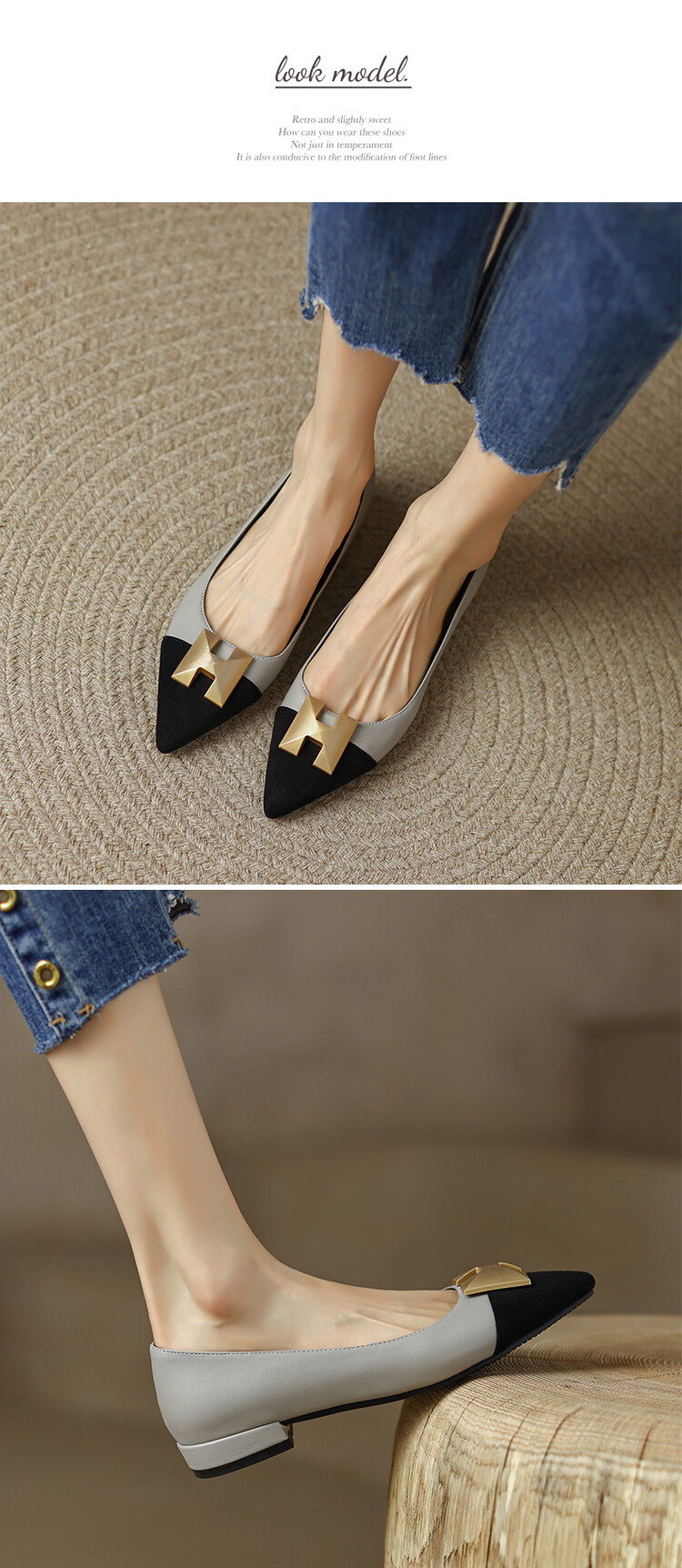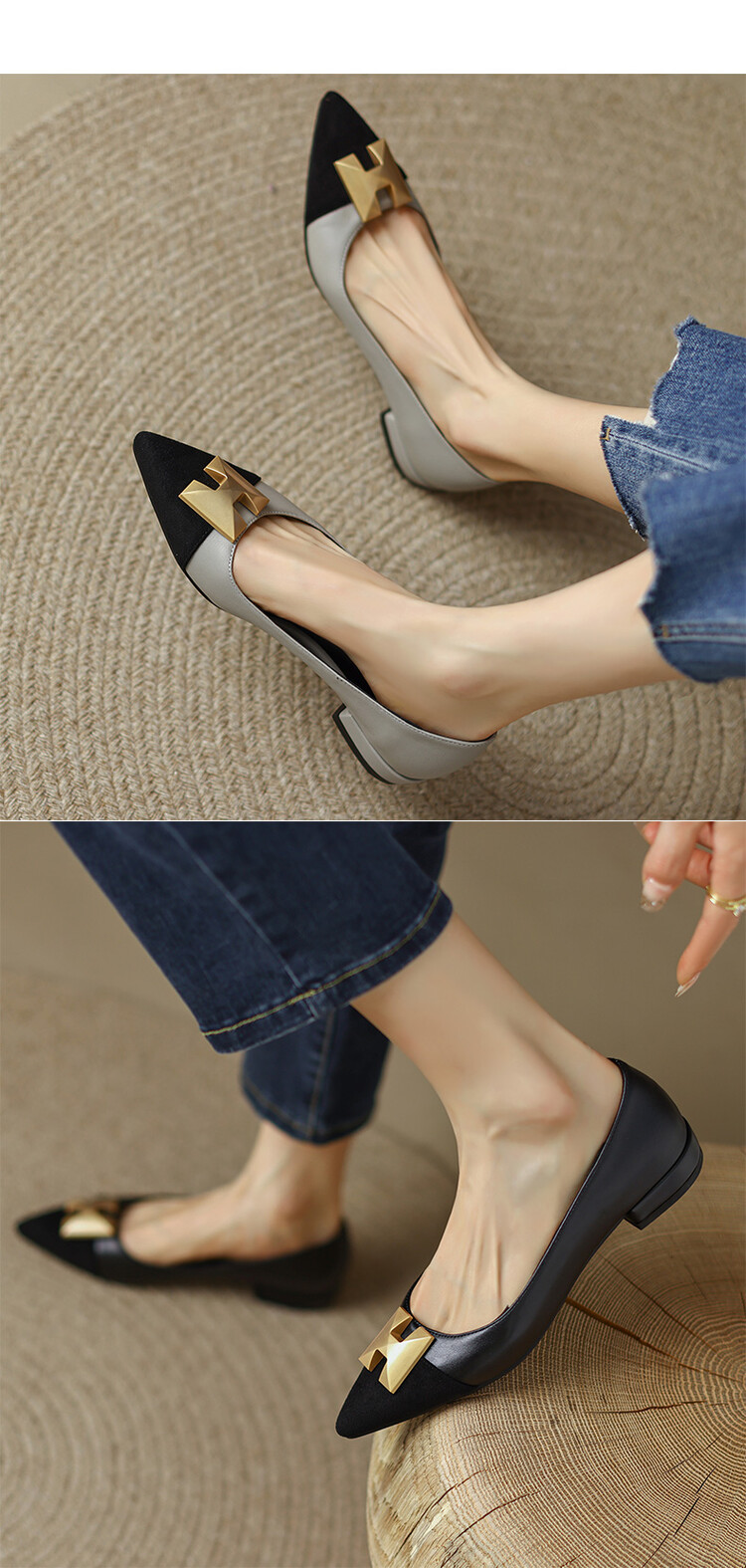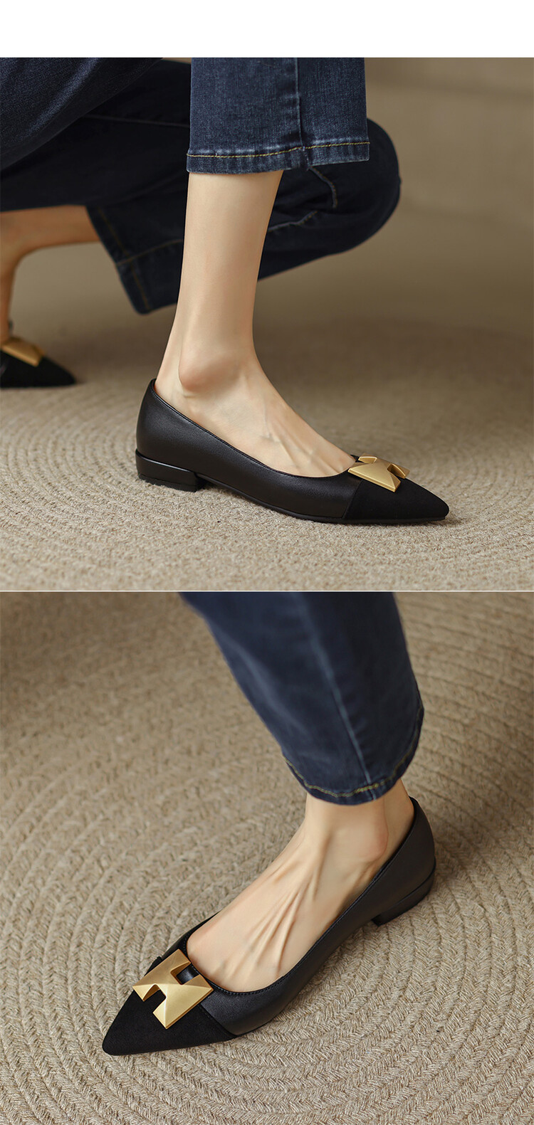 【预售5天】2024春季新款金属扣尖头单鞋女平跟浅口一脚蹬时尚单鞋MY&18185-8
