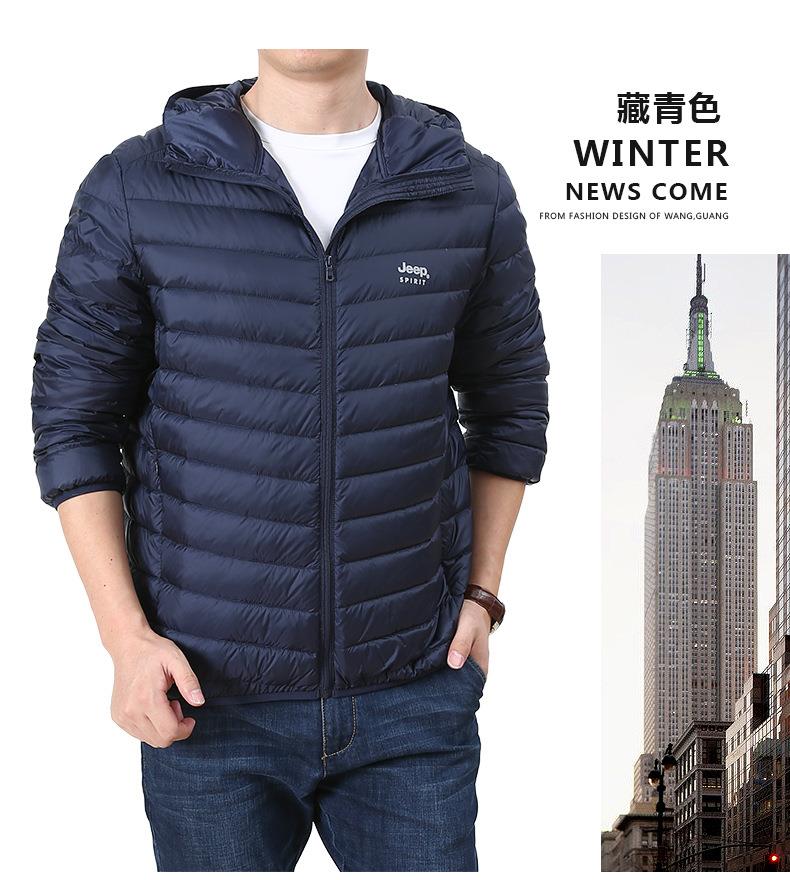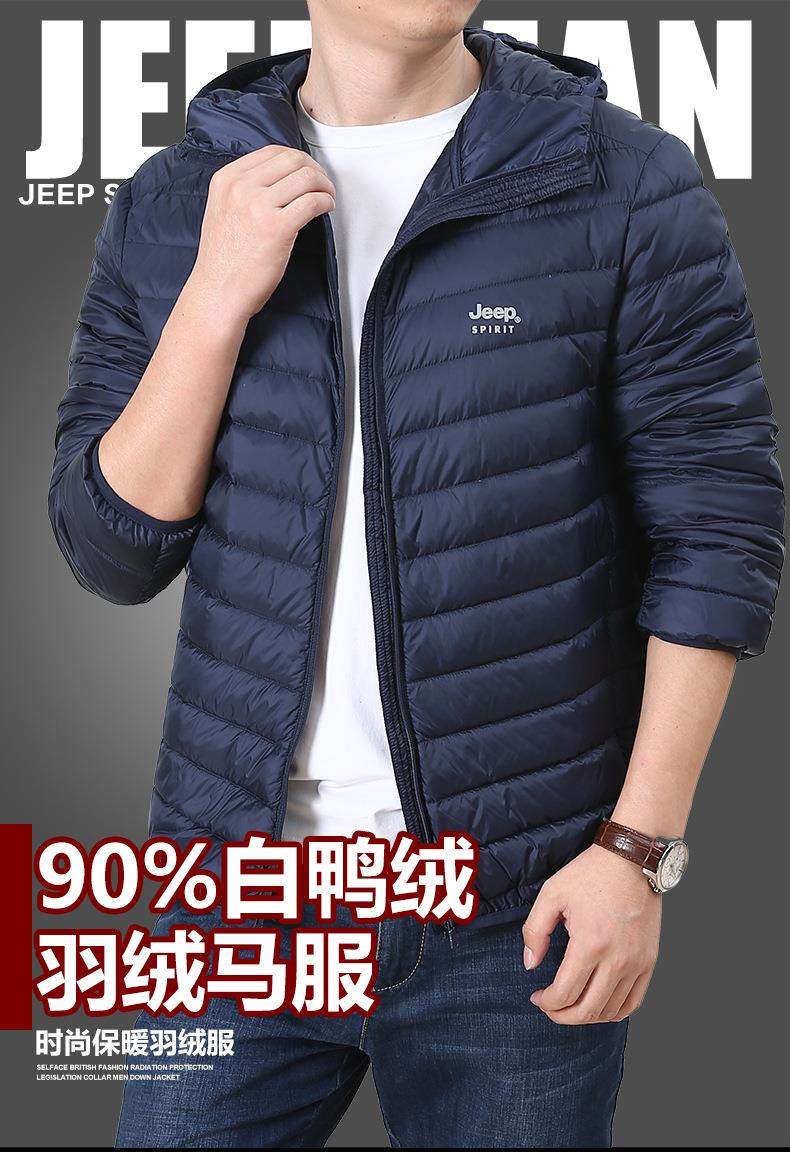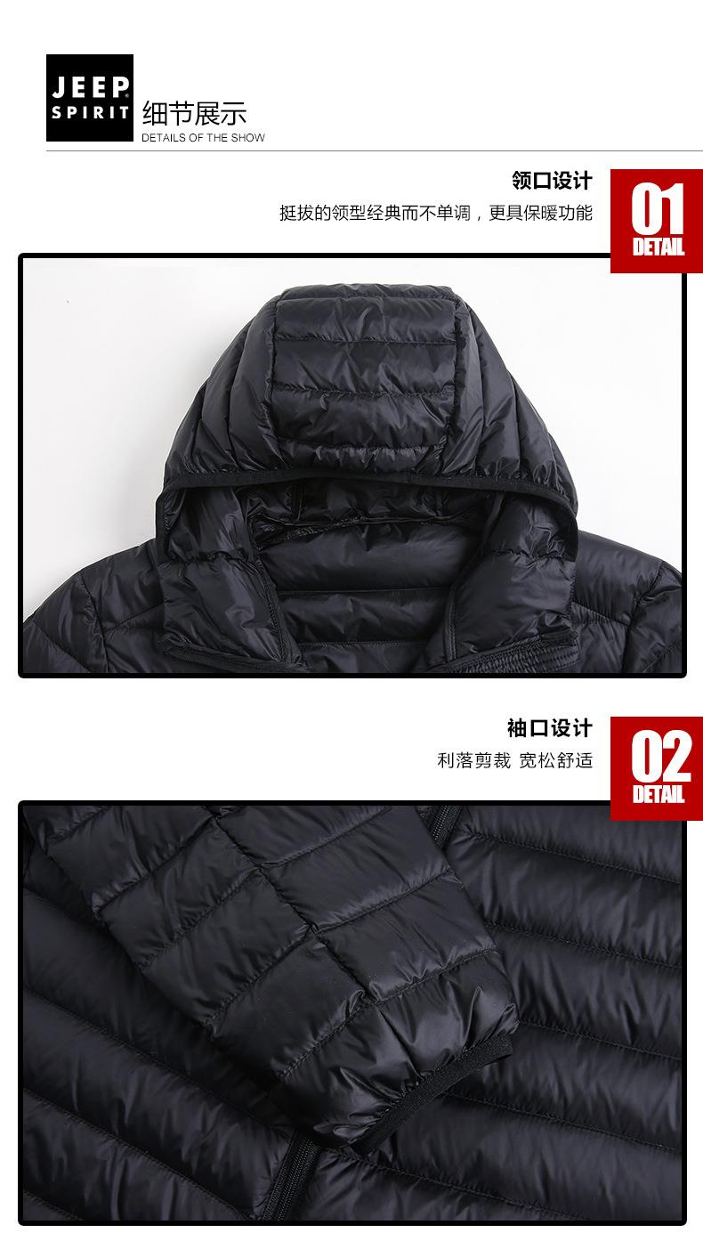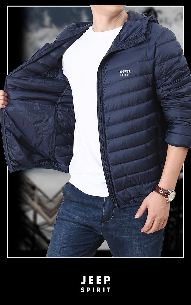 JEEP SPIRIT男士轻薄羽绒服年新款白鸭绒保暖冬连帽外套HL8707