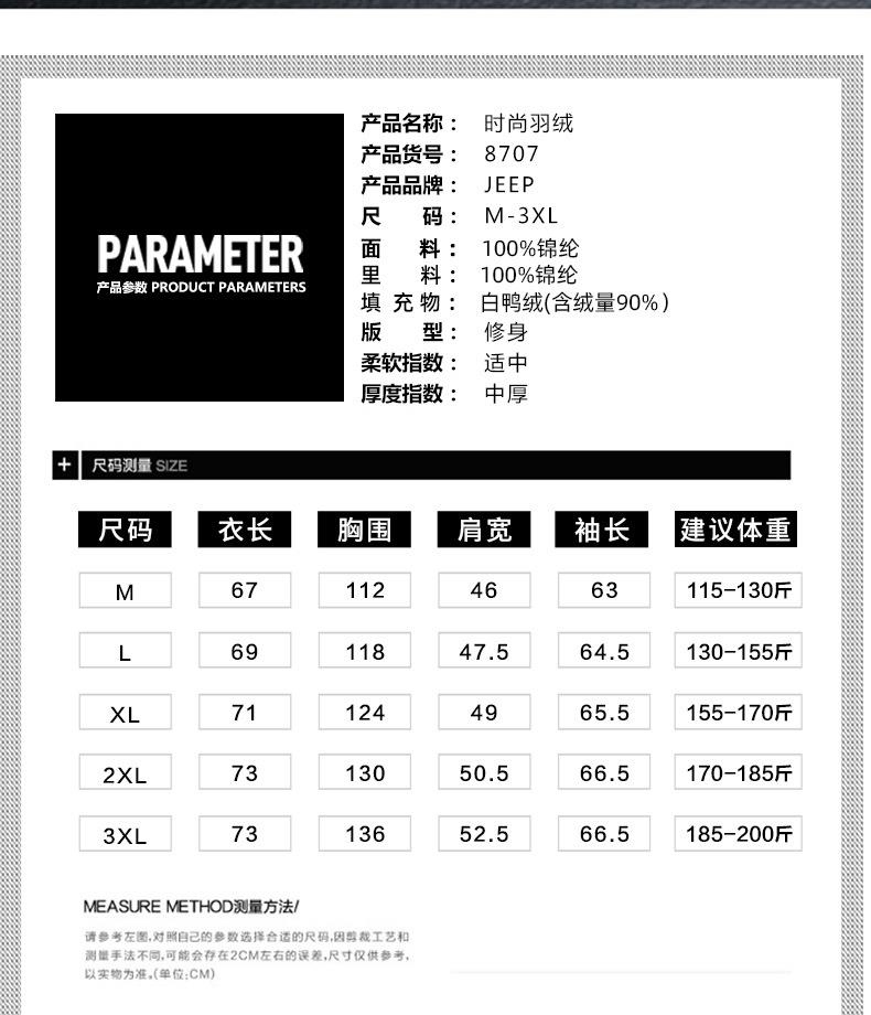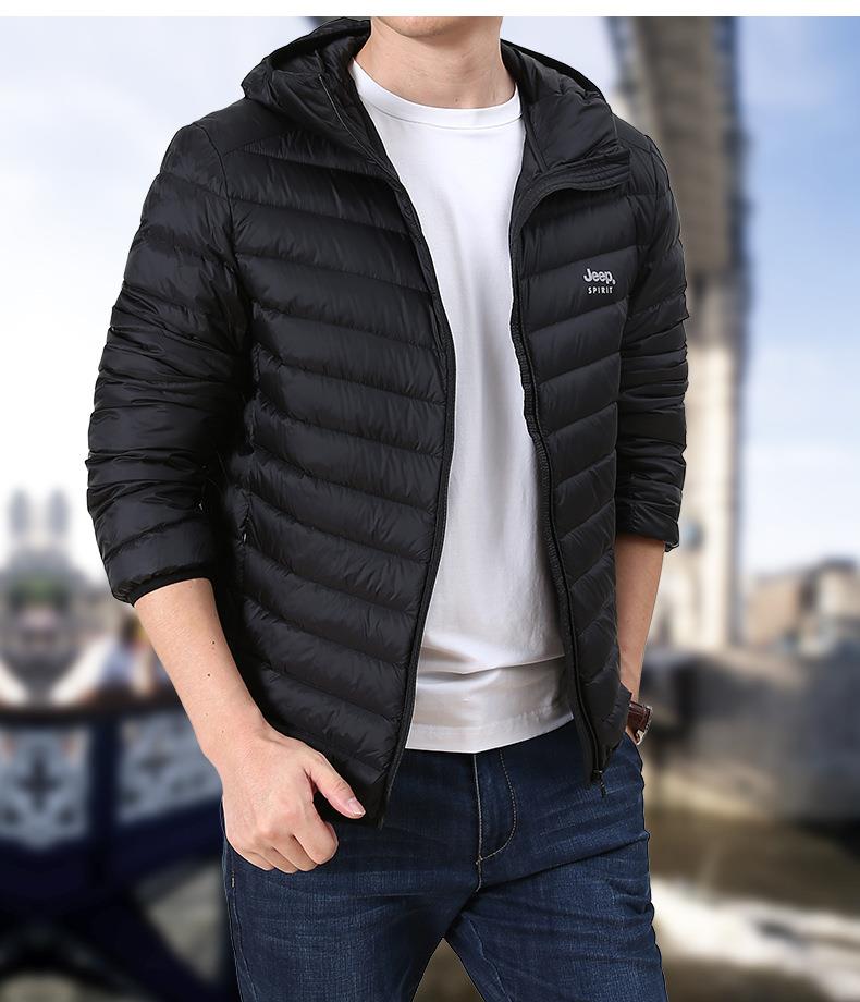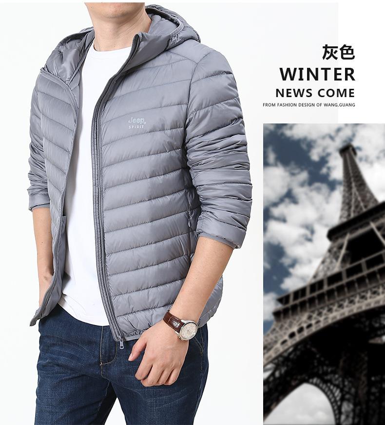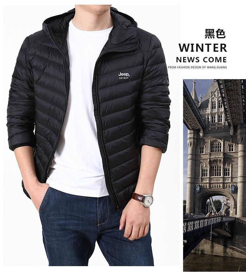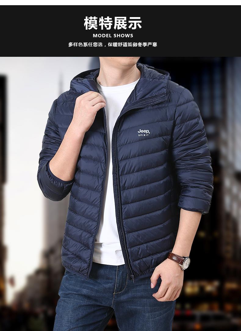 JEEP SPIRIT男士轻薄羽绒服年新款白鸭绒保暖冬连帽外套HL8707