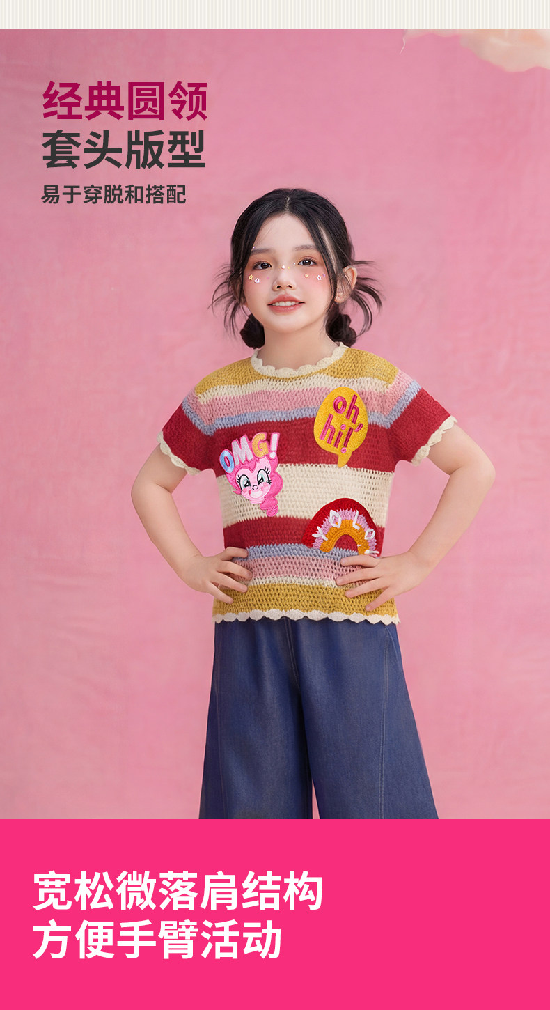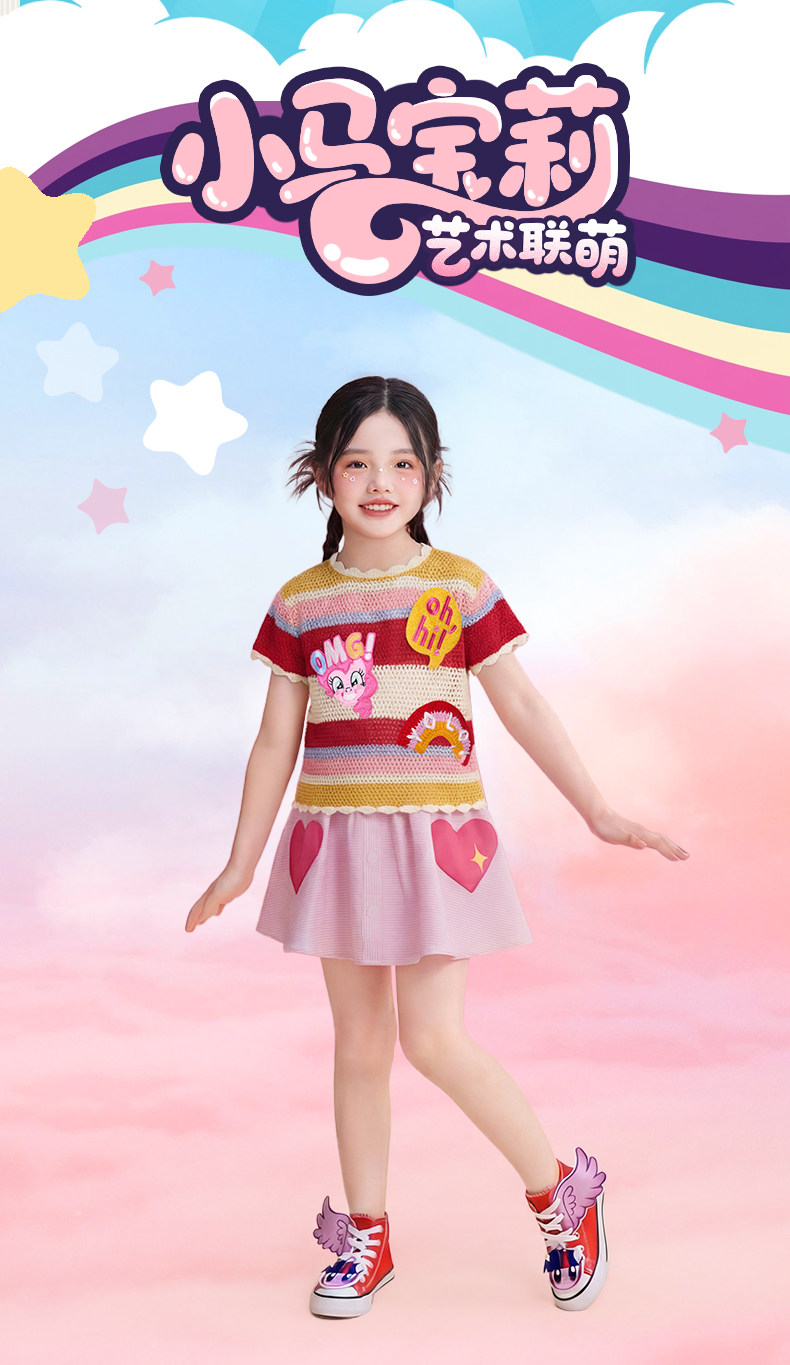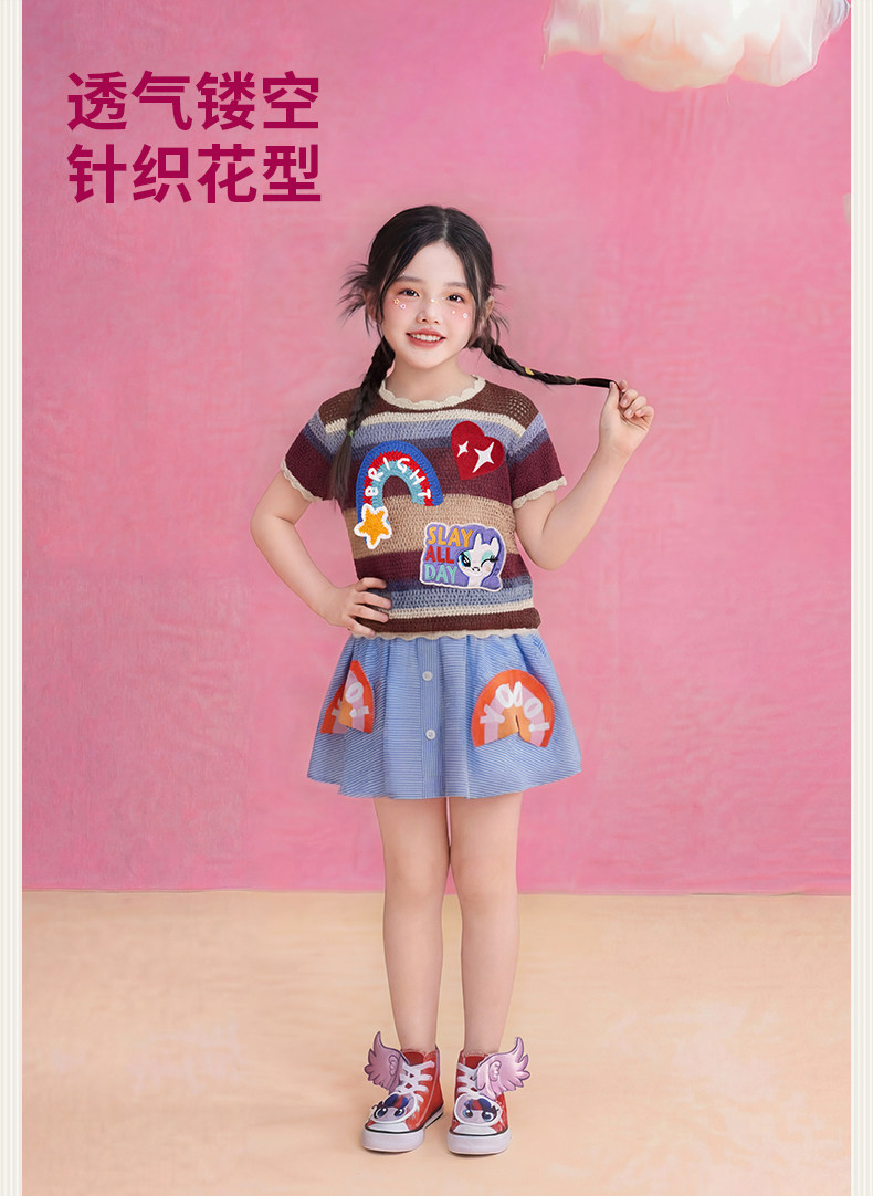 小马宝莉联名年衣童装针织T恤夏季新款女童卡通可爱公主短袖上衣