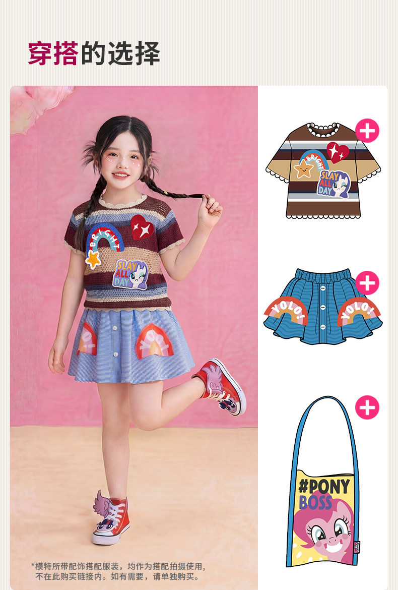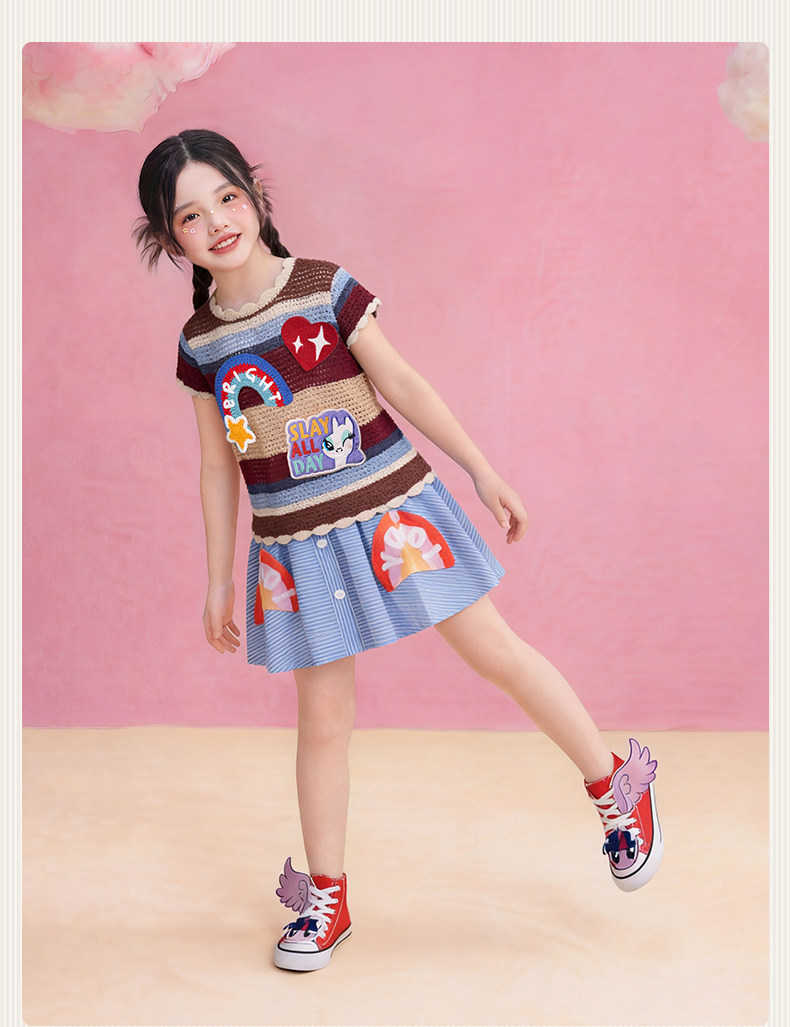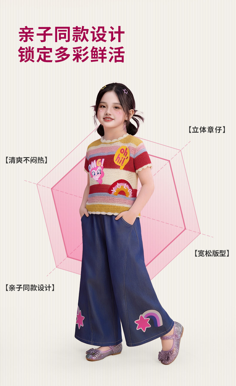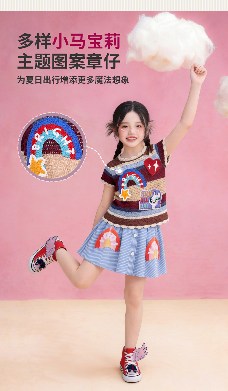 小马宝莉联名年衣童装针织T恤夏季新款女童卡通可爱公主短袖上衣