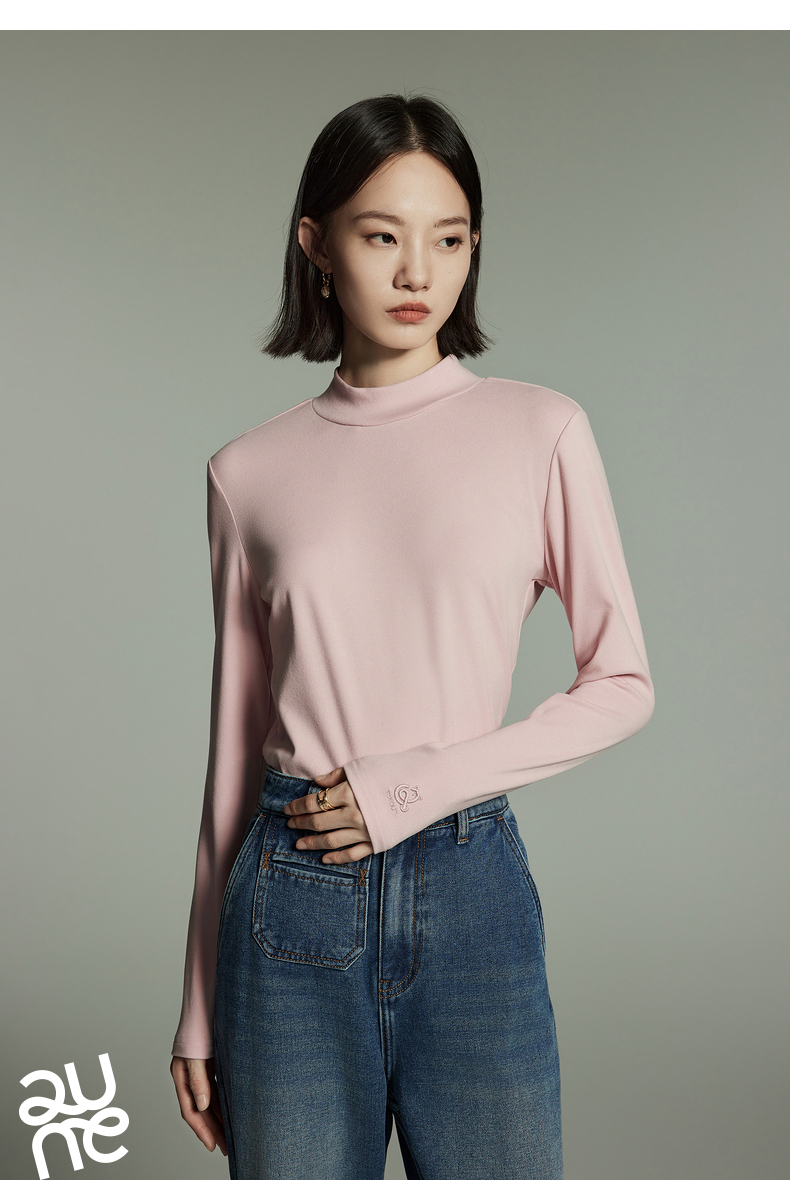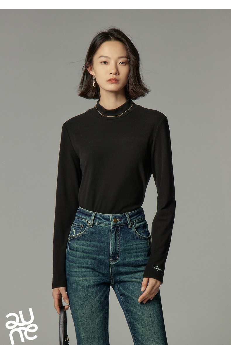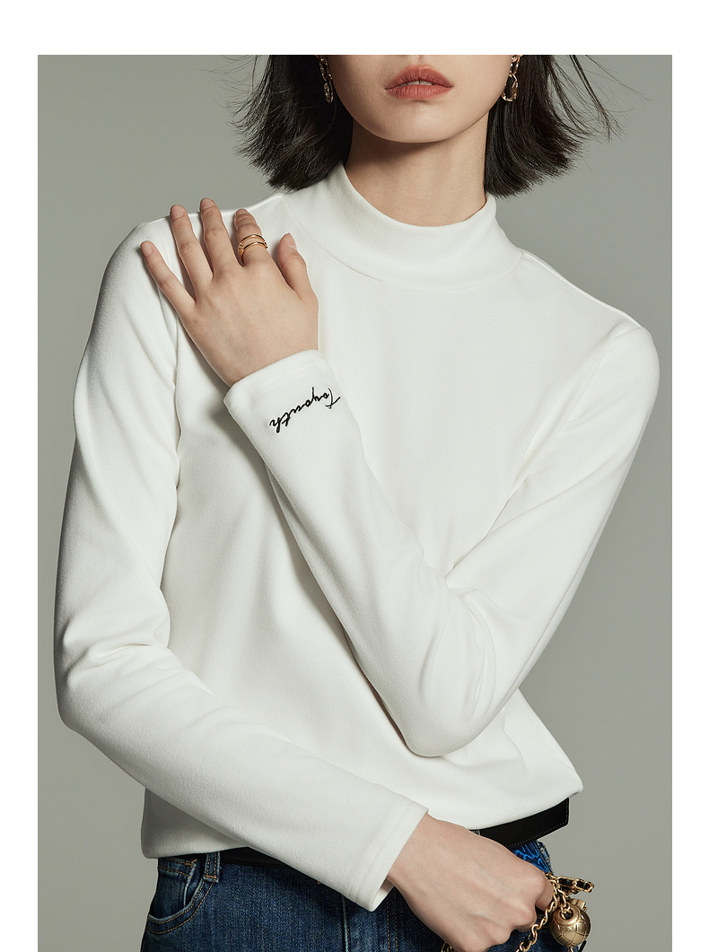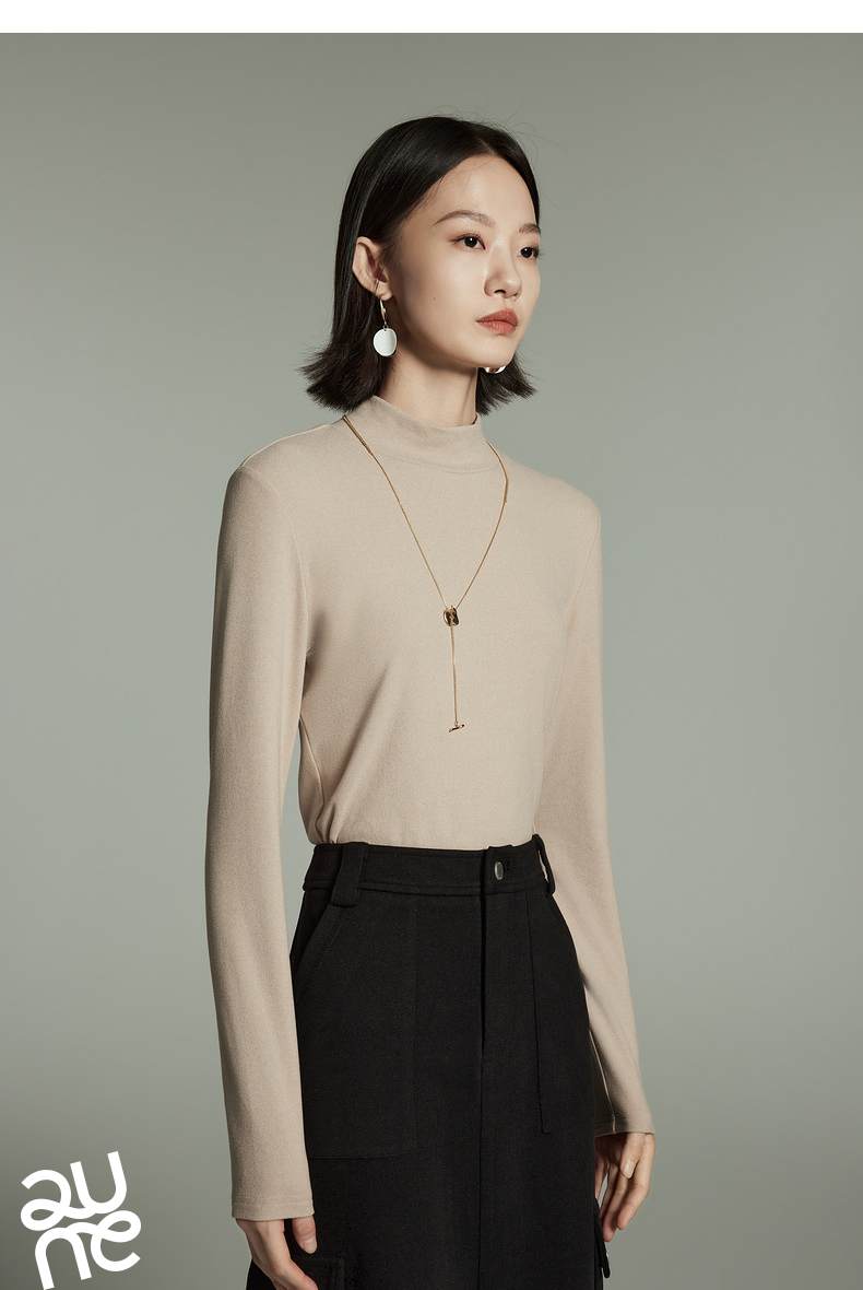 【品牌优选】TOYOUTH初语舒绒保暖长袖T恤女2024秋冬新款半高领修身打底衫