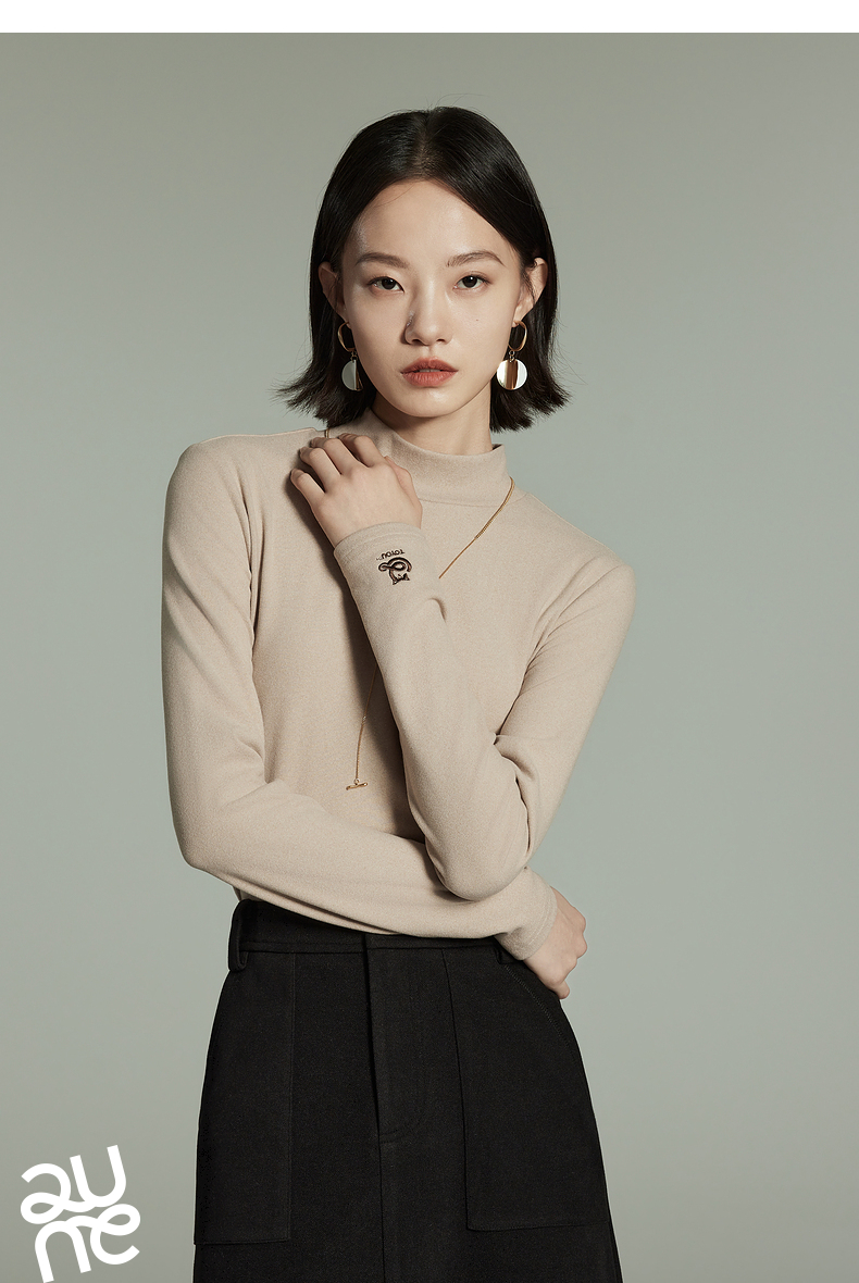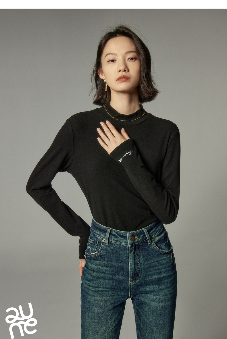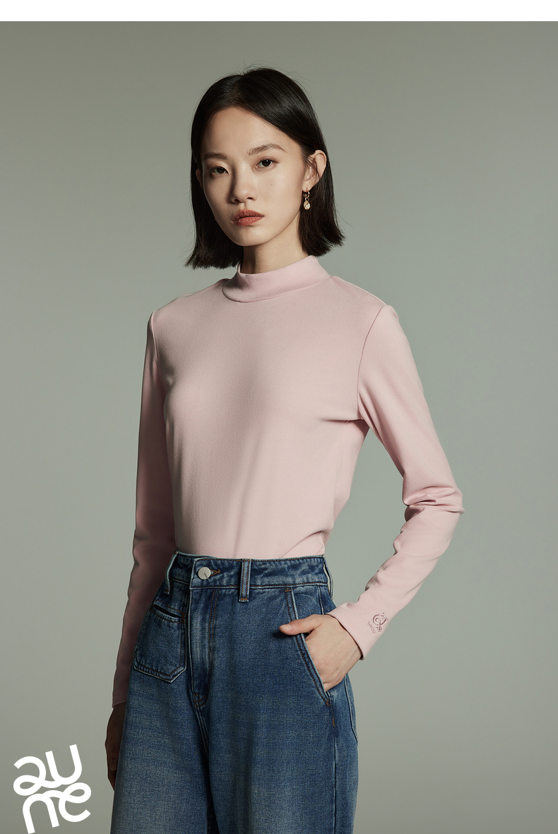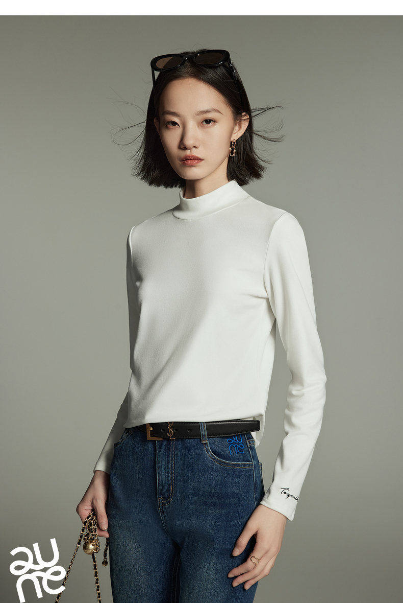【品牌优选】TOYOUTH初语舒绒保暖长袖T恤女2024秋冬新款半高领修身打底衫