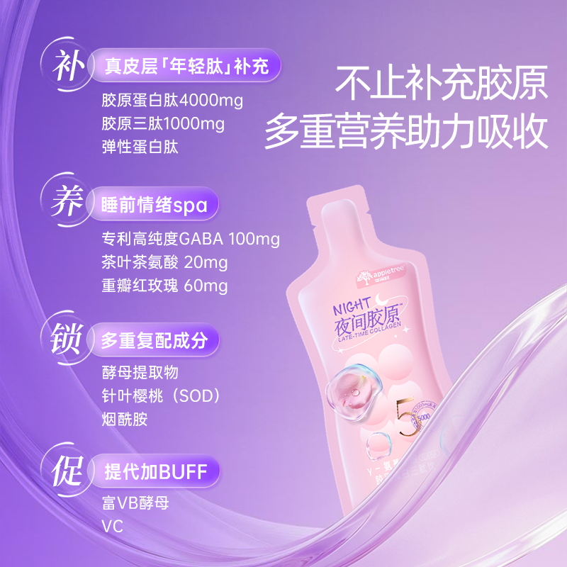 ⁵【夜间胶原-升级款】4000mg胶原蛋白肽+1000mg胶原三肽+100mg γ-氨基丁酸+重瓣玫瑰, 45ml*7袋/盒 YY05-QTT-PGS