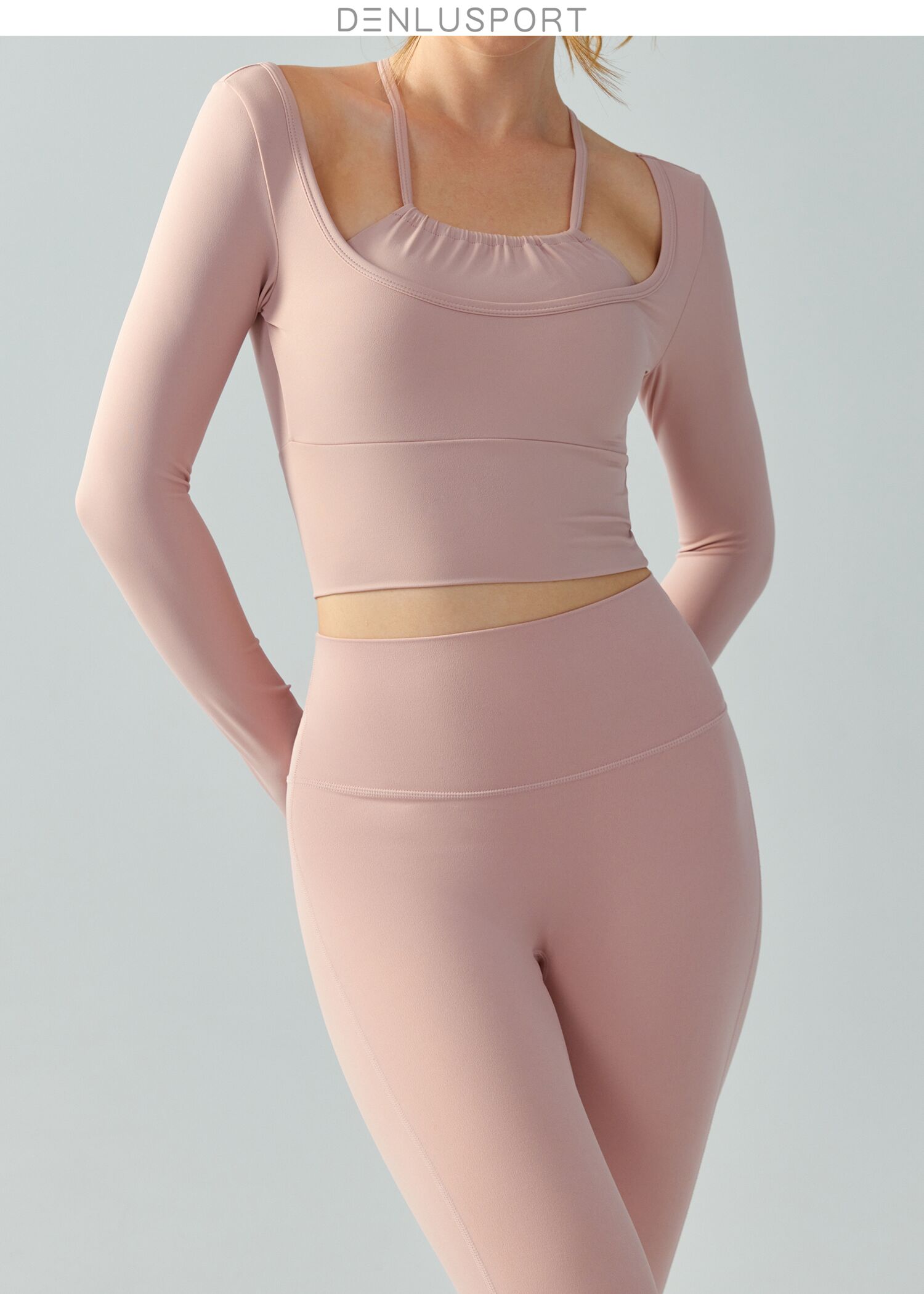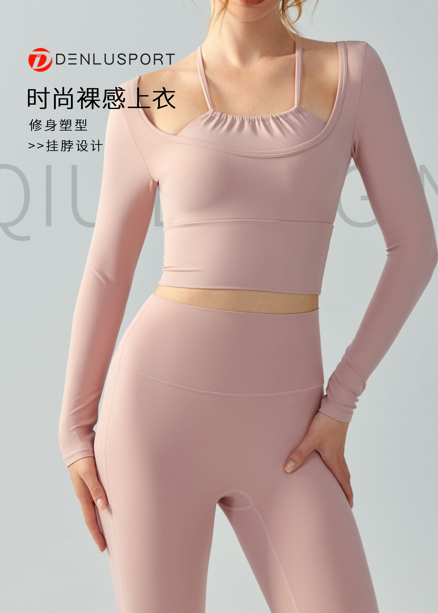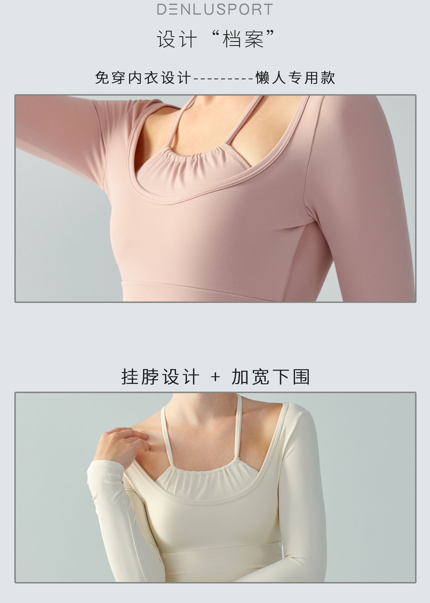 秋冬新款挂脖长袖DY66058#纤细吊带假两件层次叠加丰富固定胸垫免穿内衣呵护胸部安全贴合身形收腰显瘦