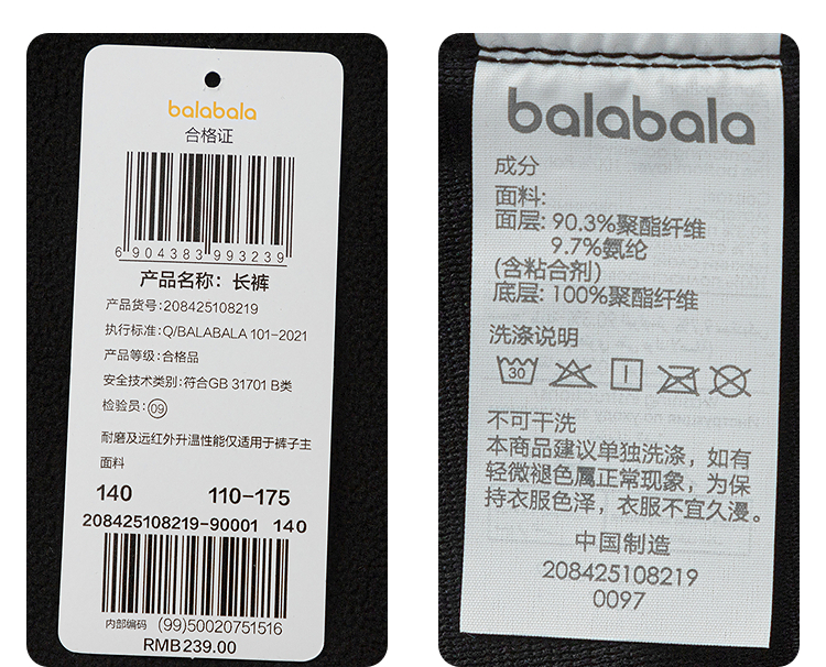 巴拉巴拉balaOne儿童长裤男童女童2025冬装新款加绒束脚裤子保暖