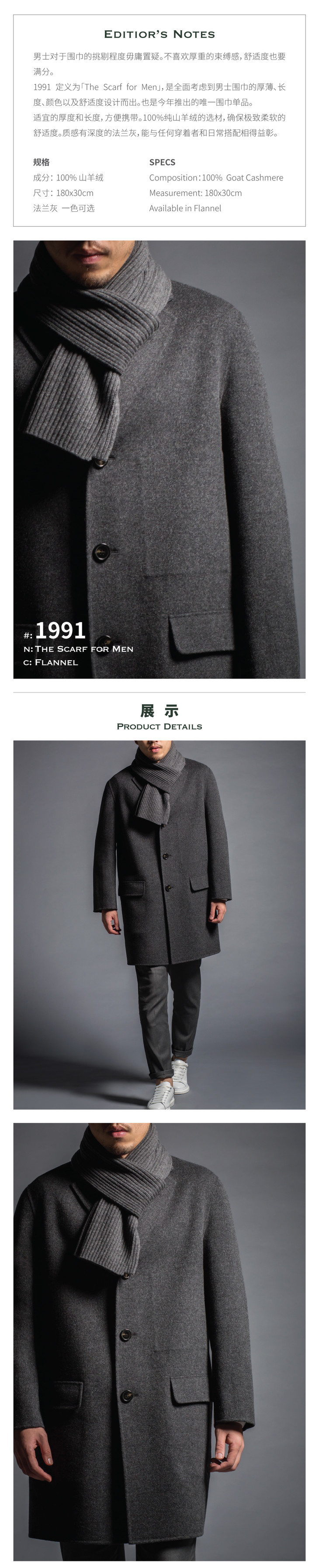 #1991 The Scarf for Men 纯羊绒限定男款围巾 法兰灰
