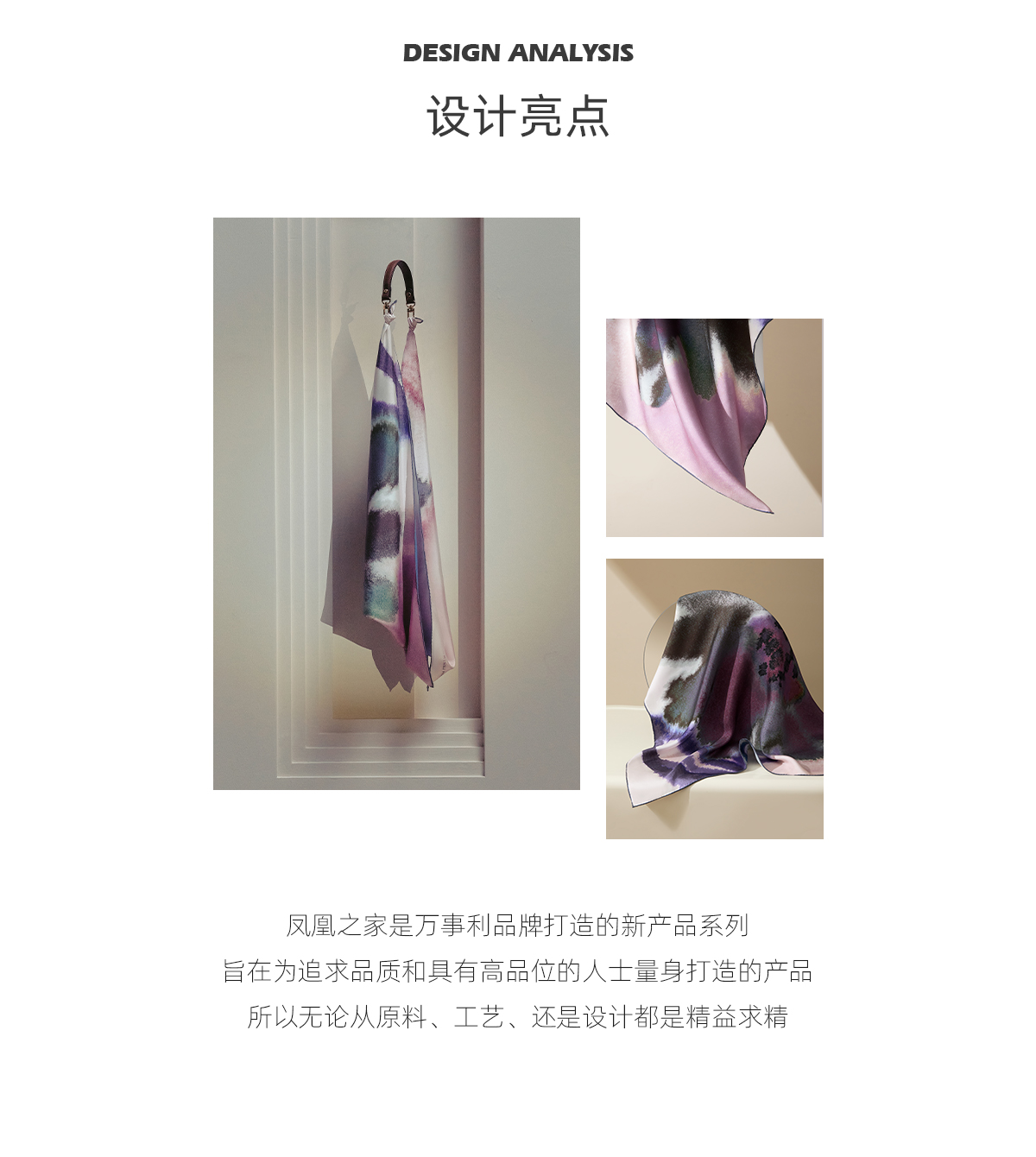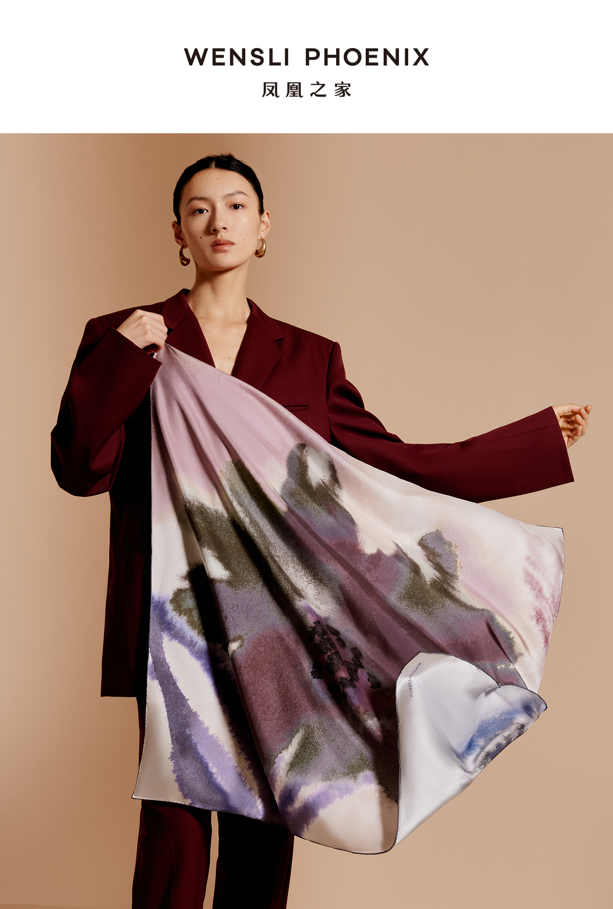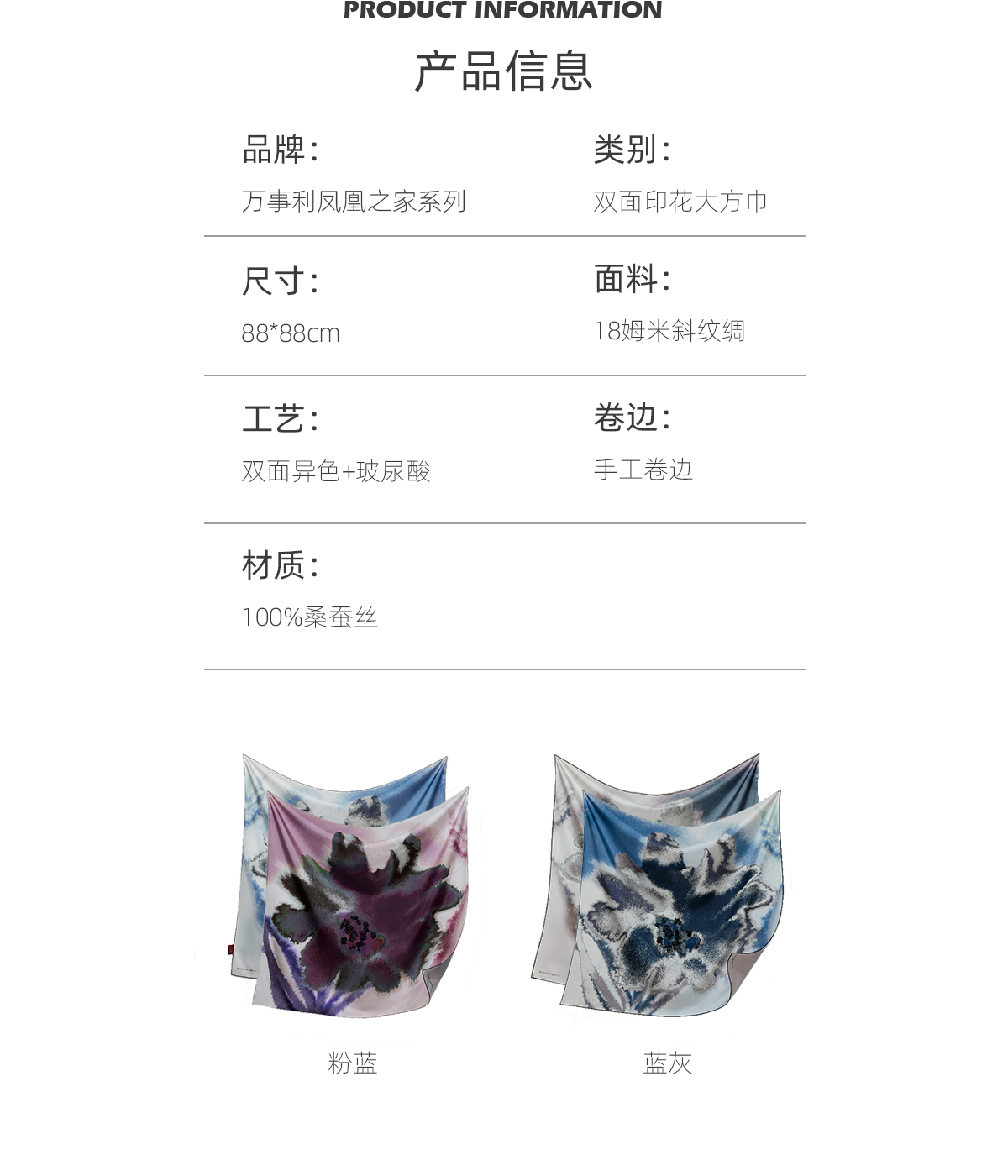 凤凰之家“秘境花园”88厘米双面印花大方巾