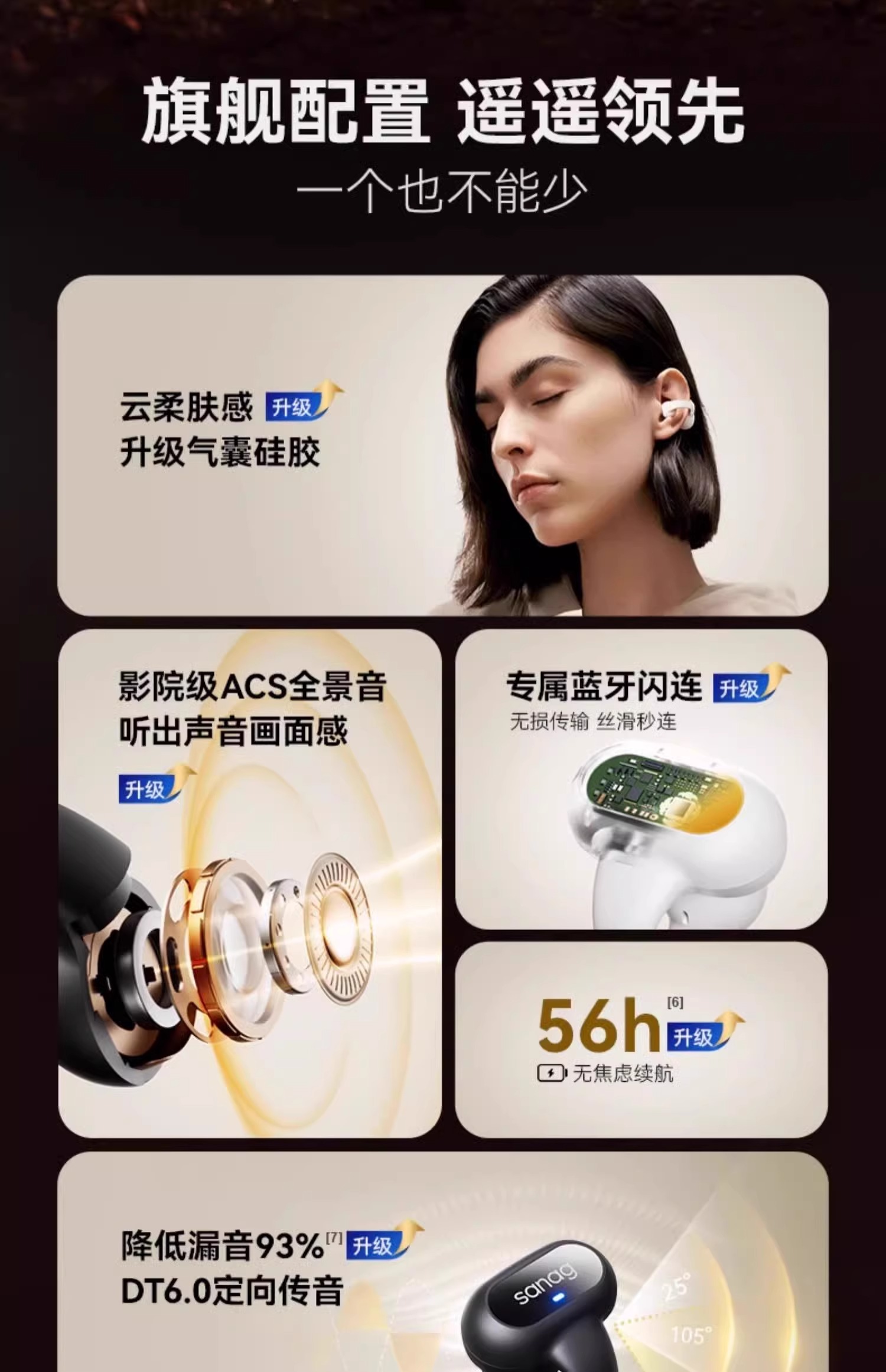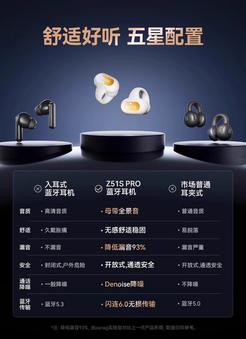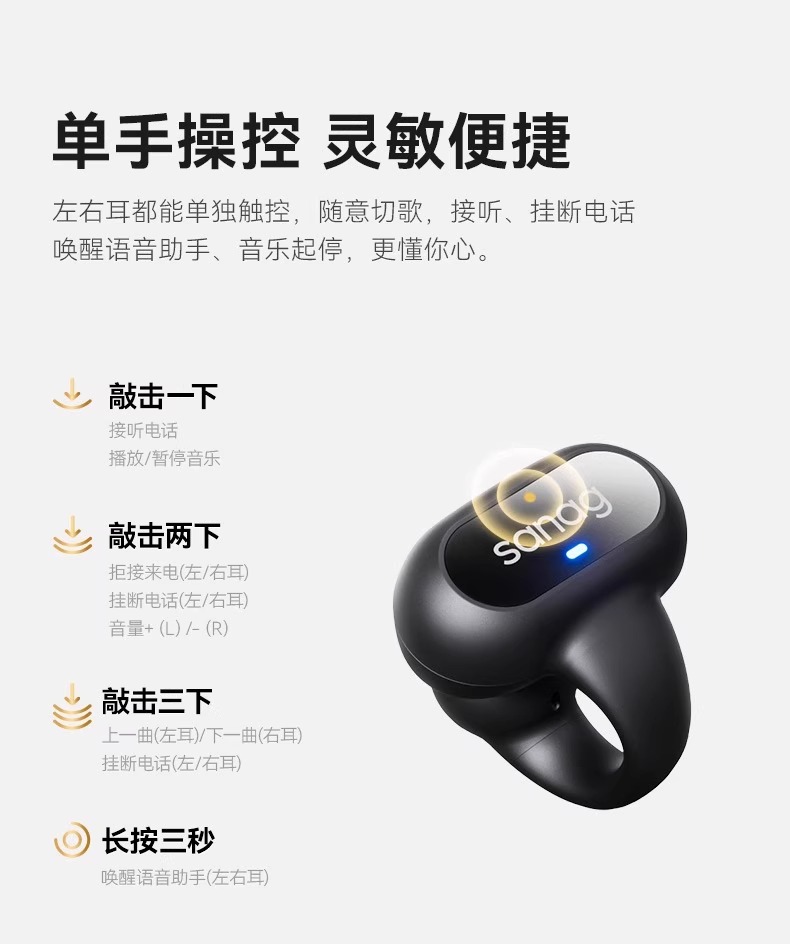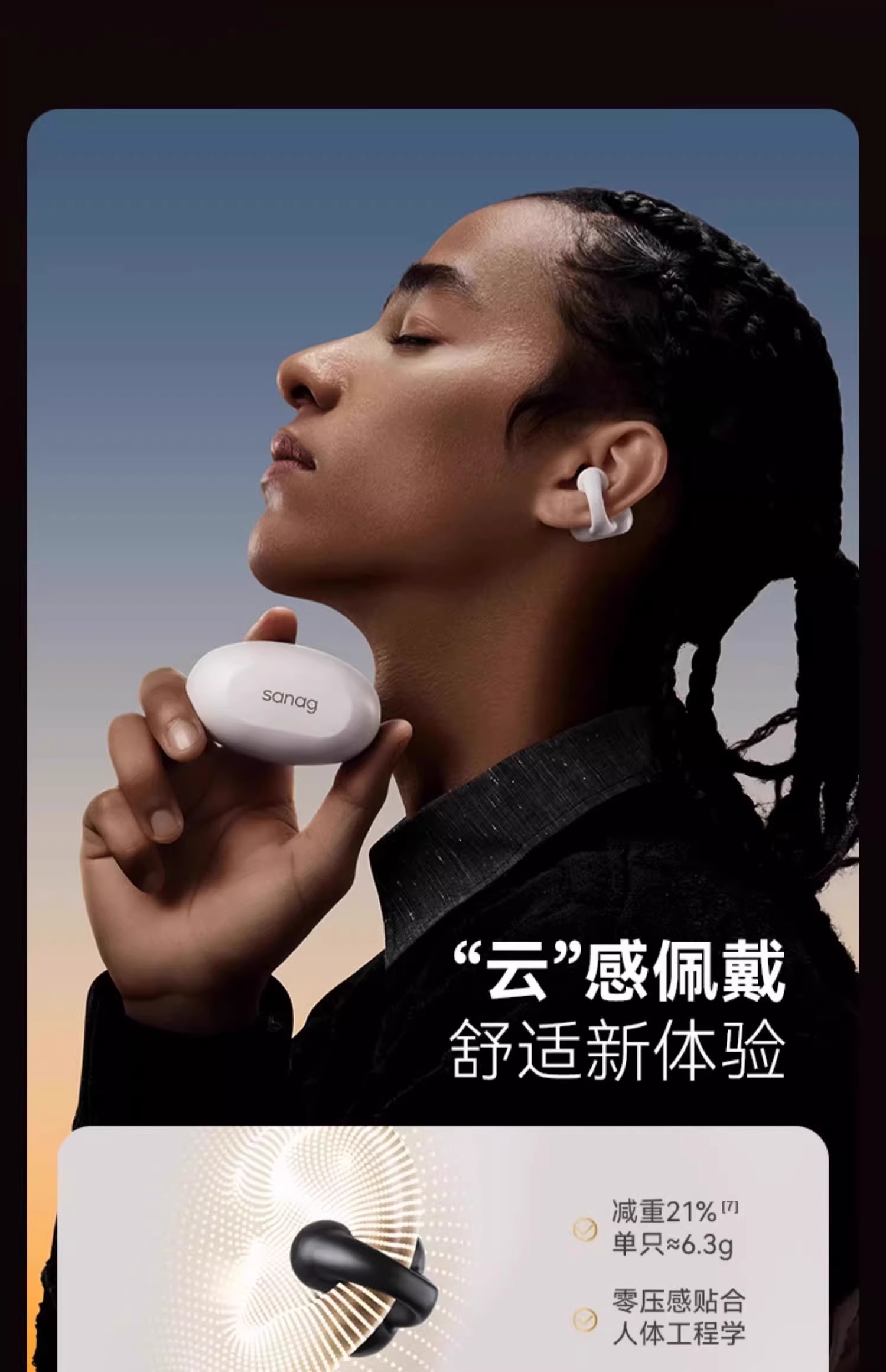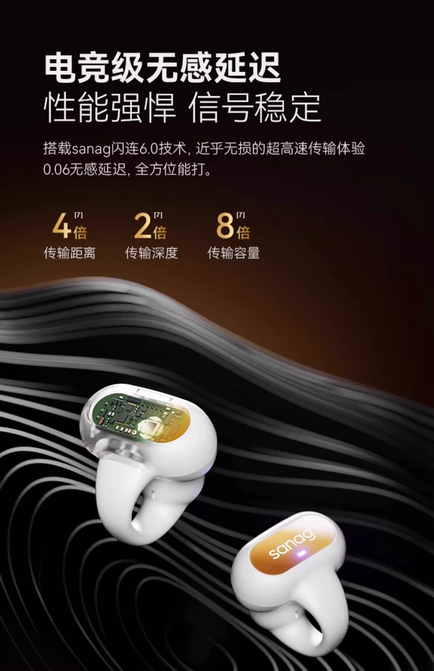 【不入耳 ENC降噪 好音质不易漏音】塞那sanag Z51sPro旗舰版 新概念无线夹耳蓝牙耳机