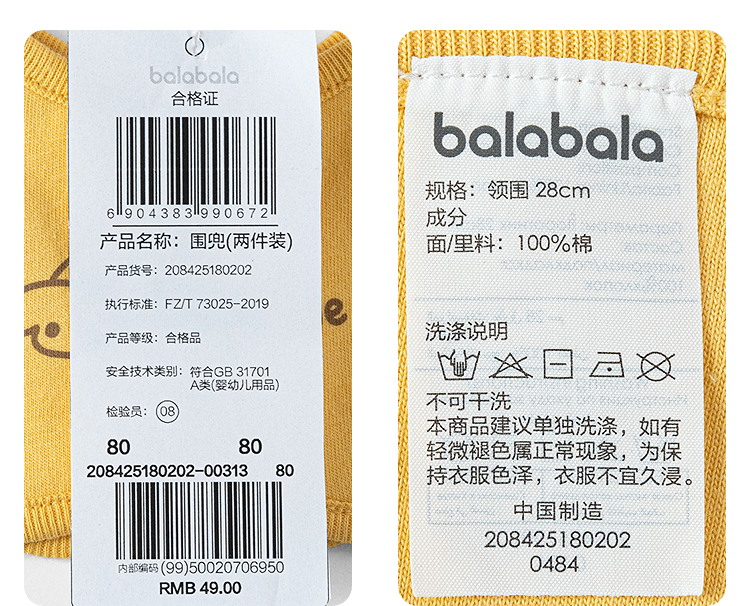 巴拉巴拉balaOne婴儿口水巾宝宝吐奶围嘴新生儿吃饭围兜两件装萌