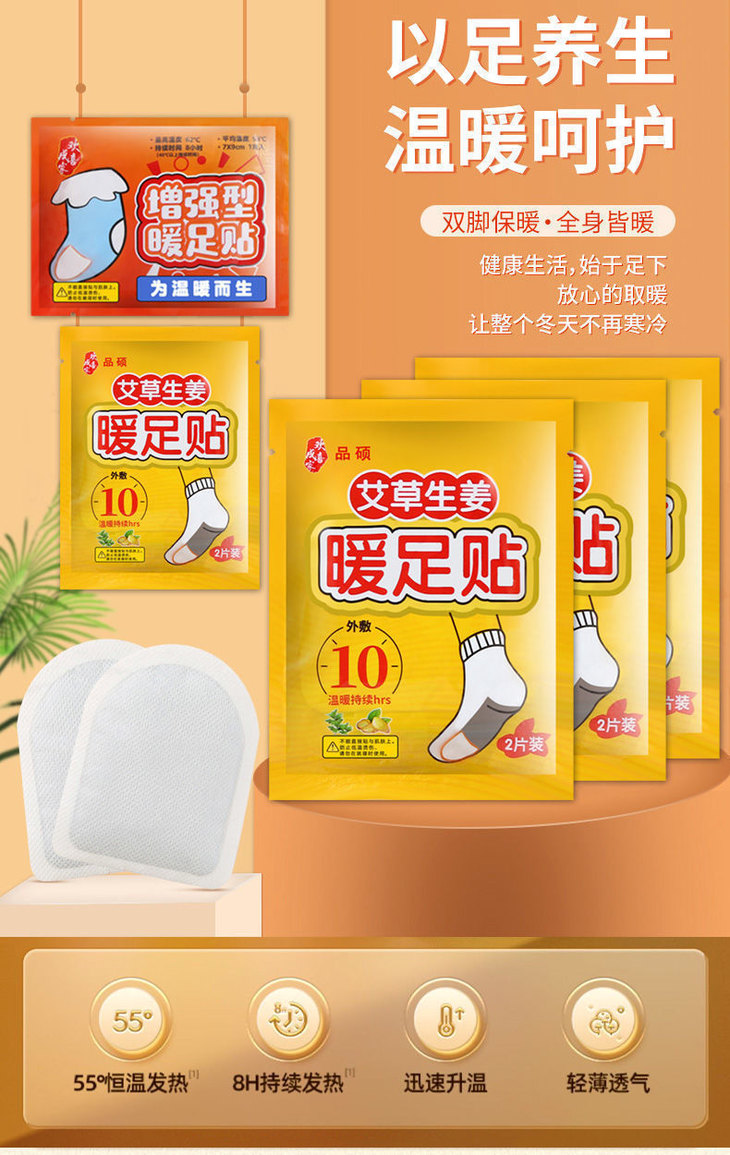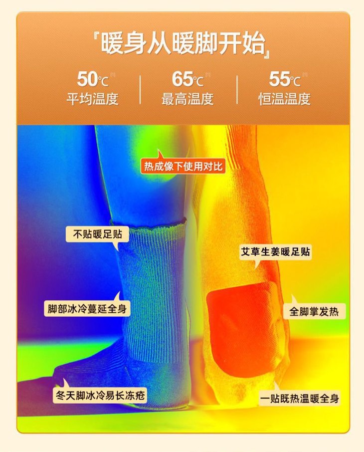 冬季艾草生姜暖足贴暖脚宝发热贴脚底贴暖宝宝足底贴脚底竹睡眠暖脚贴