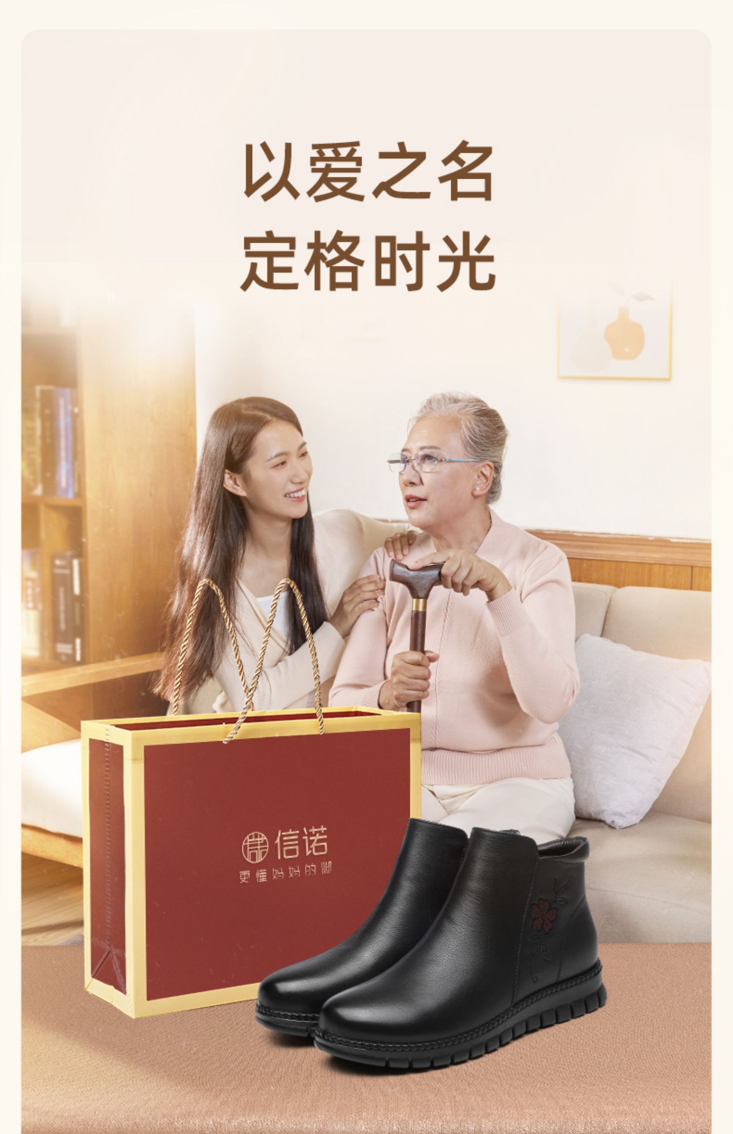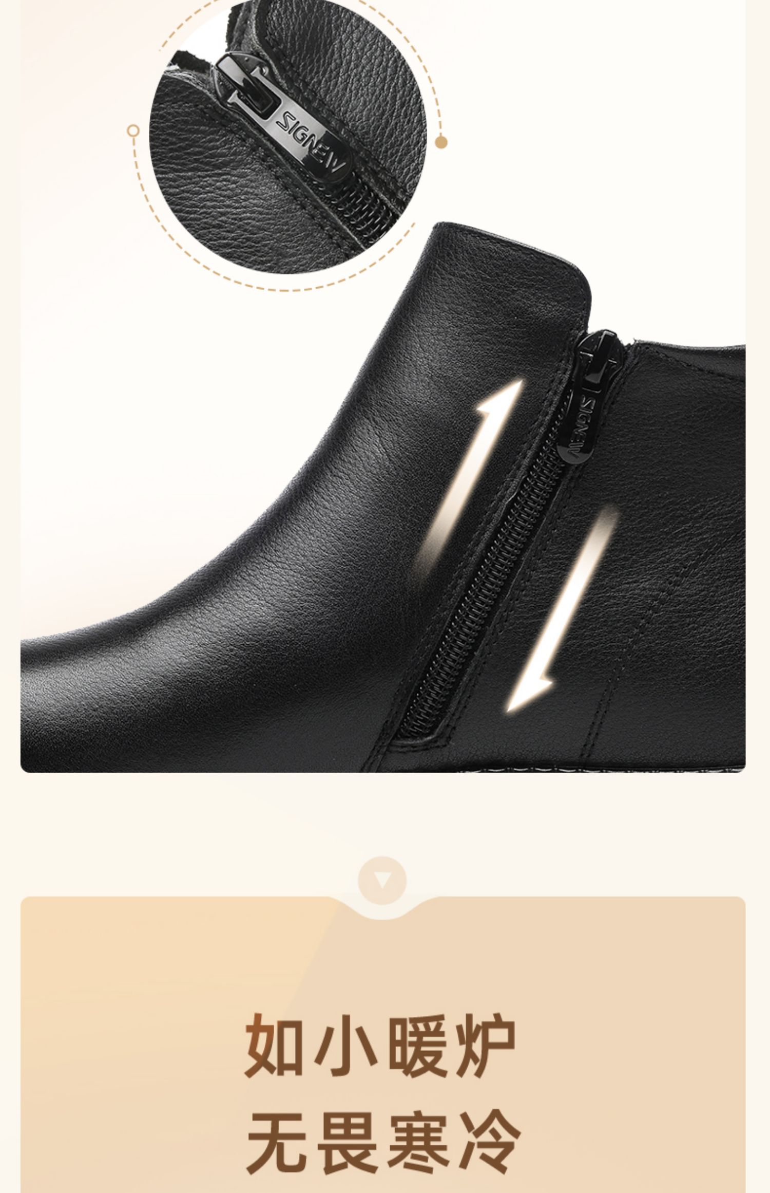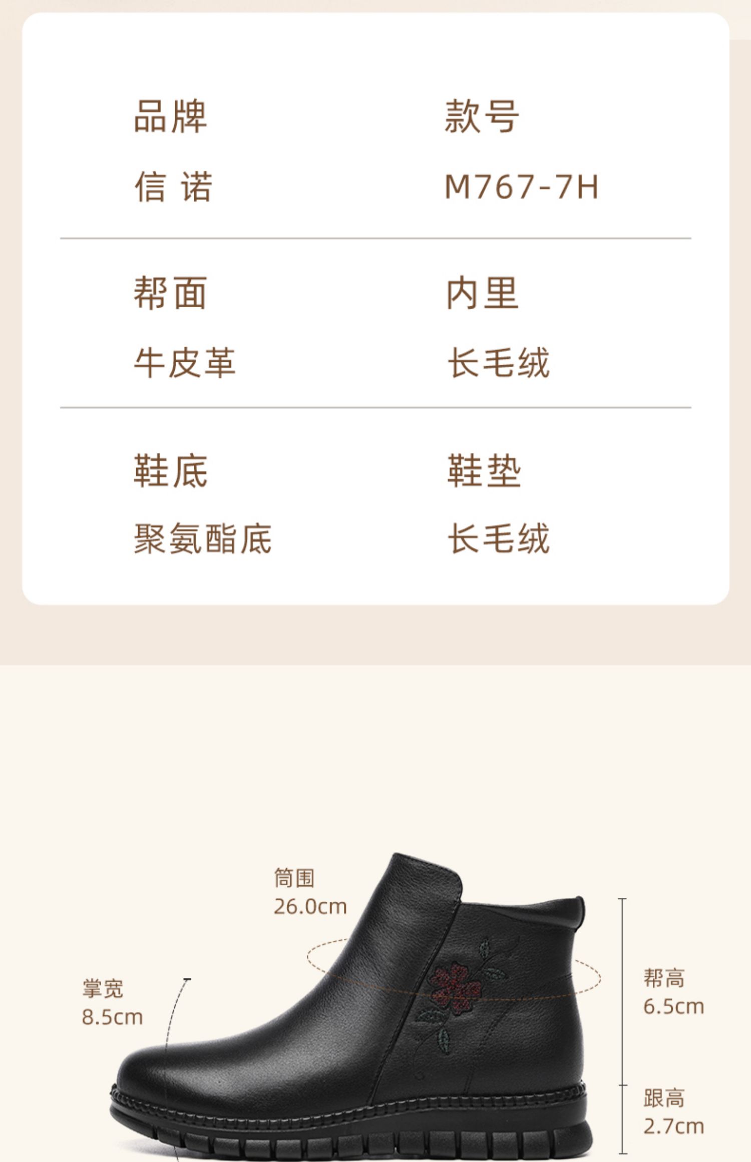 信诺真皮奶奶鞋皮鞋加绒加厚保暖棉鞋冬季新款女鞋中老年人短靴子M767-7H