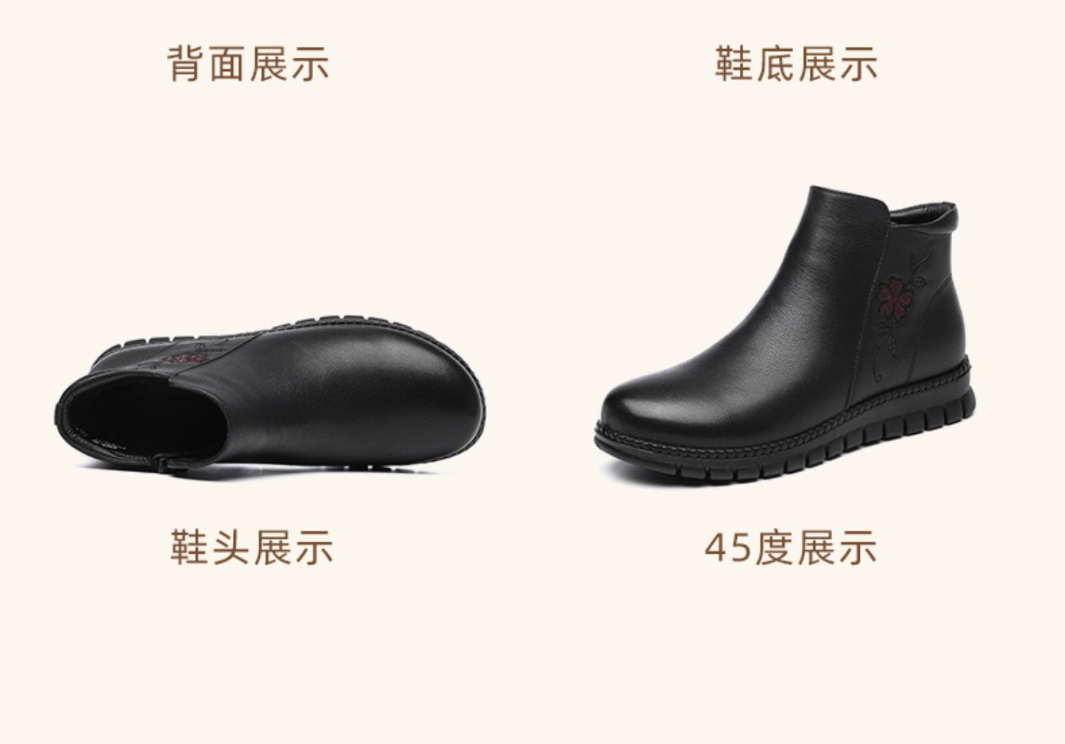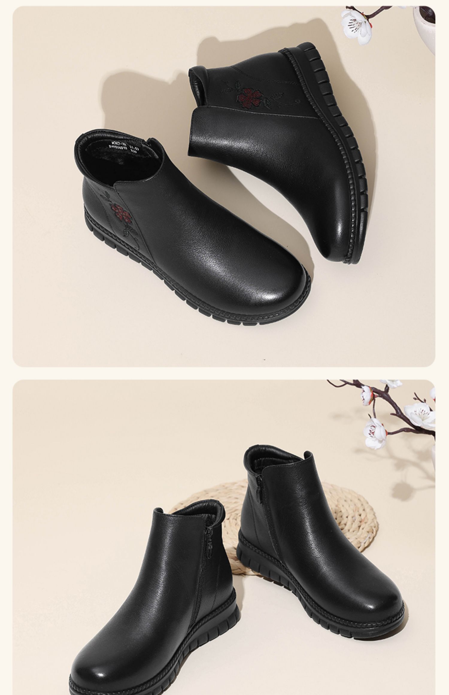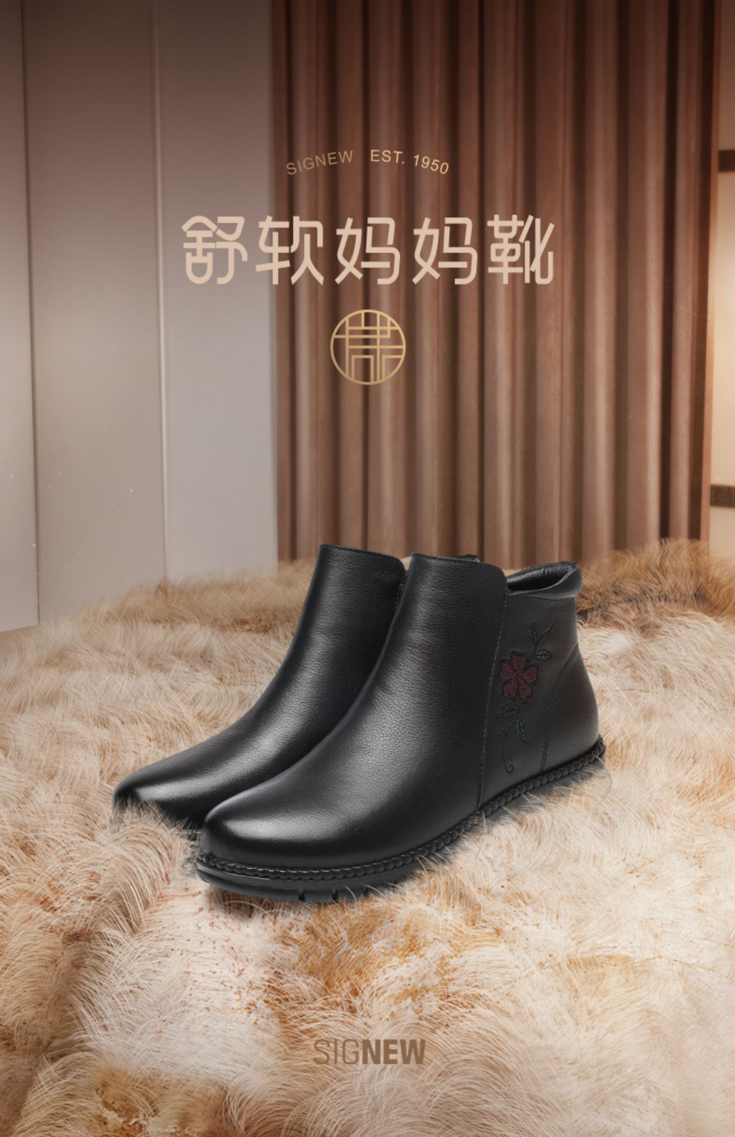 信诺真皮奶奶鞋皮鞋加绒加厚保暖棉鞋冬季新款女鞋中老年人短靴子M767-7H