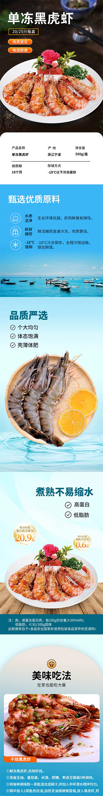 蓝雪 黑虎虾冷冻海鲜 (20-25只)肉质紧实 壳薄体肥 500g*1(商)
