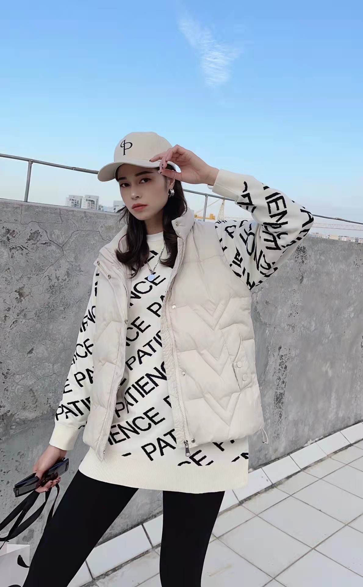 21749#复古风慵懒高级感字母印花针织衫