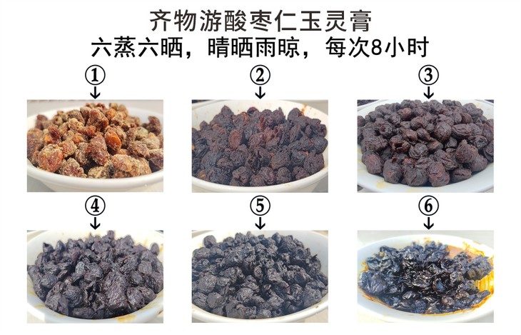六天里,六蒸六晒 48个小时。白天米气蒸制,夜晚放凉收膏