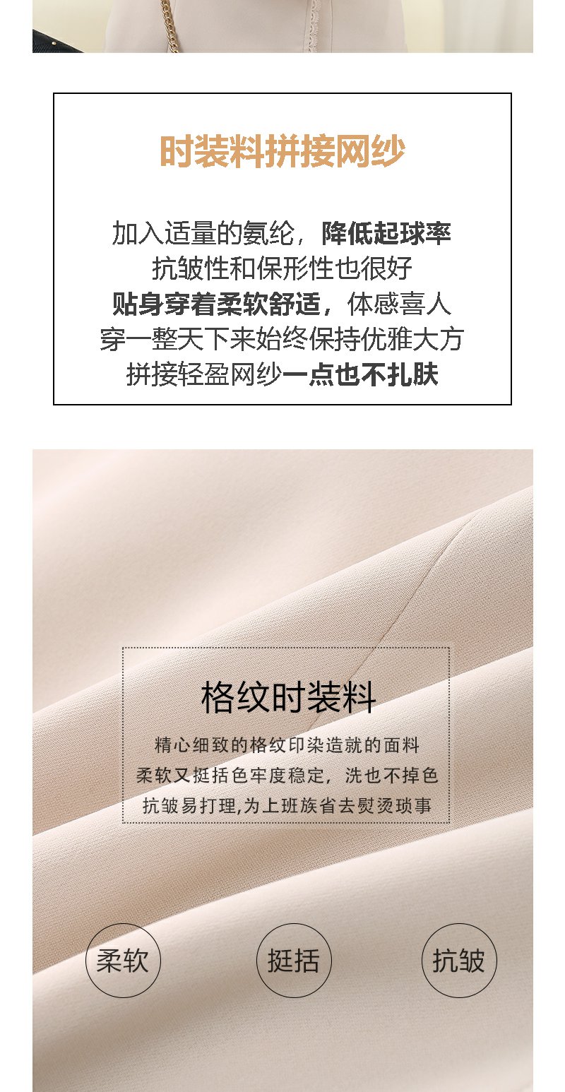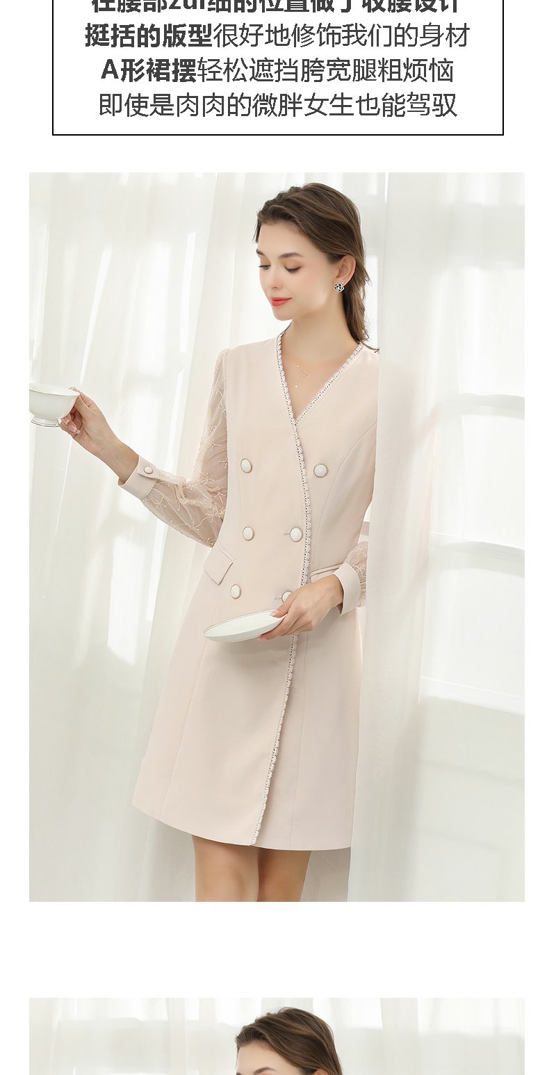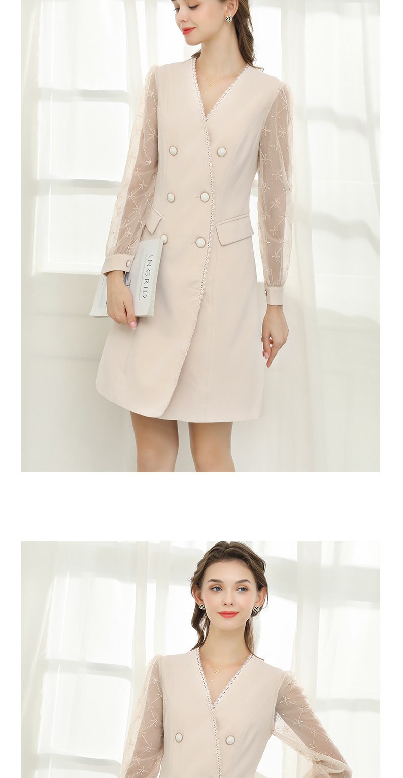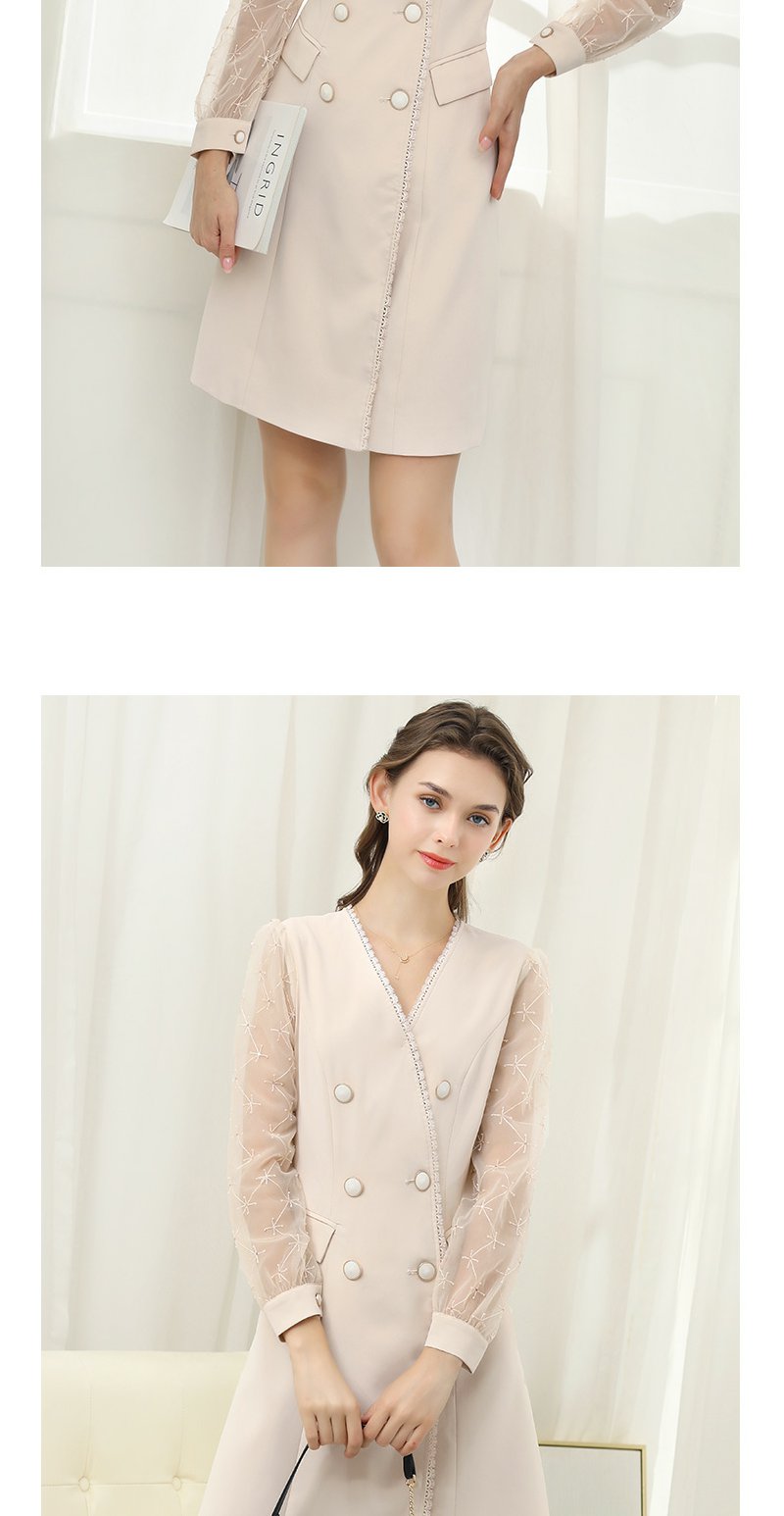 未风杏色网纱拼接连衣裙女春2024年春季新款女装时尚显瘦长袖裙子