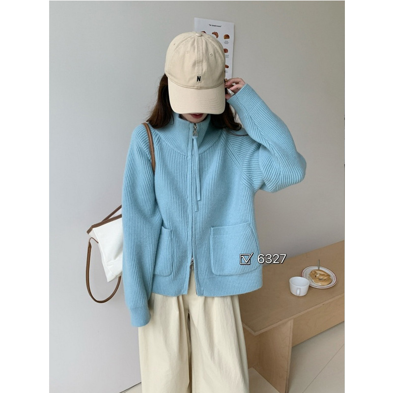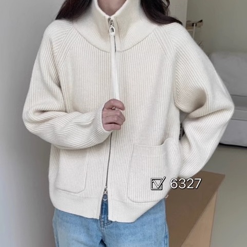 【YW】无忧购【甄选】软糯慵懒双拉链毛衣外套女翻领针织开衫宽松外搭浣熊绒上衣3912(截单后7天发货)