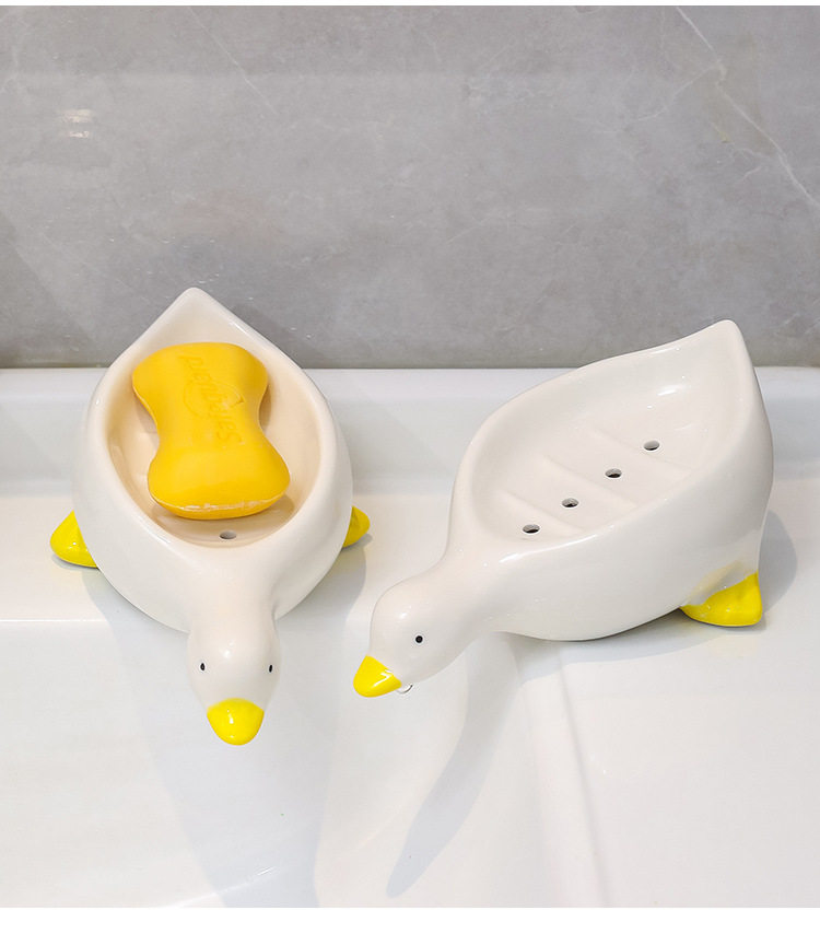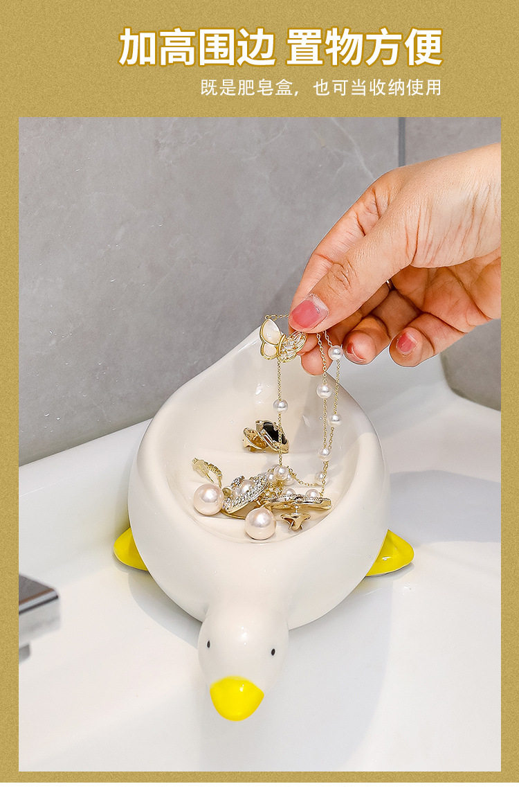 创意小鸭子肥皂盒沥水陶瓷工艺品家用香皂盒皂碟皂托洗手台置物架