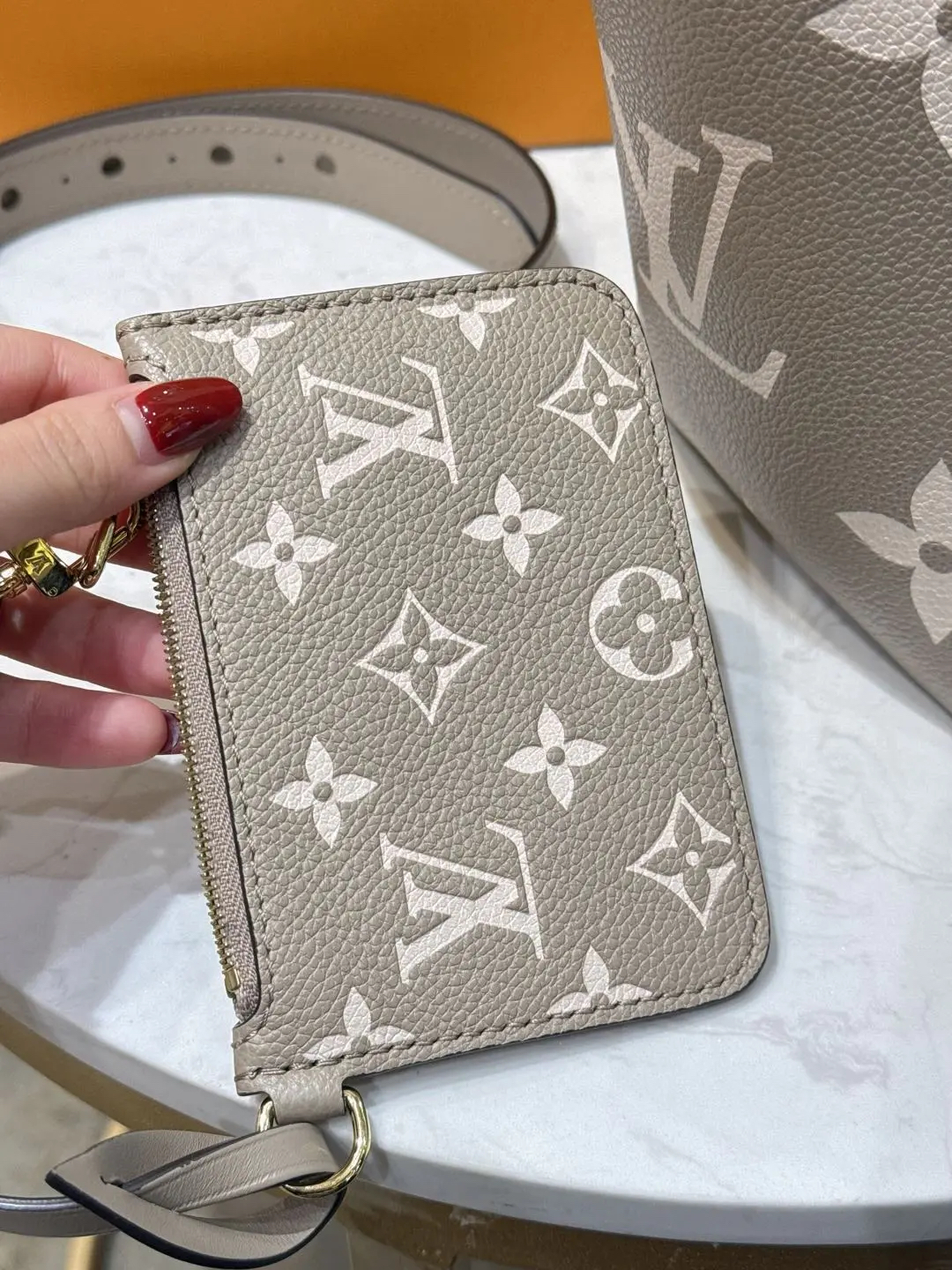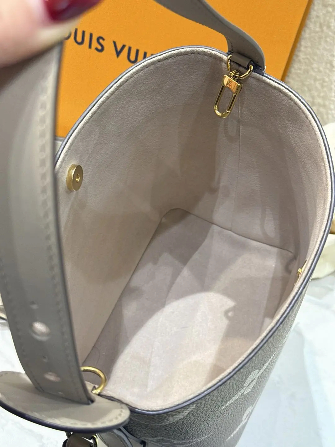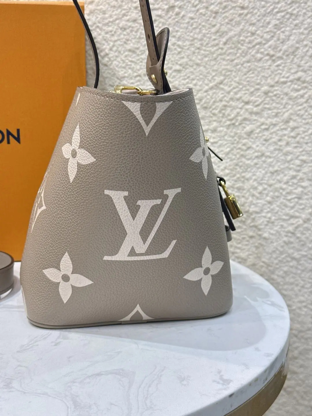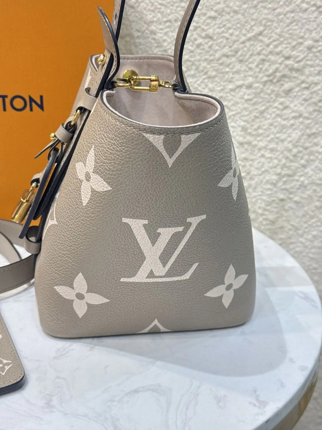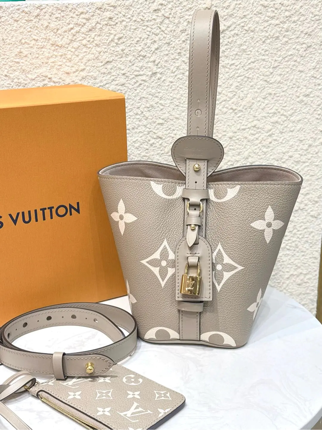 LV ALL IN BB 大象灰 压纹老花牛皮 金扣 斜挎包