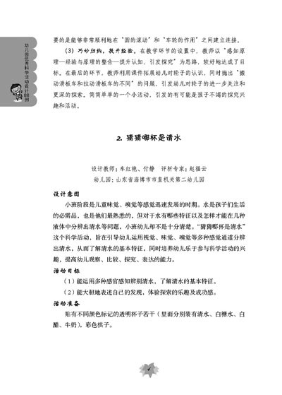 科学活动设计案例很多,教师们在教学活动中天天接触。但好的科学活动设计不多,它要内容生动有趣,让幼儿喜欢;它要实验科学严密,经得起反复推敲,能够得到实验效果;它要设计新颖,让老师们推陈出新。很难得,本书做到了这几点。