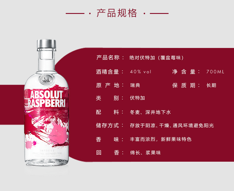 绝对伏特加 覆盆莓味 700ml/1瓶/2瓶