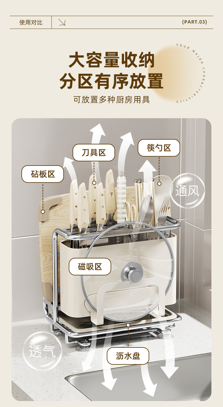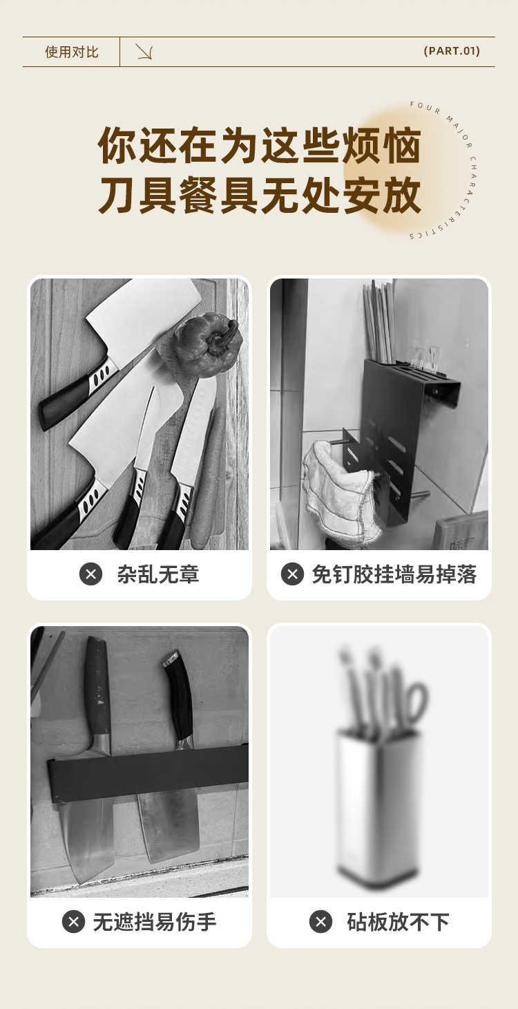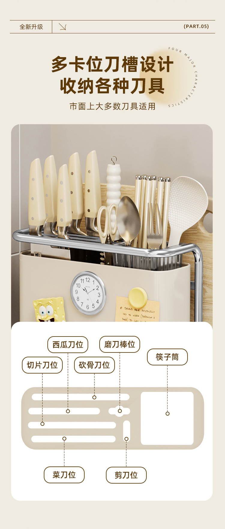 「多功能五合一!高颜值」厨房刀架置物架 壁挂多功能台面筷子笼砧板架放菜板刀具一体收纳整理架厨房用品