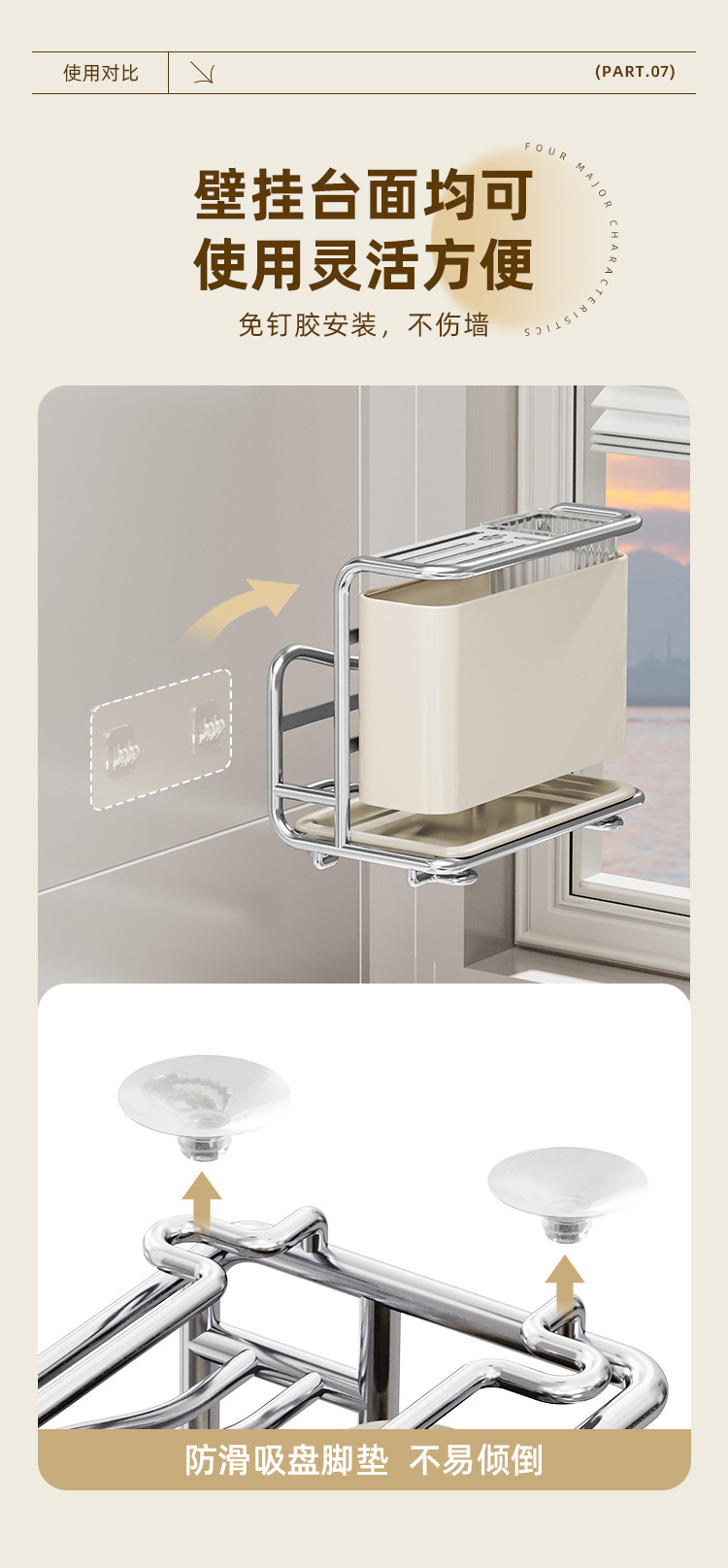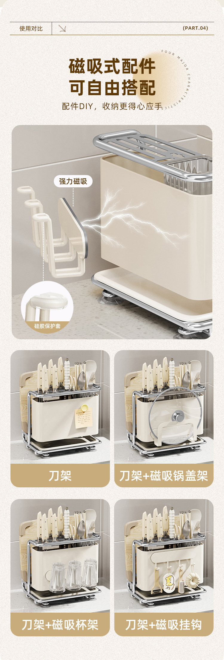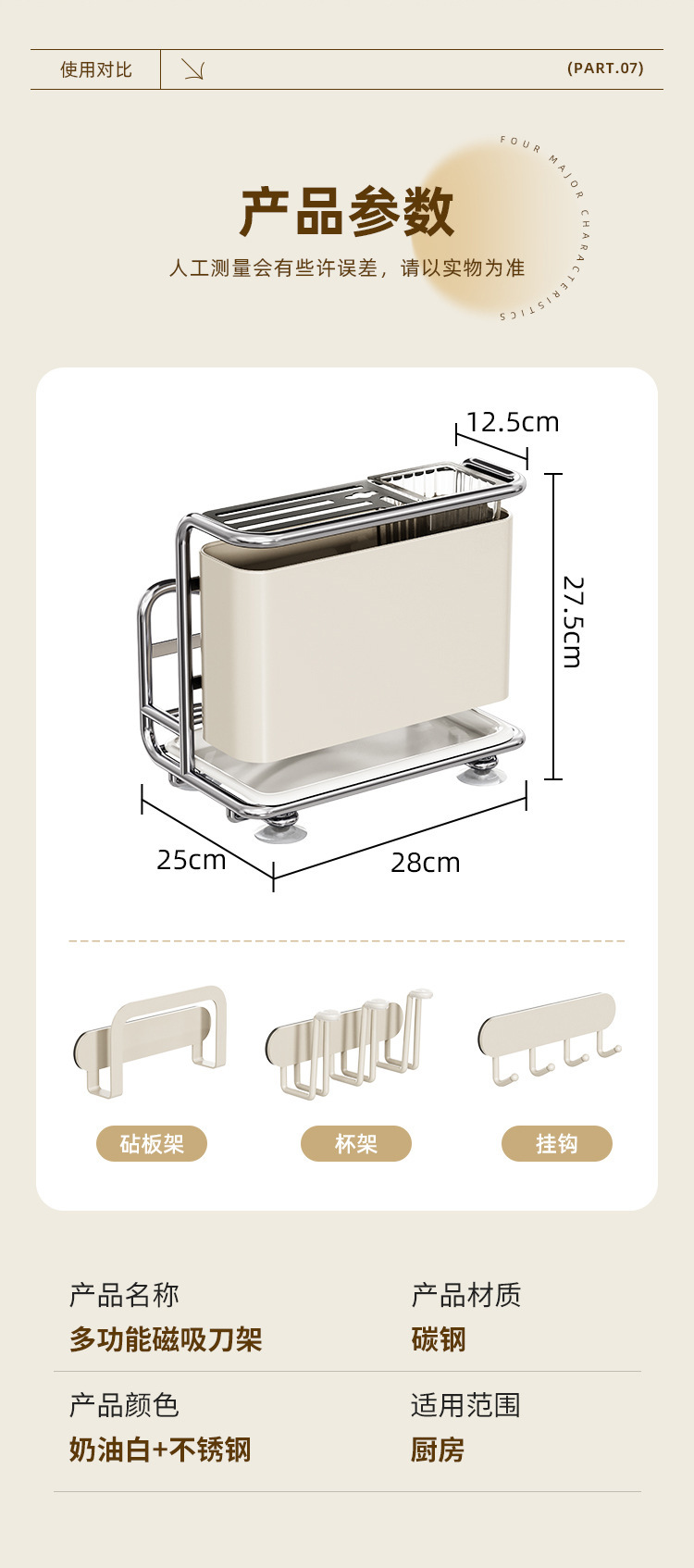 「多功能五合一!高颜值」厨房刀架置物架 壁挂多功能台面筷子笼砧板架放菜板刀具一体收纳整理架厨房用品
