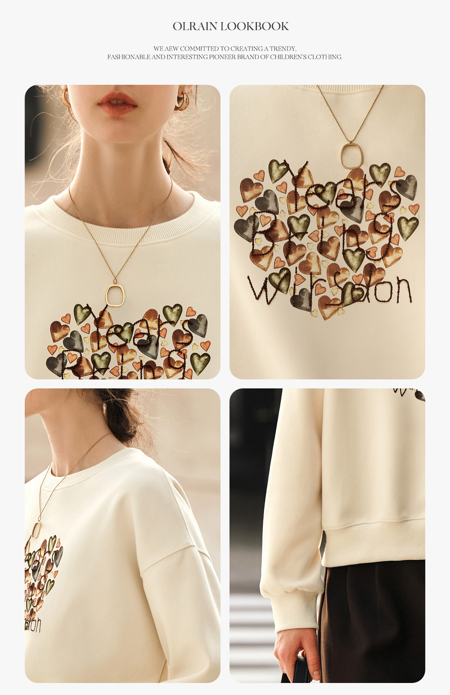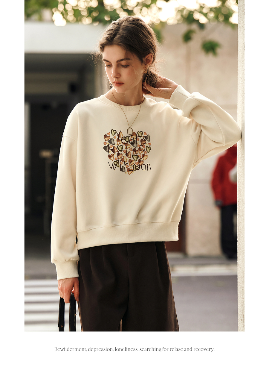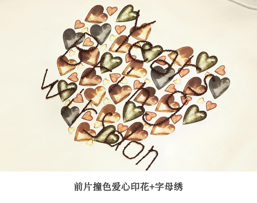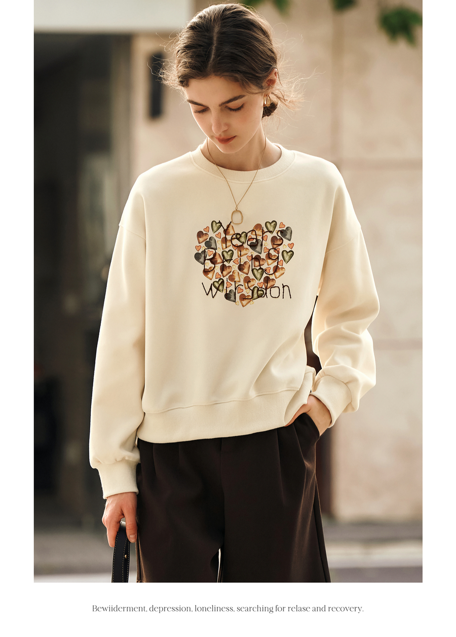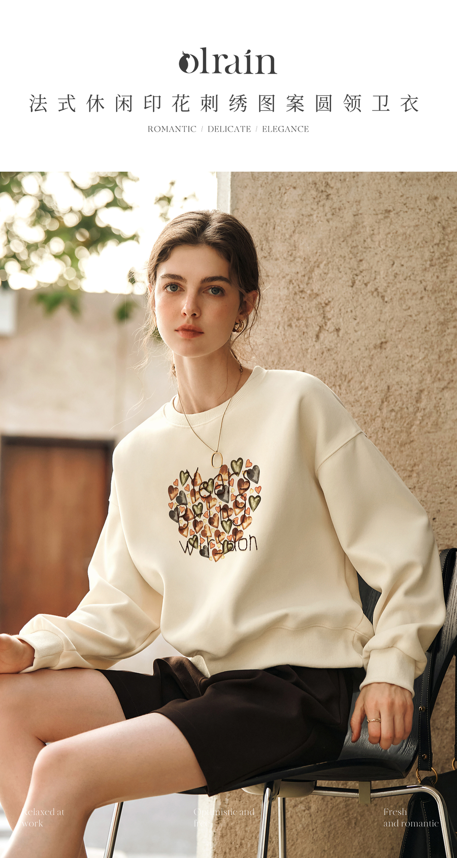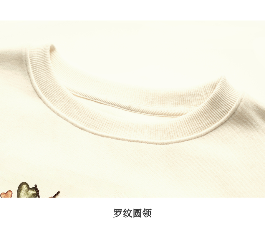 OLrain欧芮儿杏色圆领卫衣女冬季2024年新款法式印花刺绣长袖