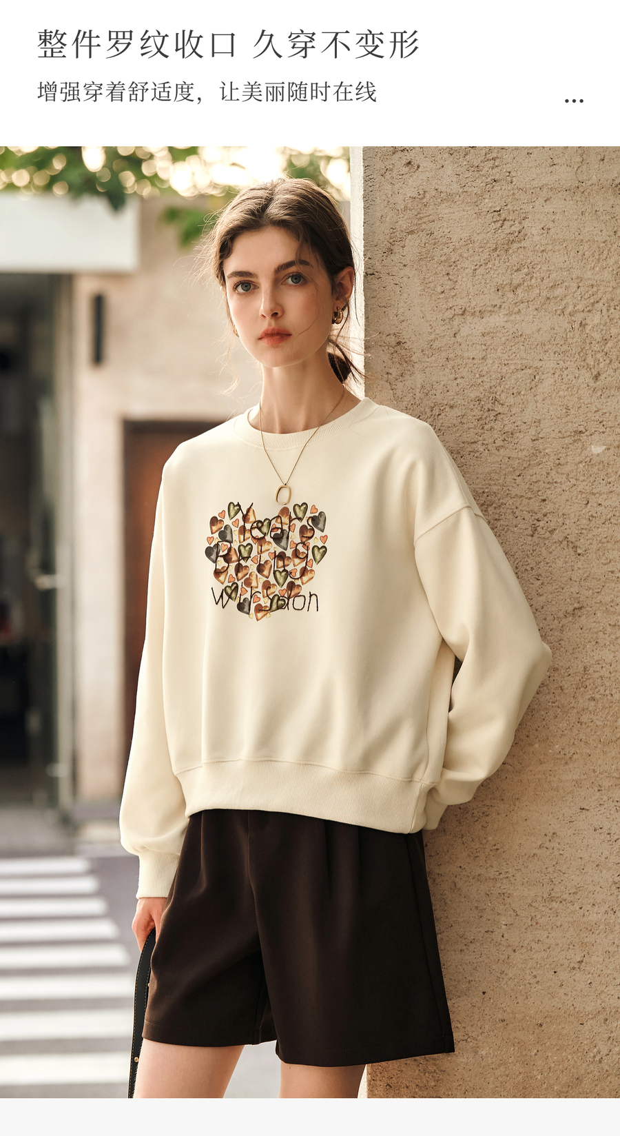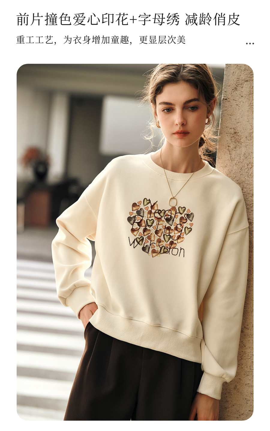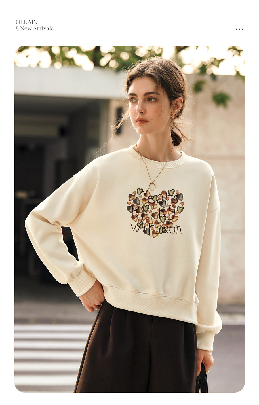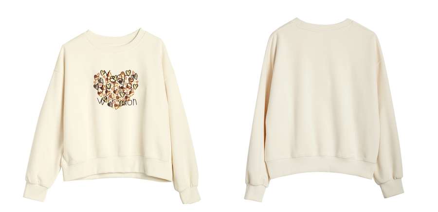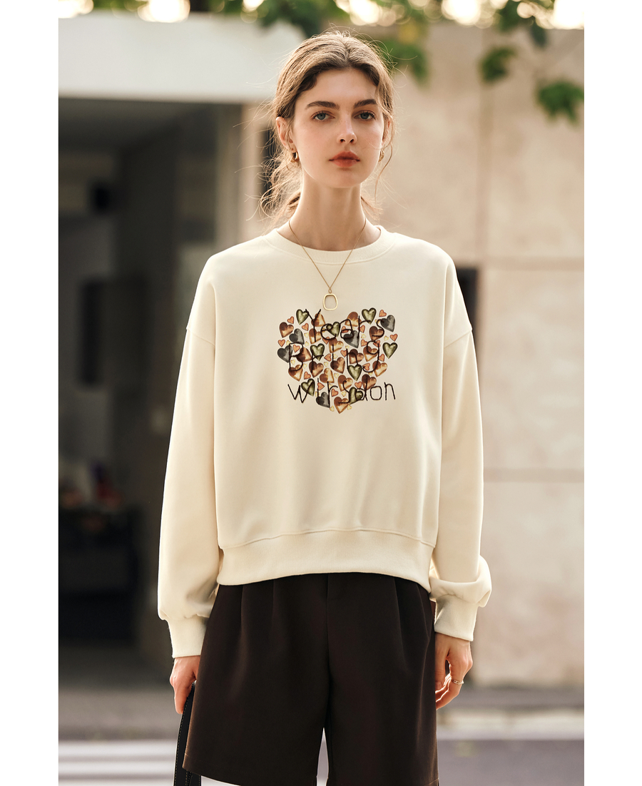 OLrain欧芮儿杏色圆领卫衣女冬季2024年新款法式印花刺绣长袖