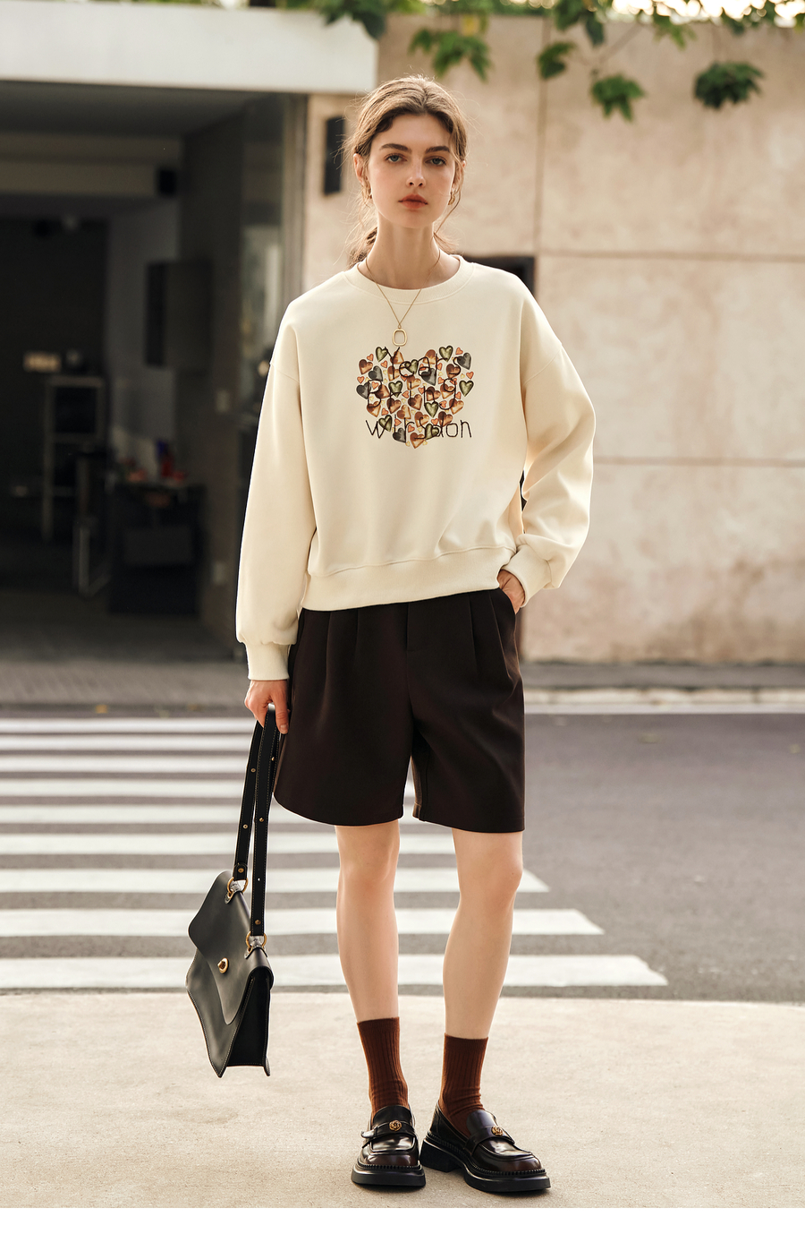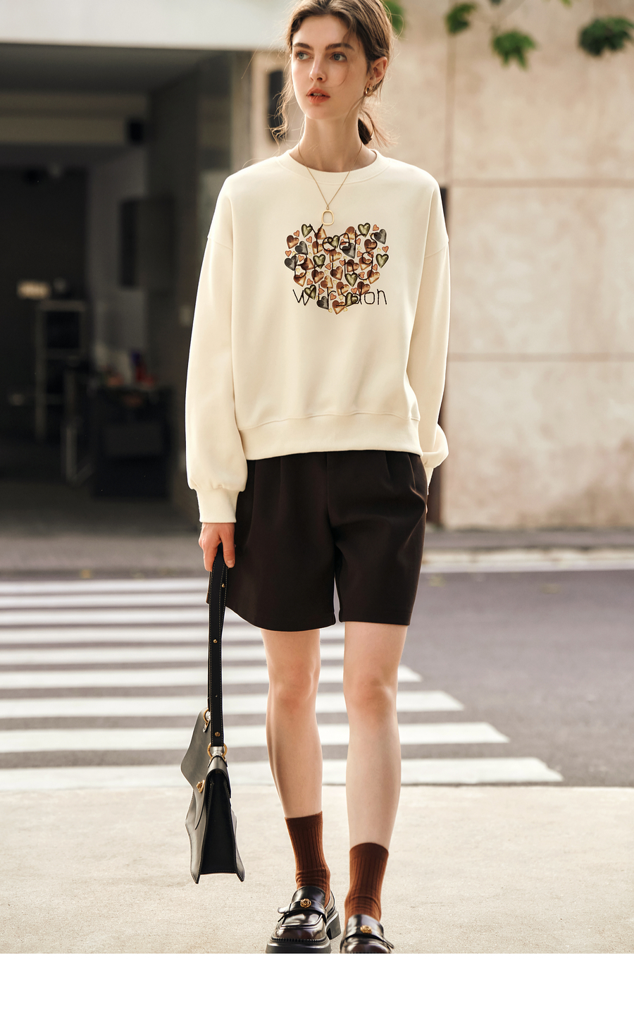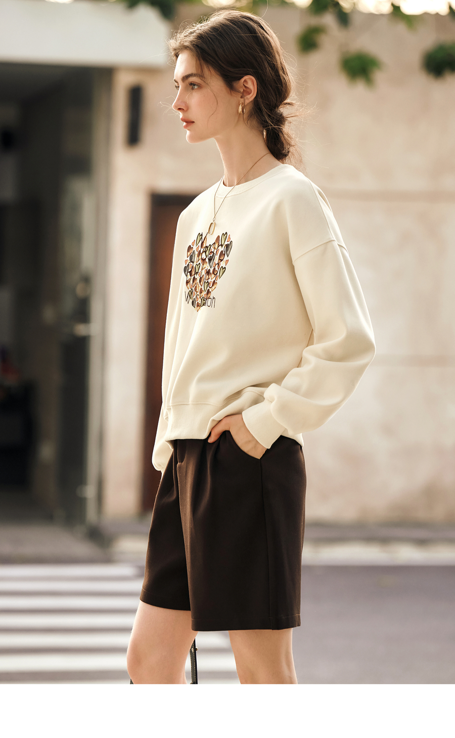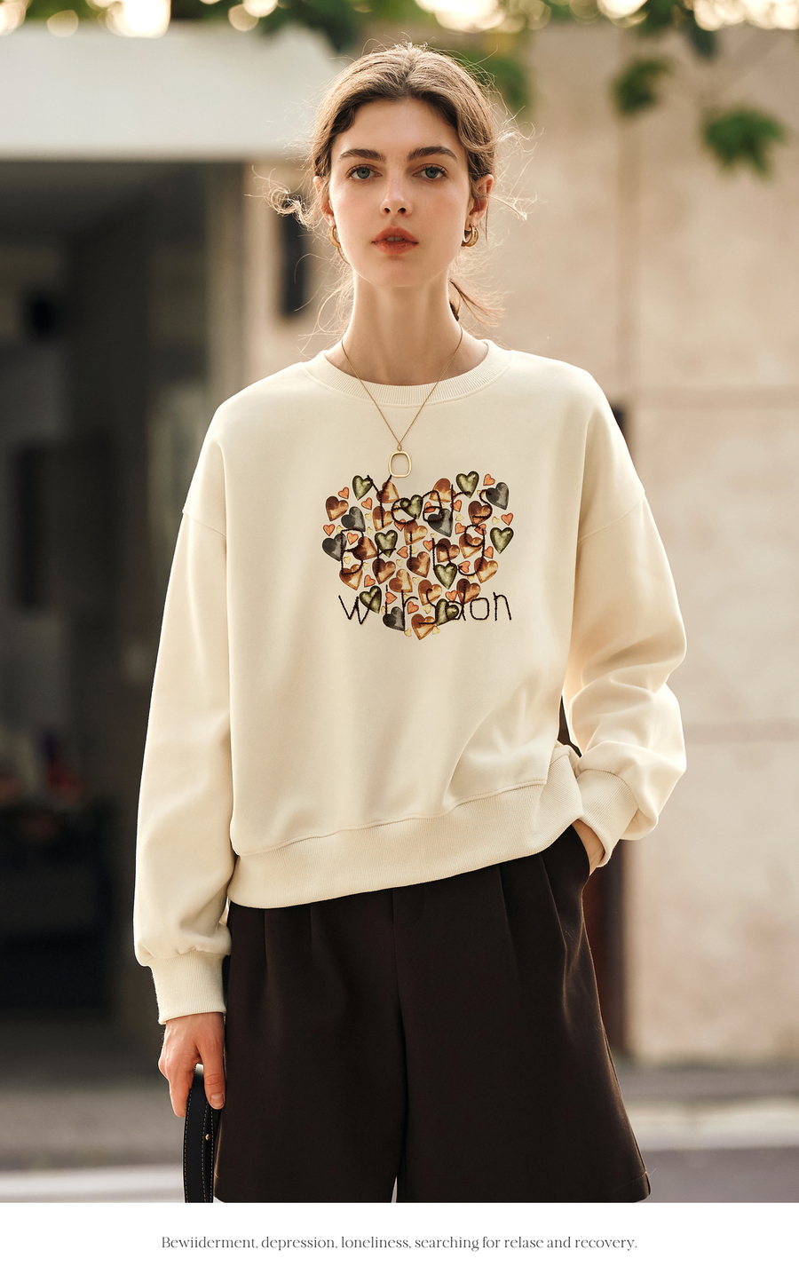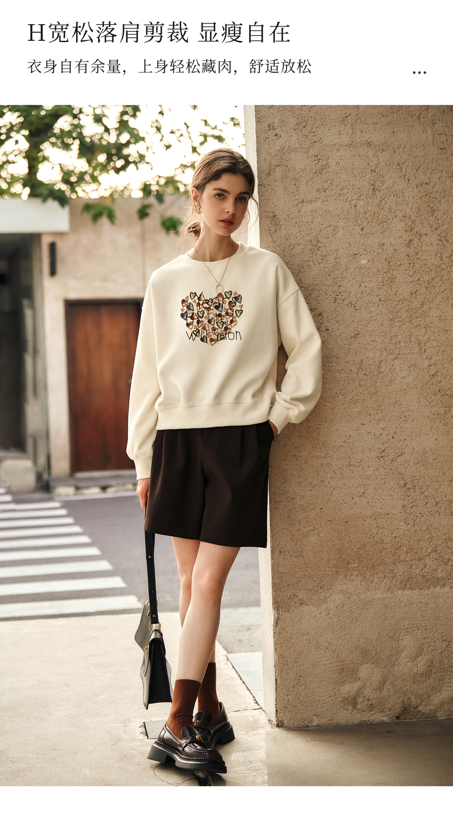 OLrain欧芮儿杏色圆领卫衣女冬季2024年新款法式印花刺绣长袖