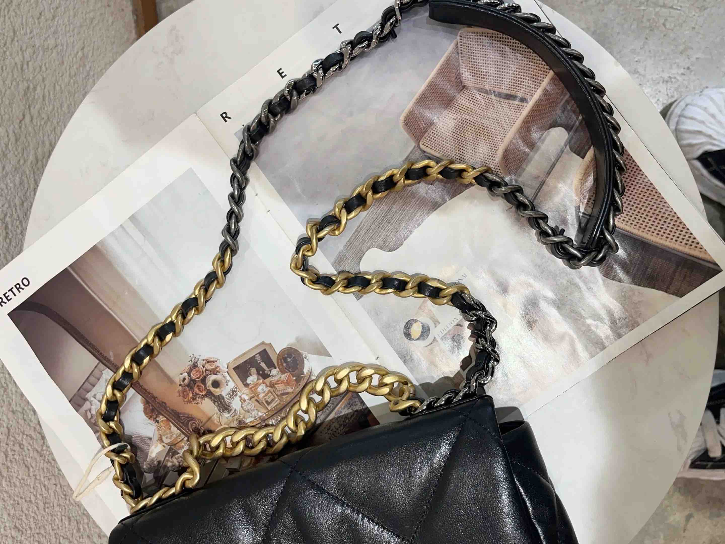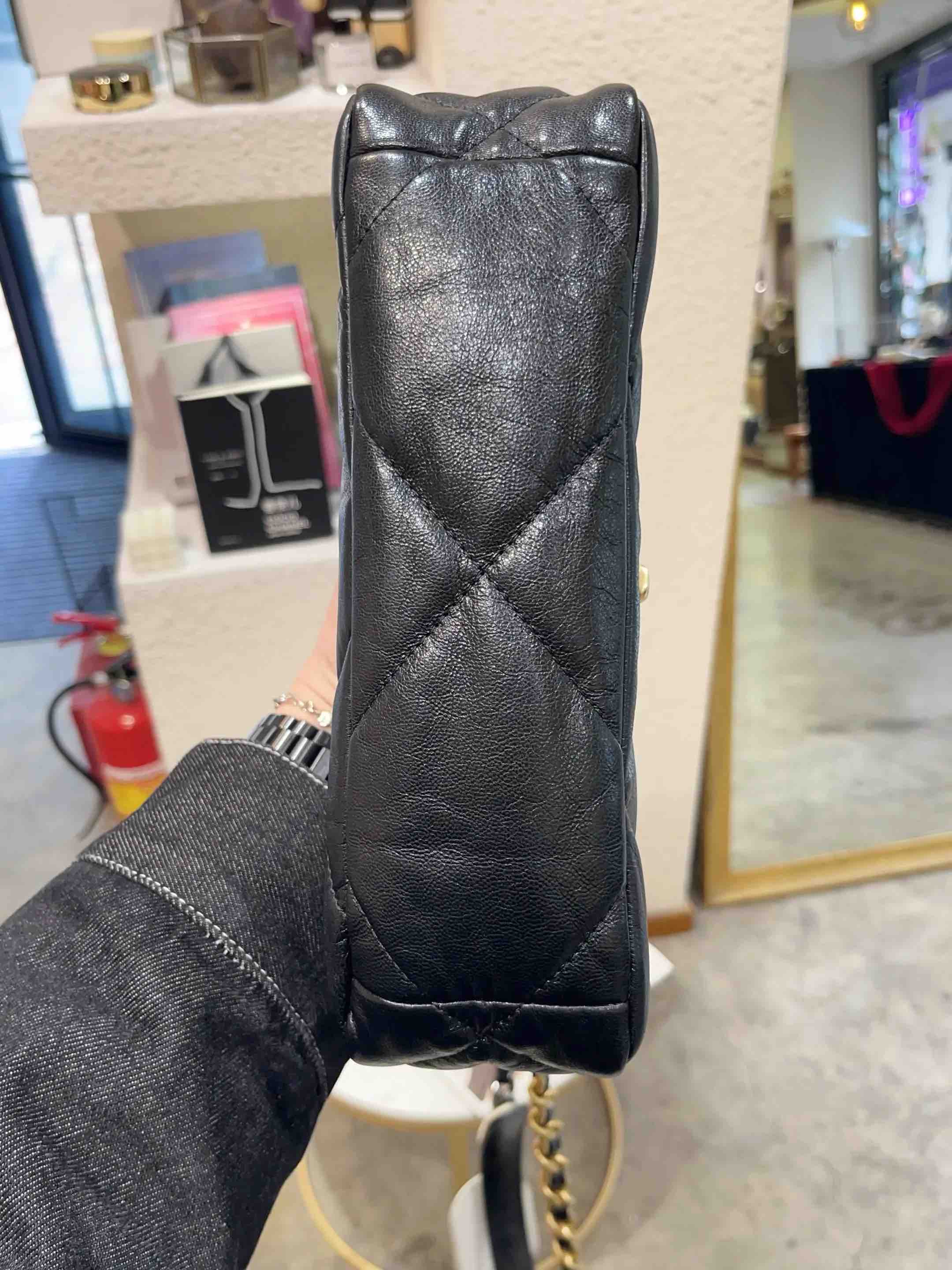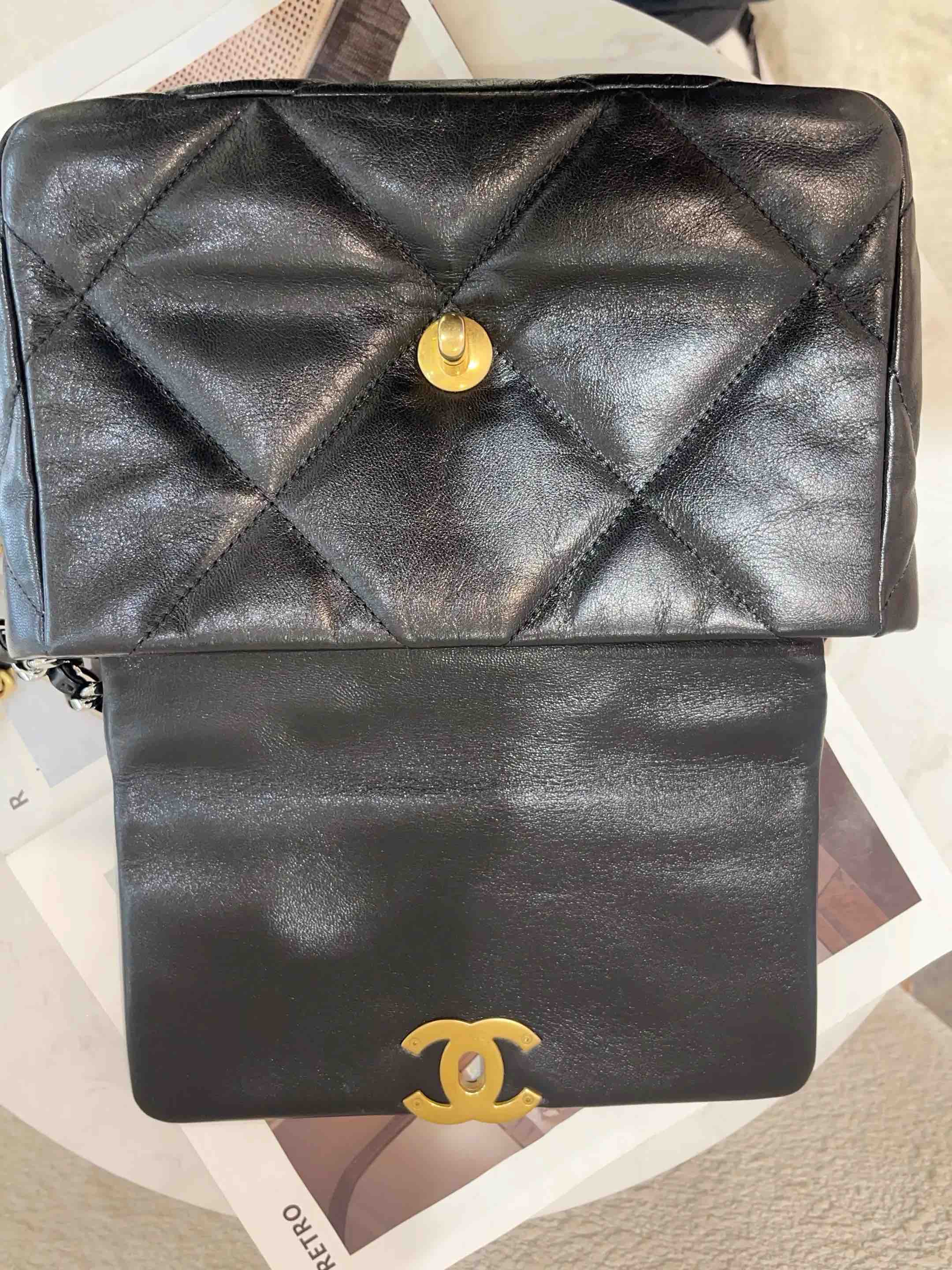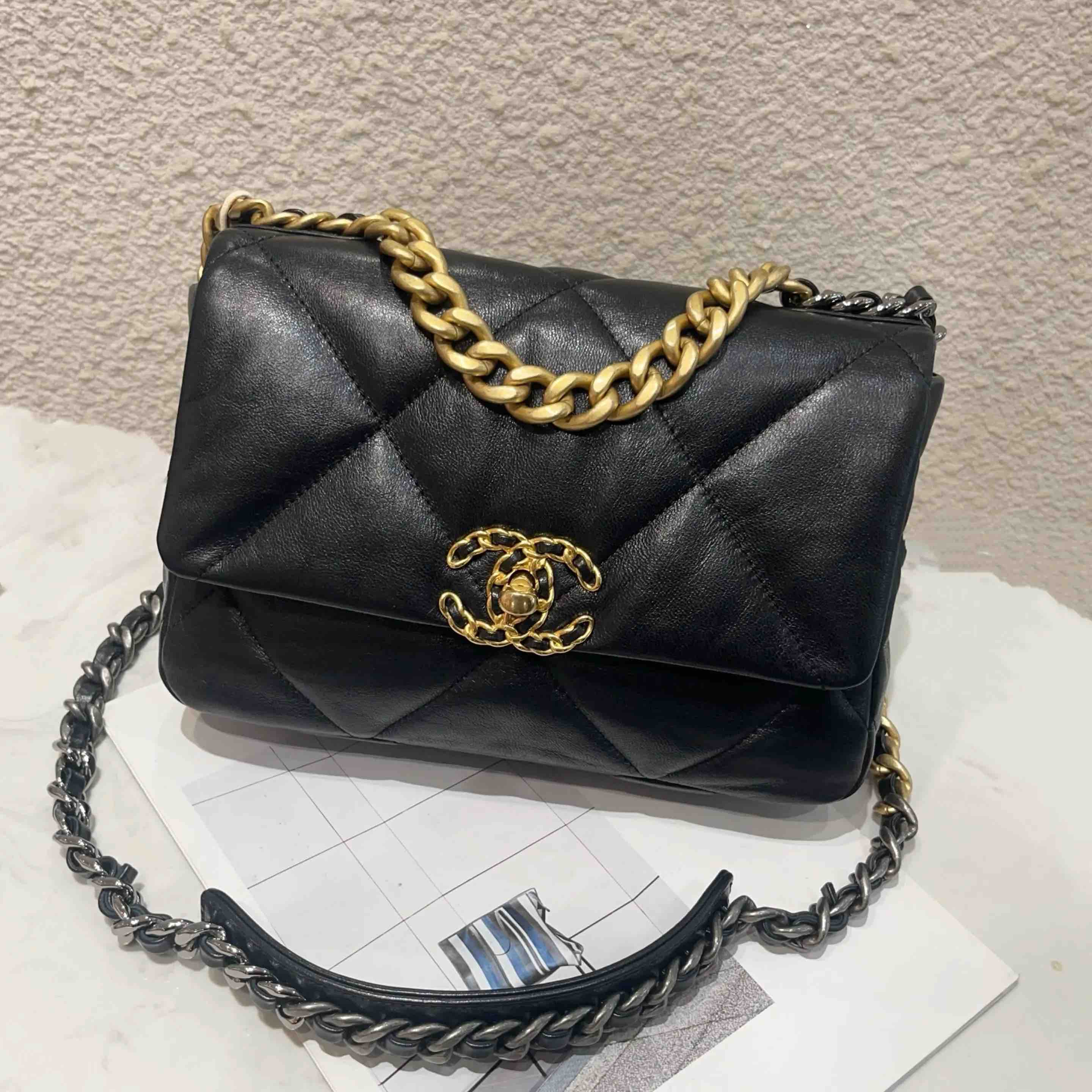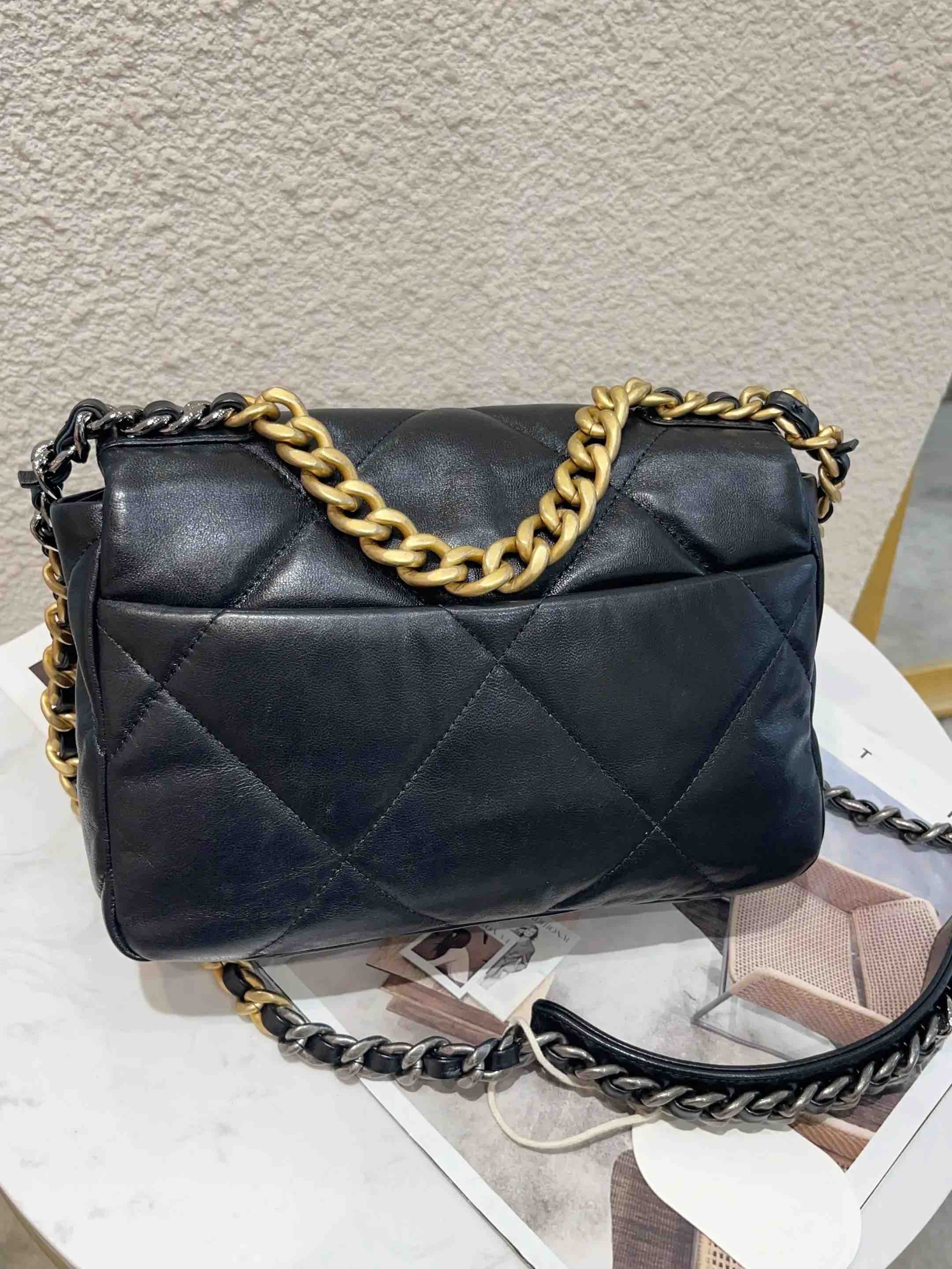【商品详情】正品二手 Chanel 19Bag 小号 黑金 山羊皮 斜挎包🖤 98新 26×16 镭射30开 大全套配件:卡 票 防尘袋 盒子。菱格纹经典 山羊皮耐造 永不过时