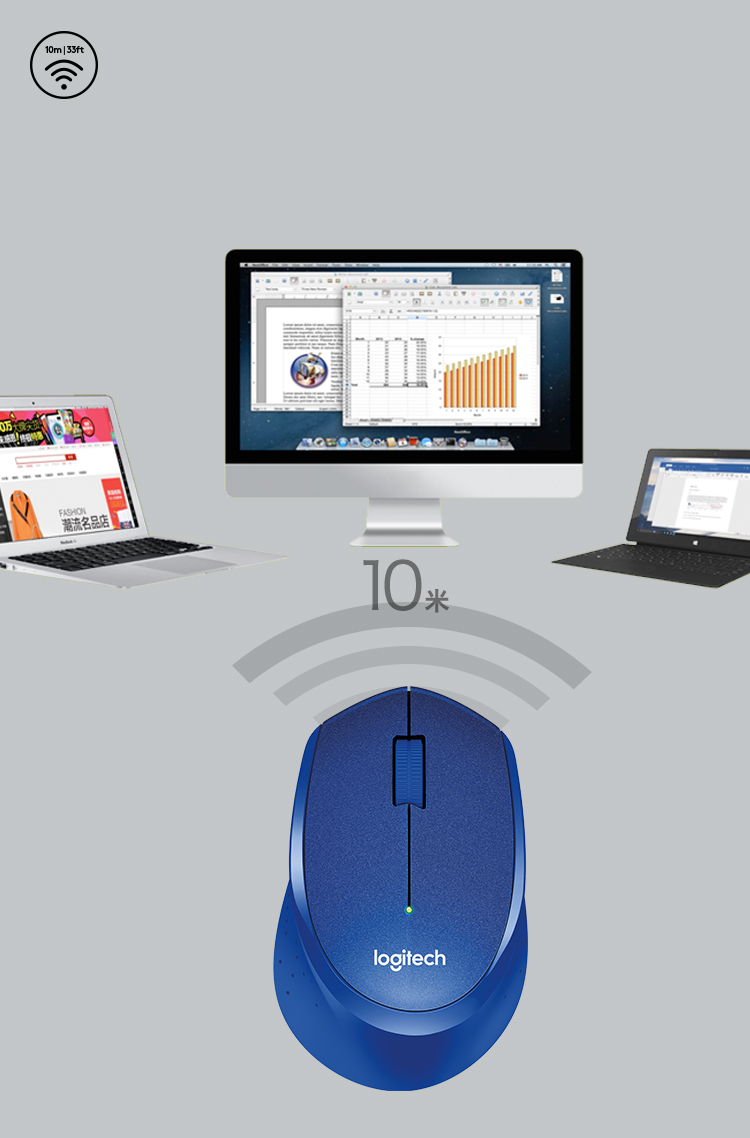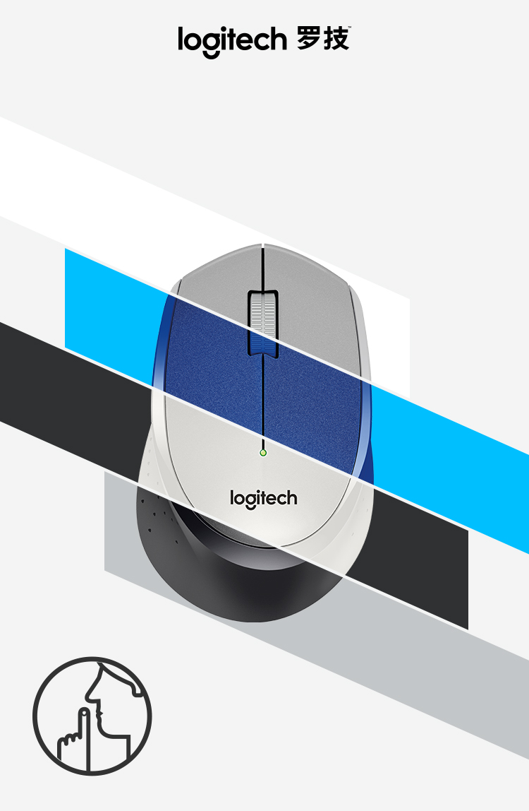 罗技(Logitech)M330 鼠标 无线鼠标 办公鼠标 静音鼠标 右手鼠标 蓝色 带无线2.4G接收器