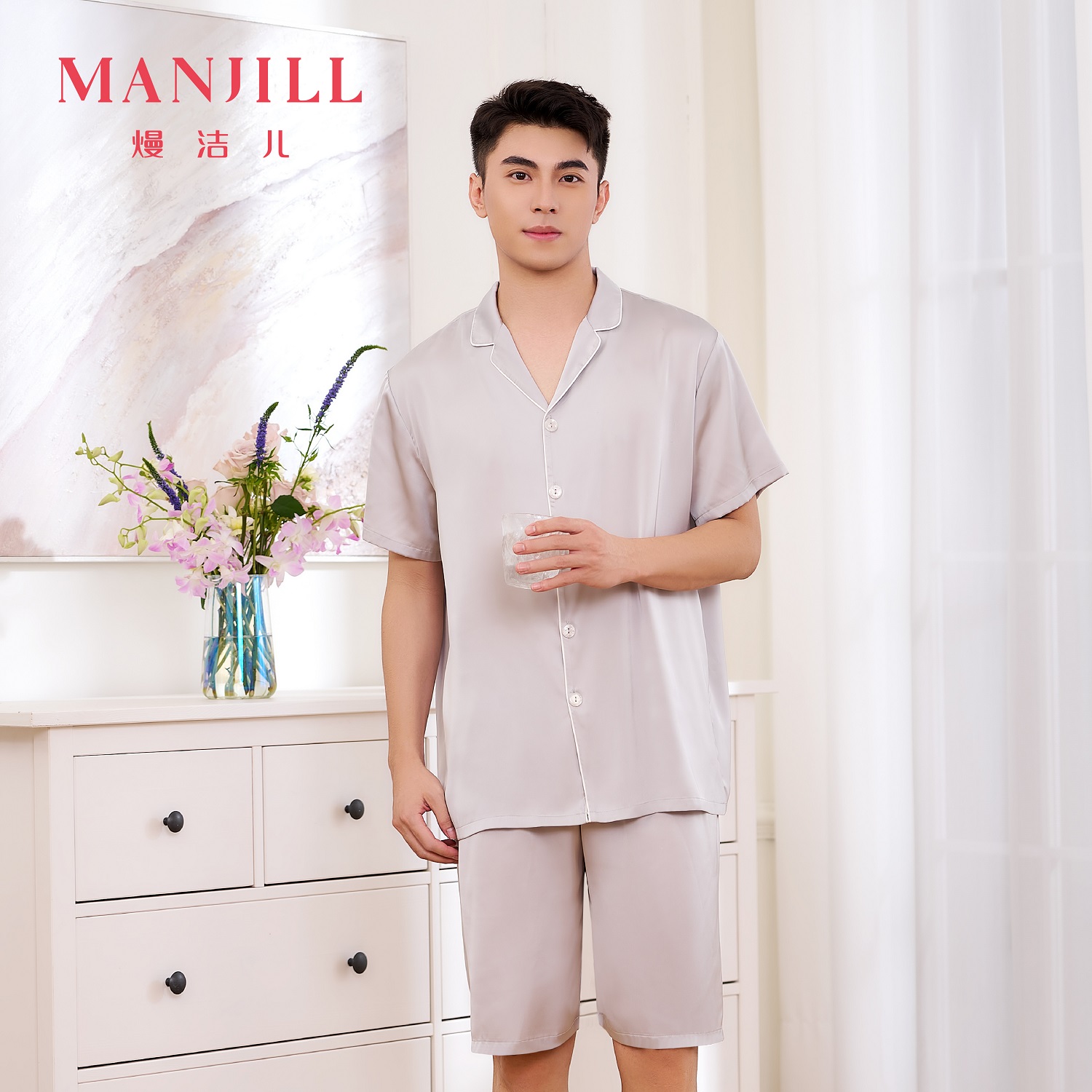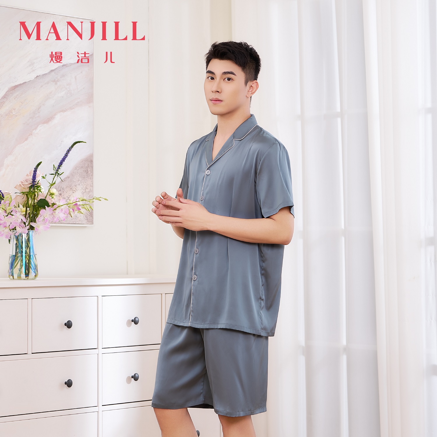 【商场同款】熳洁儿 男士家居服清凉冰雪丝开衫短袖短裤25203901