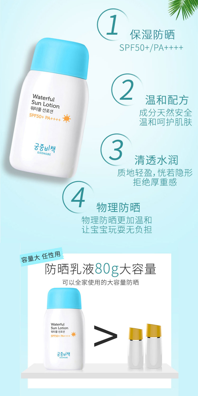 宫中秘策物理防晒乳液霜80g夏季温和户外隔离防紫外线易卸 SPF50+