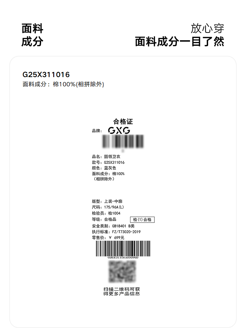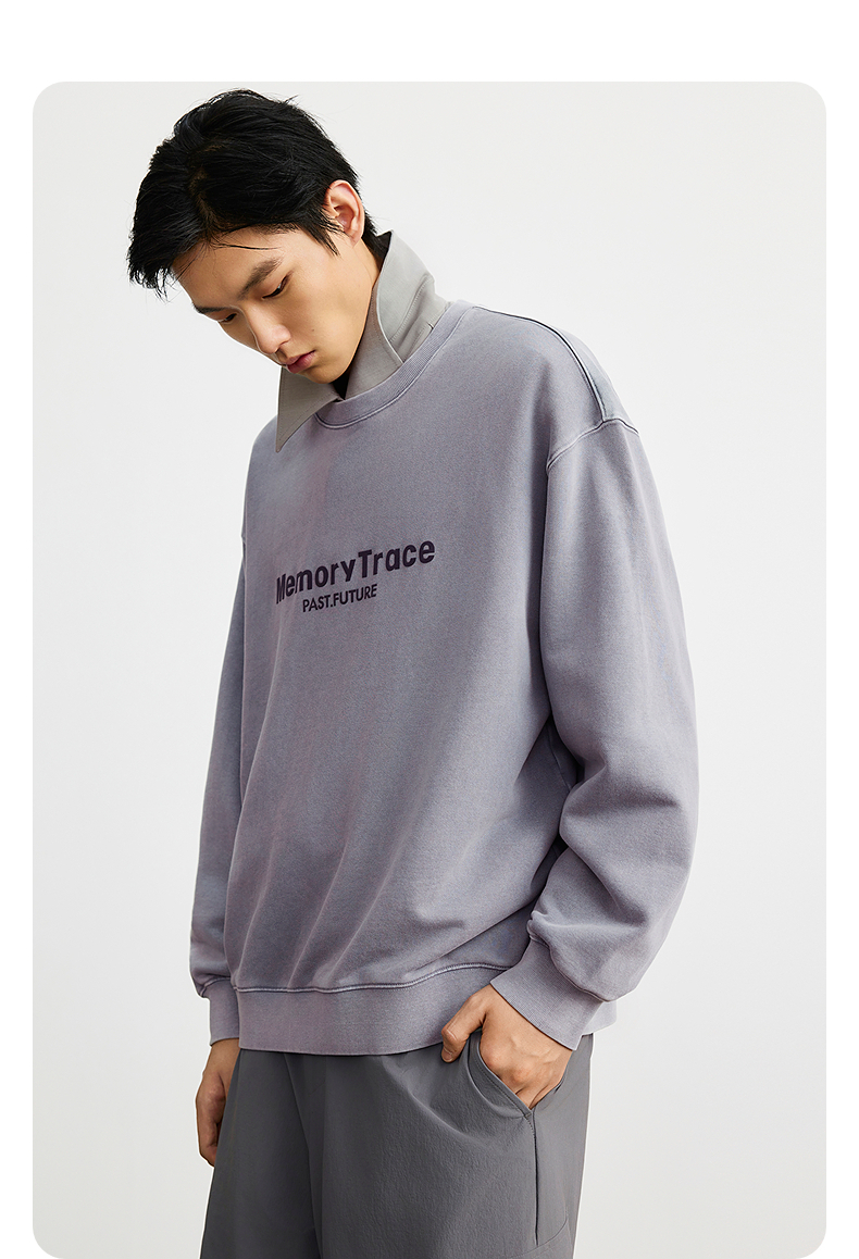 GXG男装 蓝灰色简约休闲卫衣圆领字母印花长袖上衣 春季热卖G25X311016