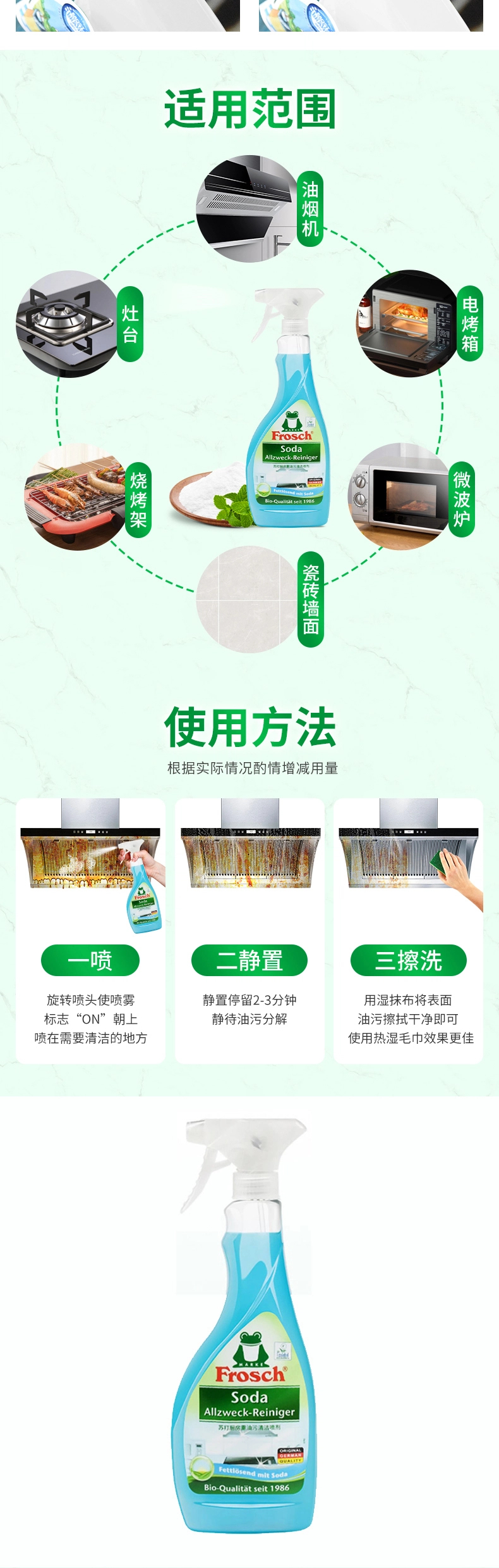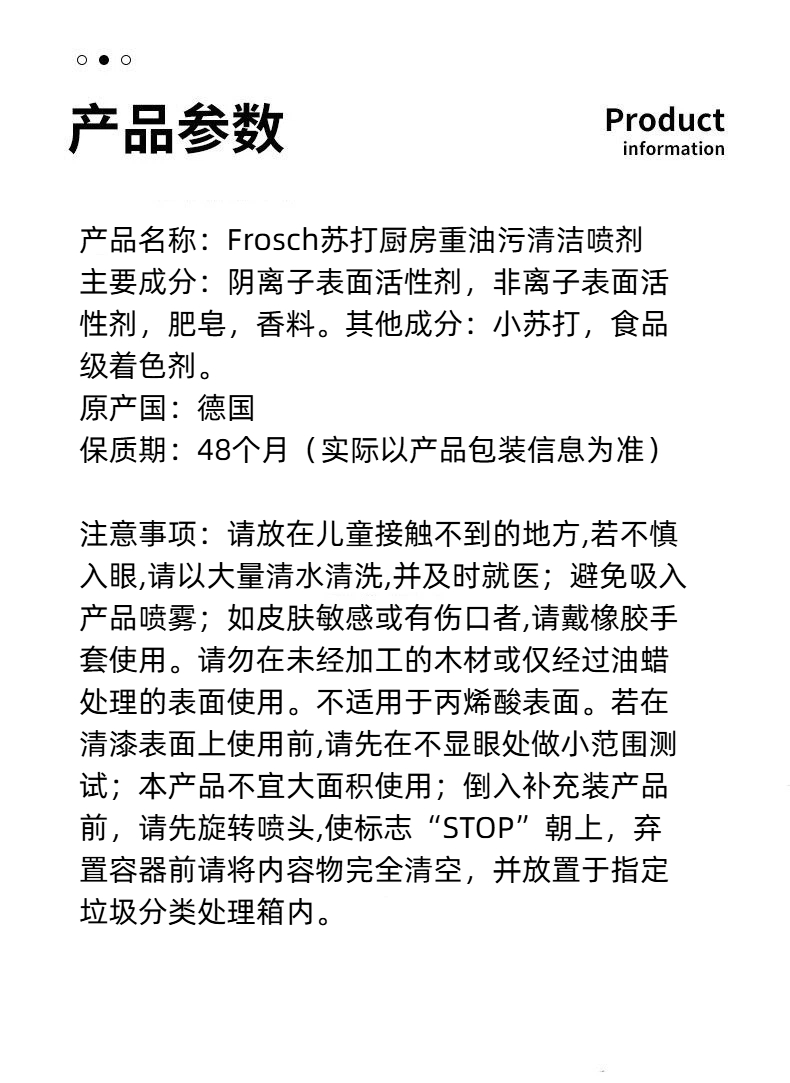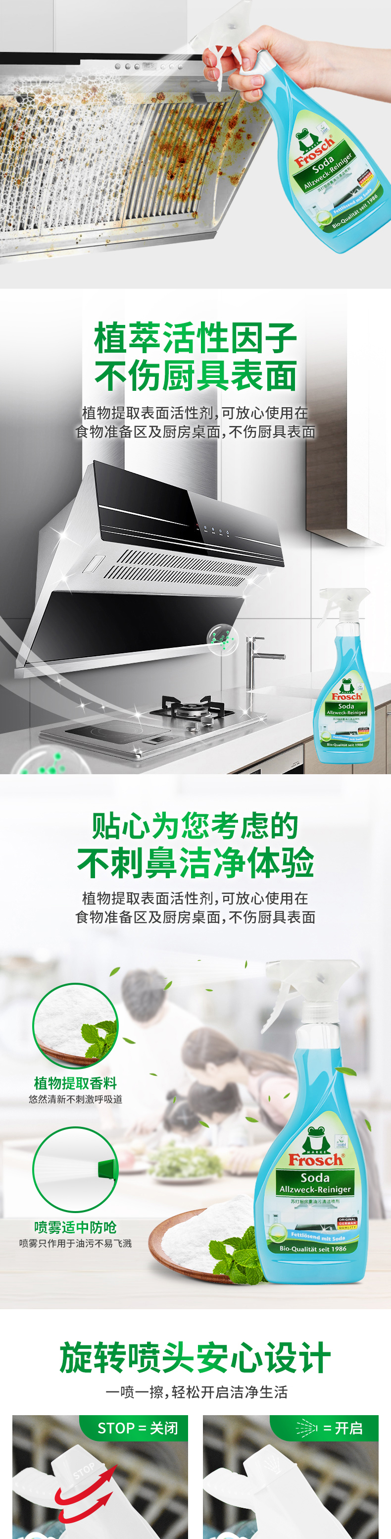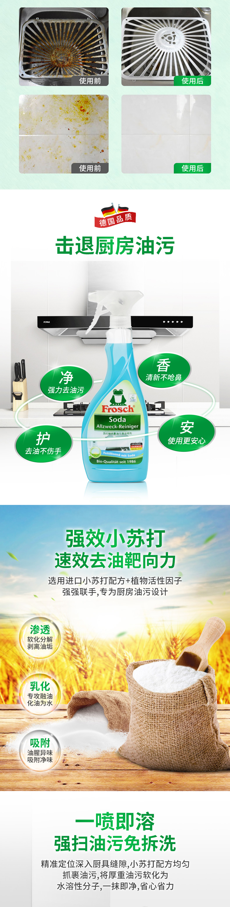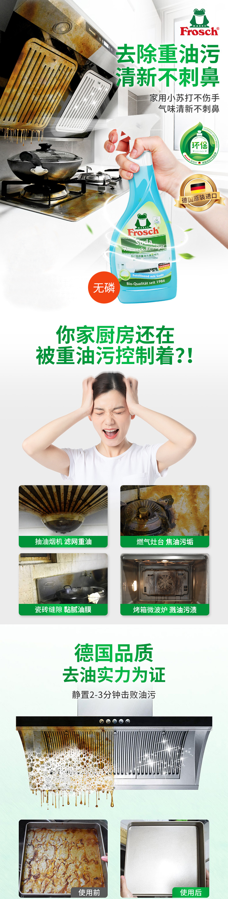 德国进口Frosch苏打厨房重油污清洁喷剂500ml