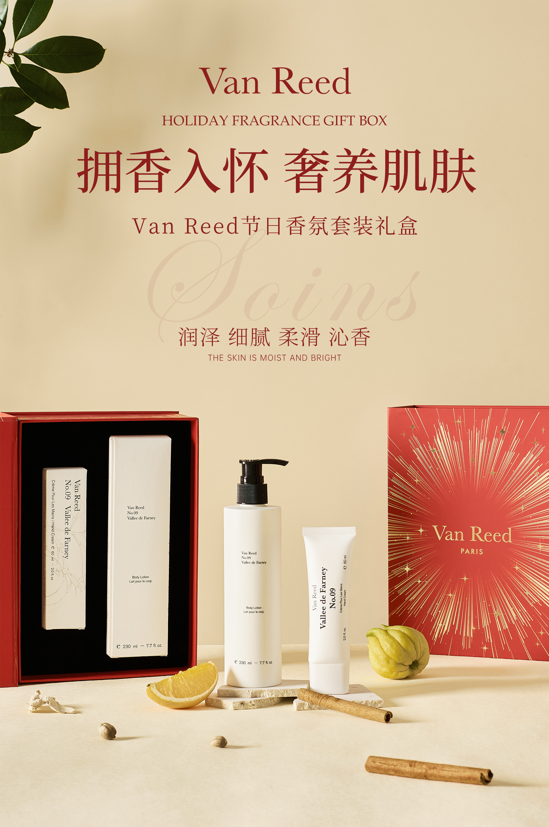 Van Reed节日香氛套装礼盒,不管是内盒还是礼品袋皆为品牌定制设计版,极具节日氛围感,不管是家庭自用还是赠礼亲友都能在温柔之香中感受真诚与愉悦,让爱意与香气同时入怀。