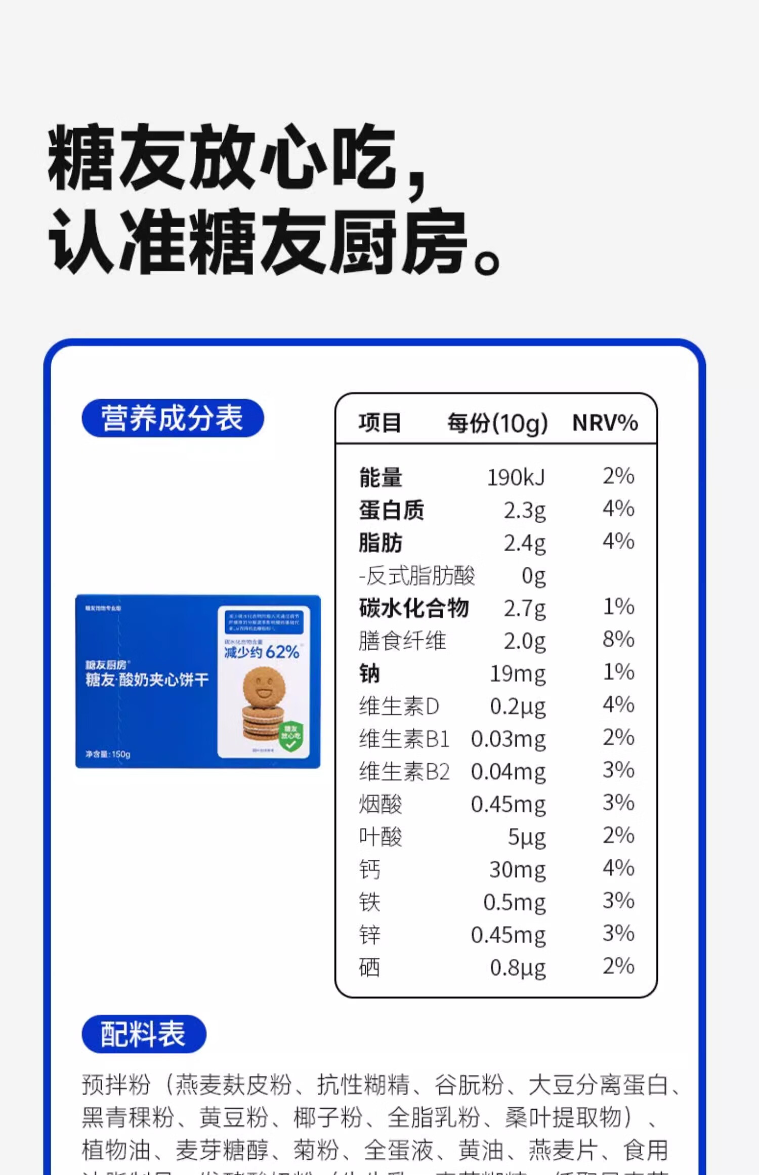 【分仓直发包邮】糖友厨房酸奶夹心饼干10g*15枚